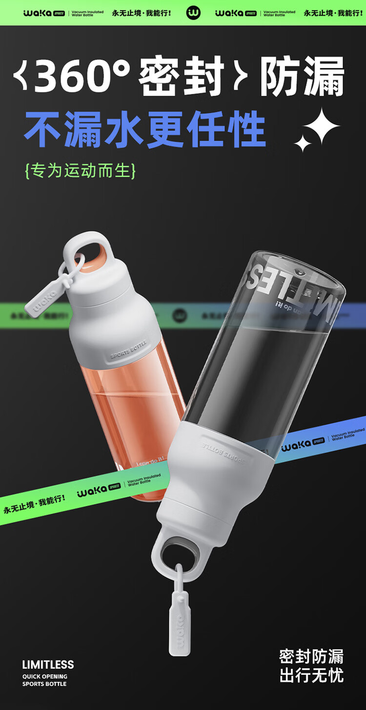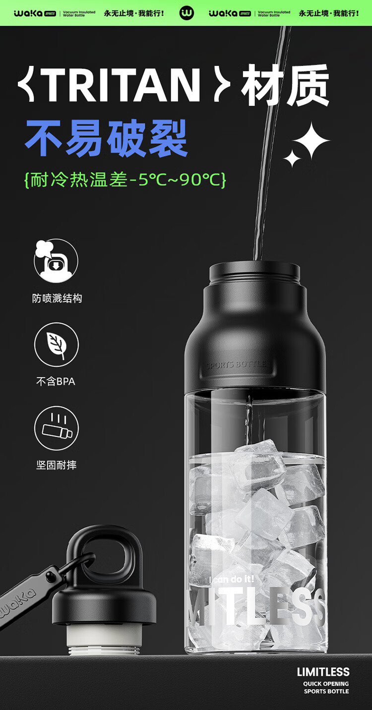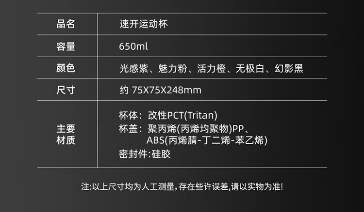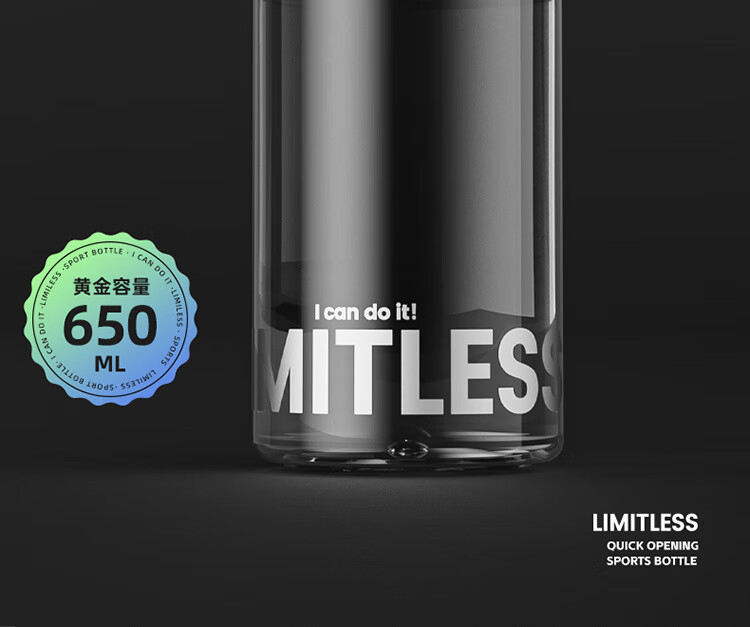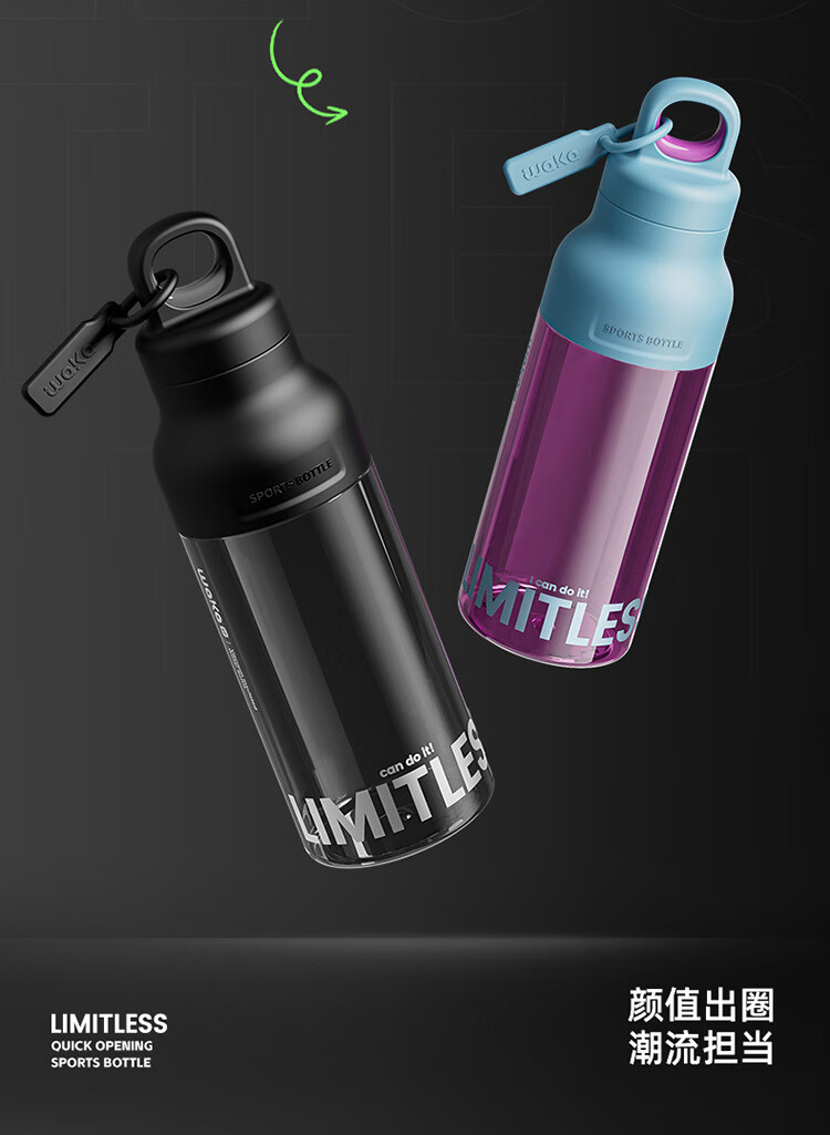 俯界(FUJIE)运动水杯无螺纹夏季男女大容量耐高温塑料杯便携防摔 【幻影灰】速开运动杯 650ml