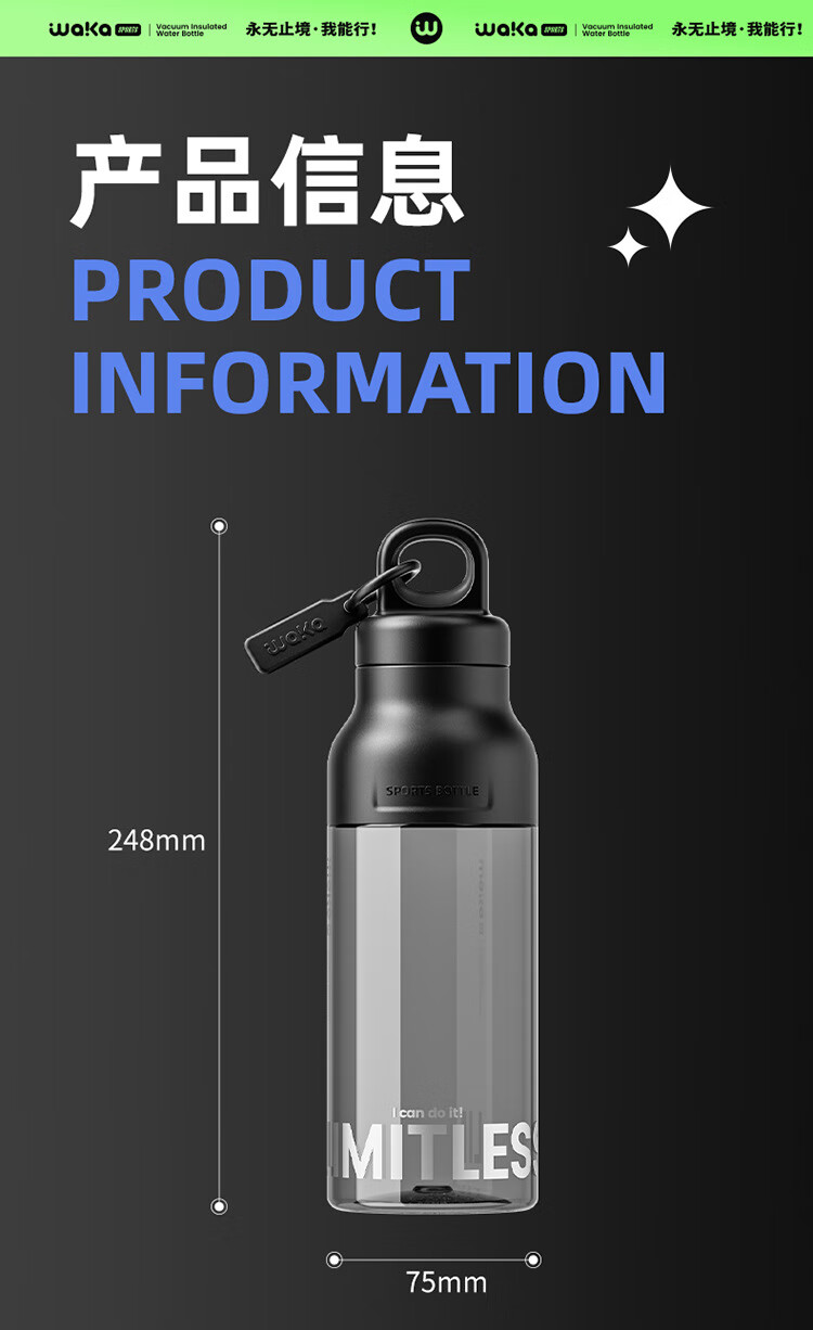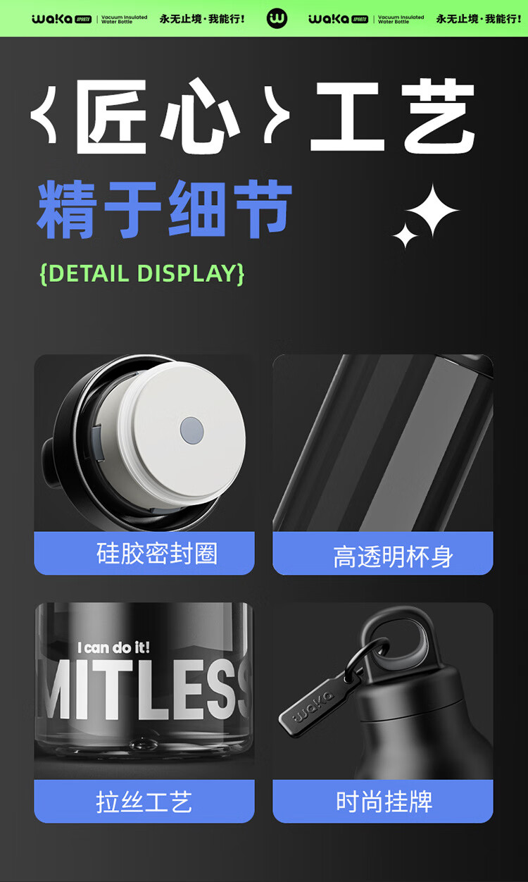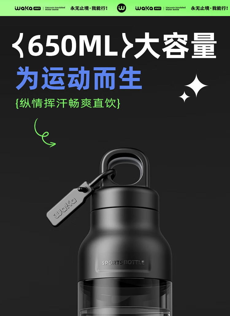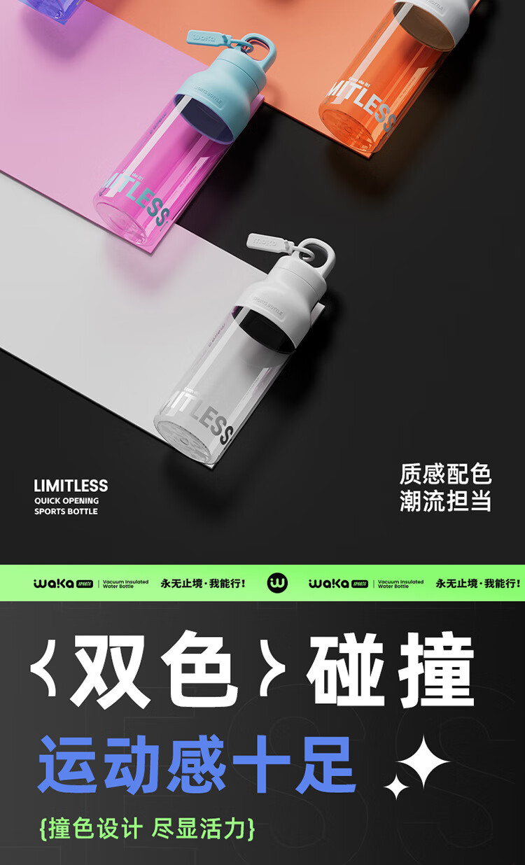 俯界(FUJIE)运动水杯无螺纹夏季男女大容量耐高温塑料杯便携防摔 【幻影灰】速开运动杯 650ml