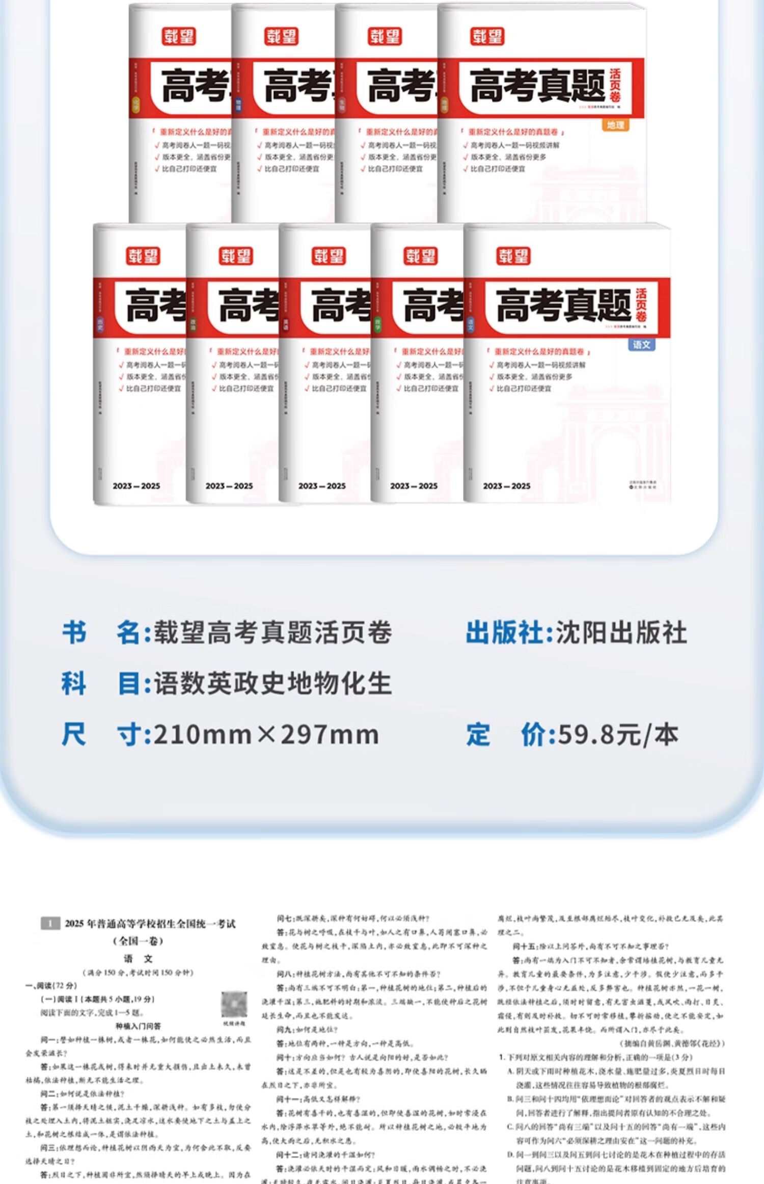 载望2026新高考真题活页卷语文英语数学物理化学生物政治历史地理全国卷含2023-2025年3三年高考历年真题总复习必刷试卷汇编视频详解5年高考真题卷金考卷 【理科6本】语数英+物化生 全国通用