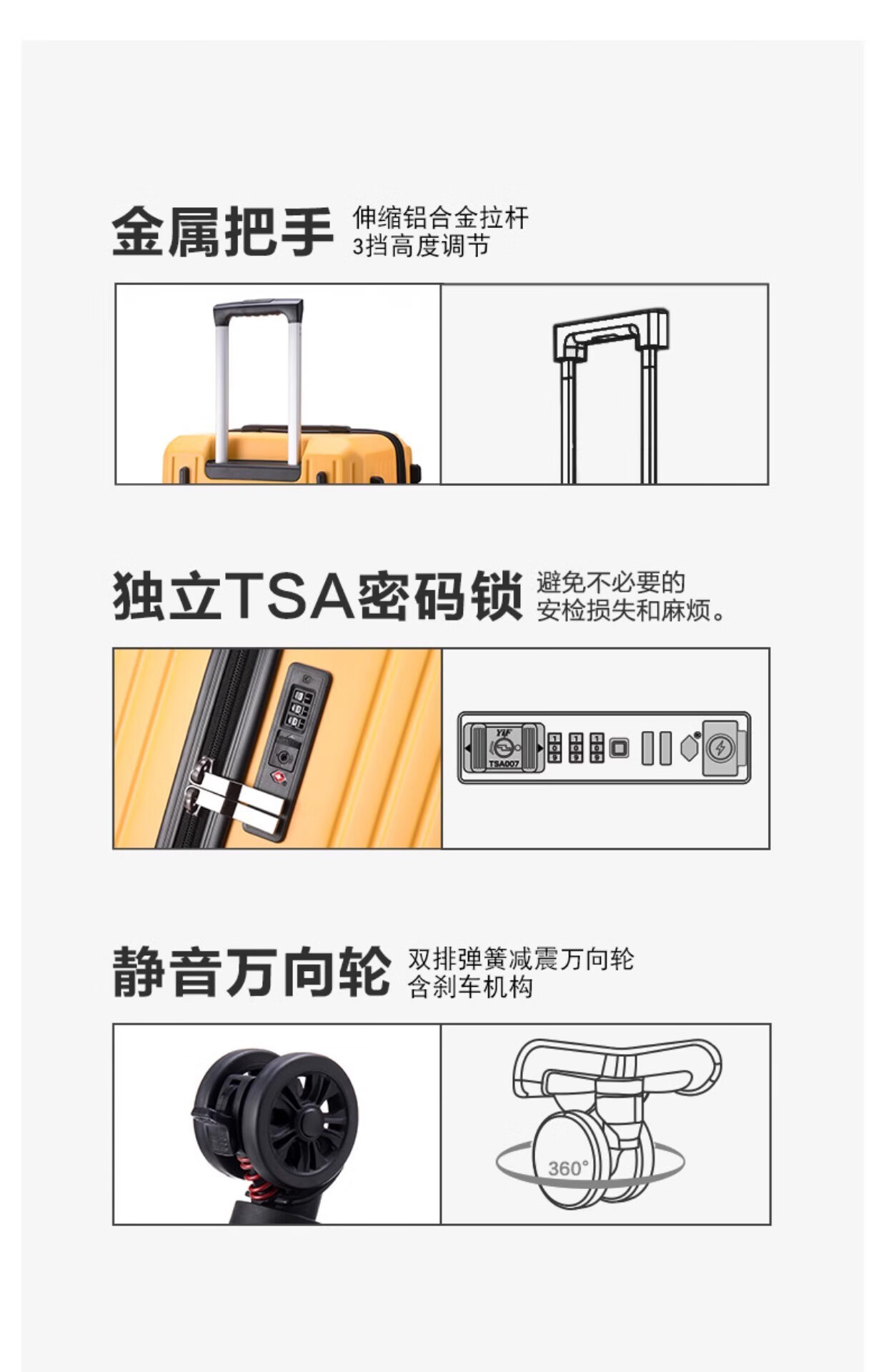 洛斯伯里(Roserooen)大容量加厚行李箱万向轮拉杆旅行箱高颜值出国36寸密码箱男女款 奶白色-弹簧减震刹车轮 28英寸