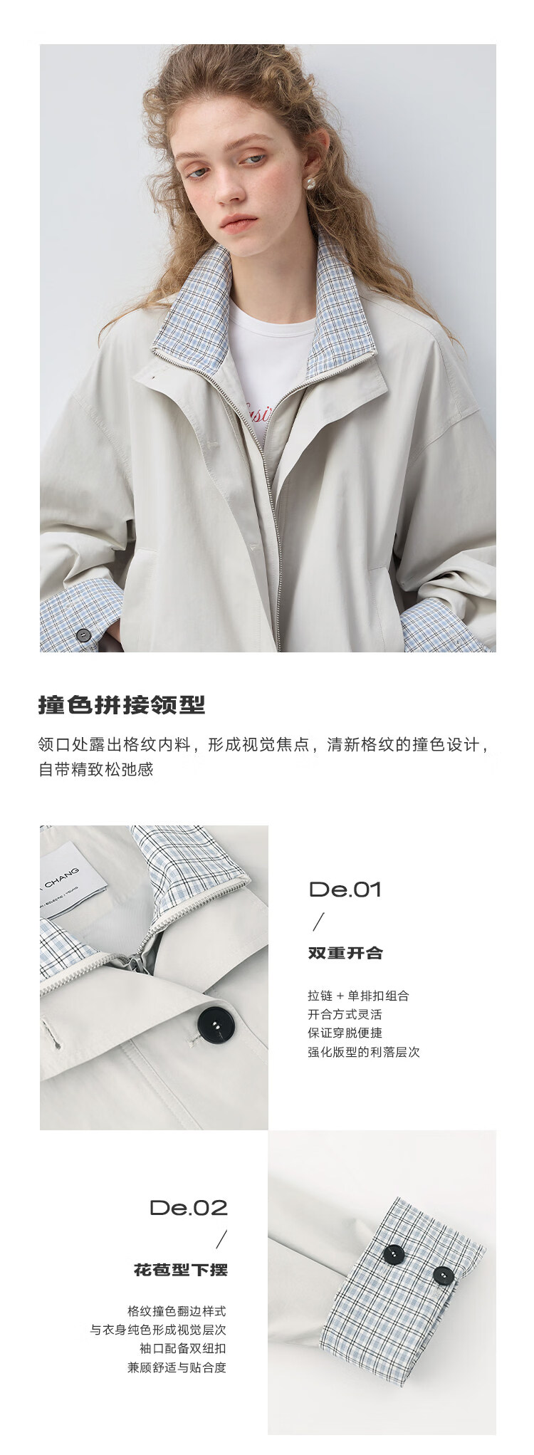 VEGA CHANG【小敏阿姨推荐】花苞型夹克外套女2026春高智风复古外套 晨雾灰 S