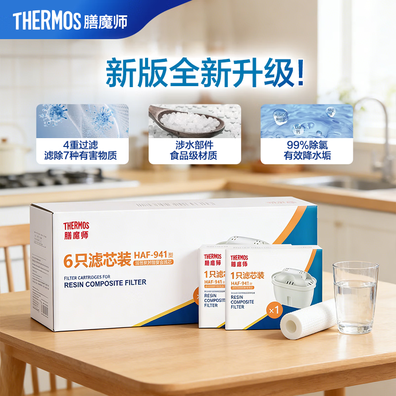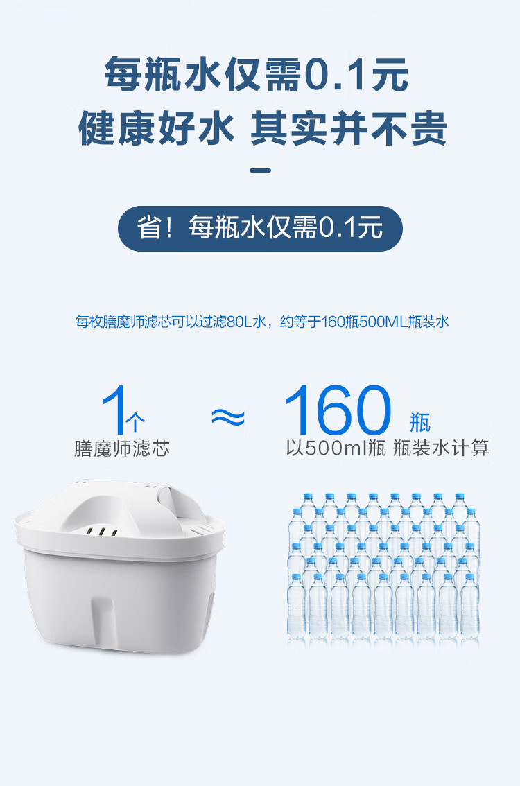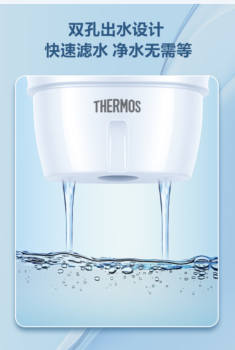 膳魔师净水壶 净水器 滤水壶 过滤水壶 家用过滤器 3.8L大容量 智能换芯提醒 1壶1芯 粉色