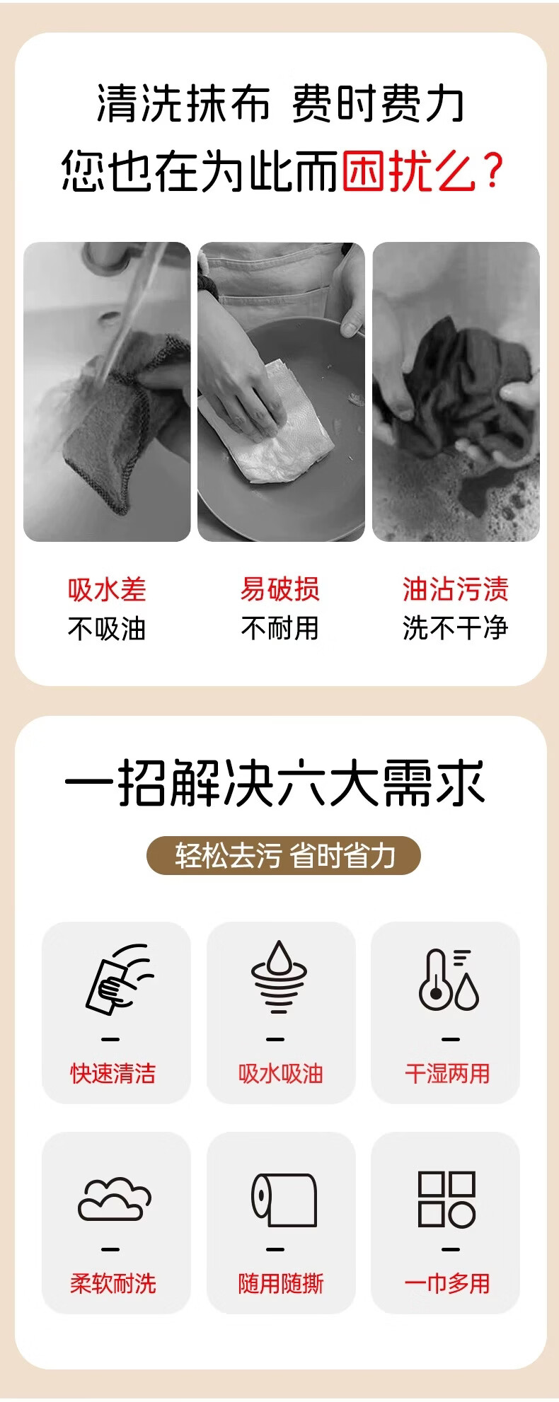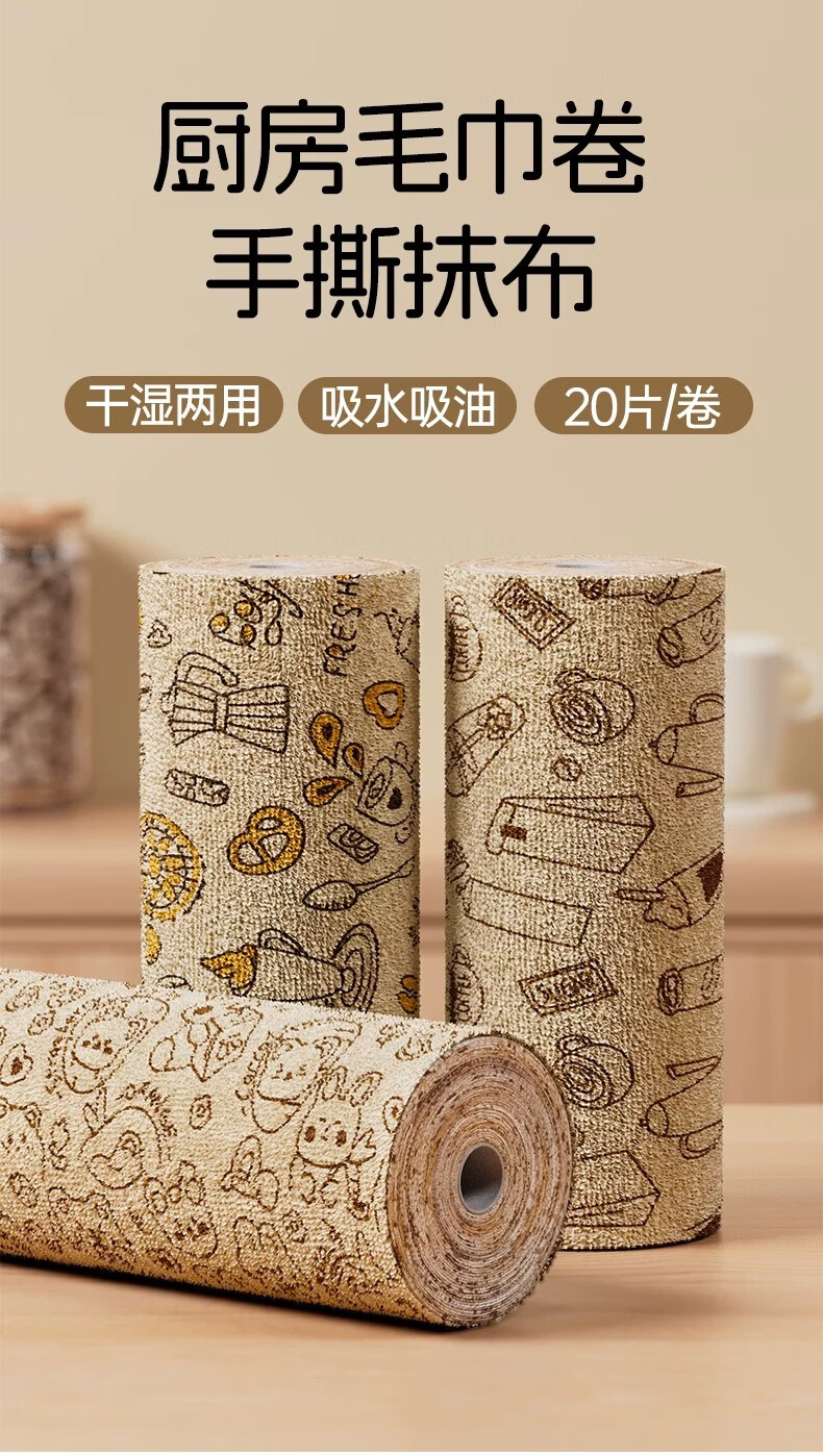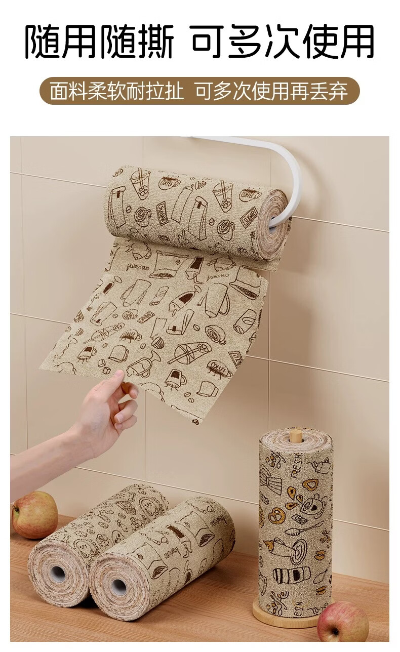 沐凡(mufan)手撕印花懒人抹布25*25家居干湿两用纤维清洁超吸水不掉毛家用 懒人抹布1卷(颜色随机)