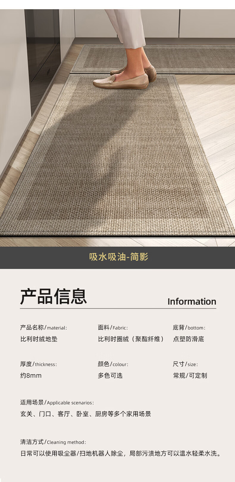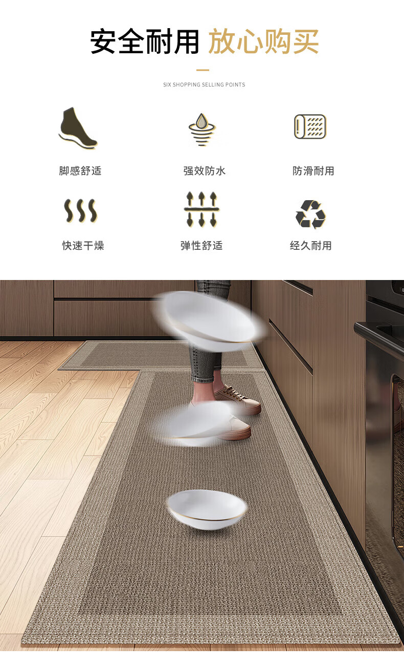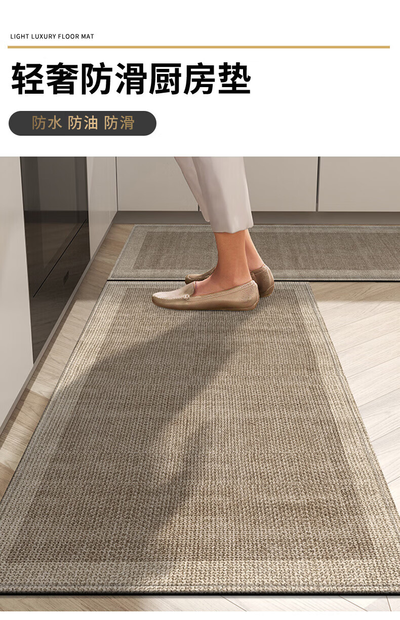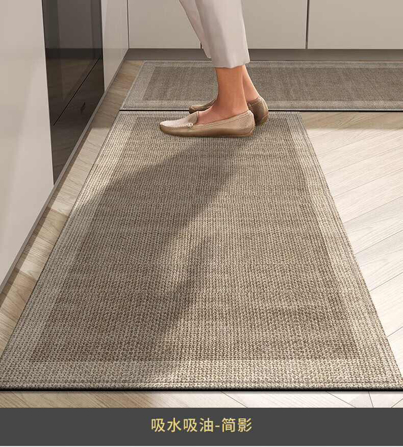 纤苏(qiansu)厨房地垫防滑防油防水可擦免洗家用耐脏进门口脚垫2026长条地毯 深寂黑边-厨房款 50x120cm