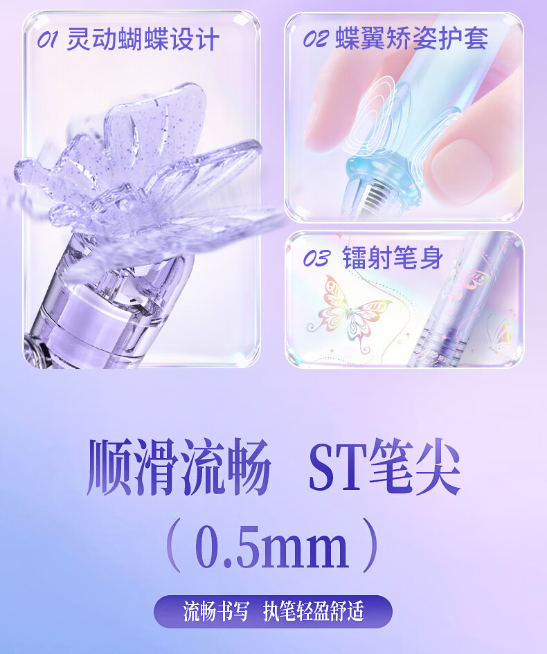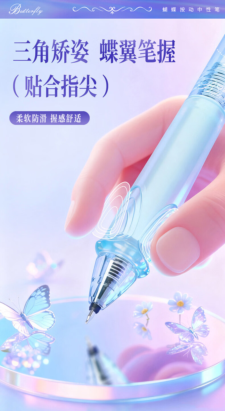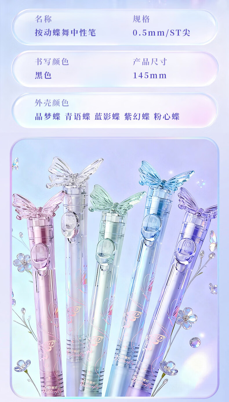 爱好(AIHAO)【开学必备】蝴蝶按动中性笔0.5mm考试刷题笔学生高颜值速干水笔5支 GP4240