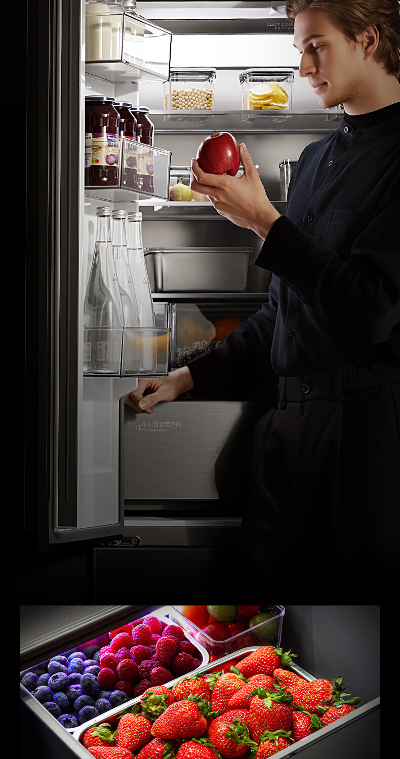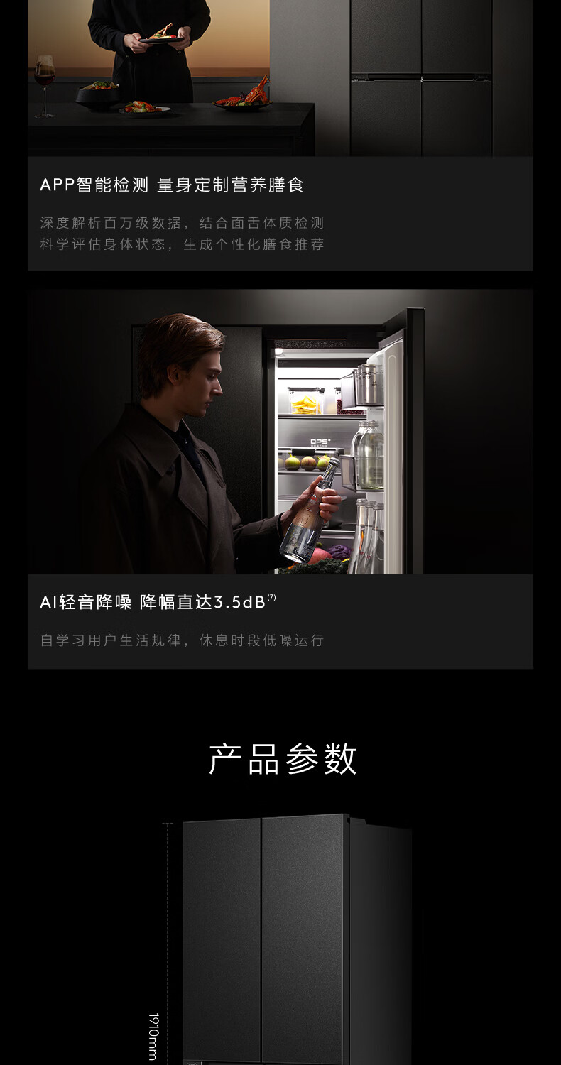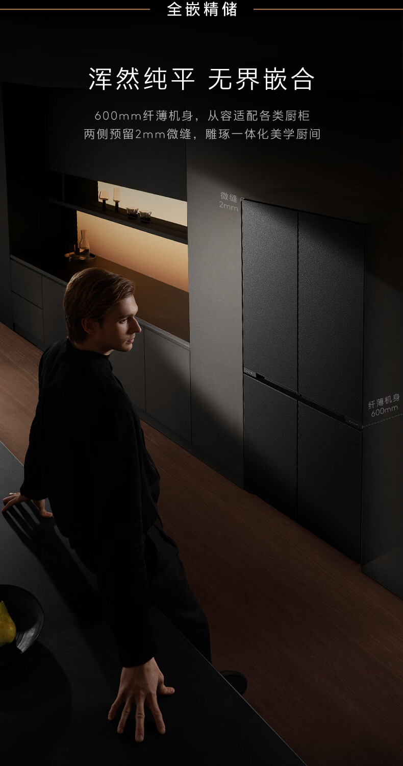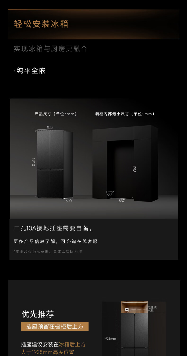 COLMO黑珍珠521L十字门冰箱自动制冰纯平全嵌一级能效双系统风冷无霜以旧换新星石黑CRBUS521-C3