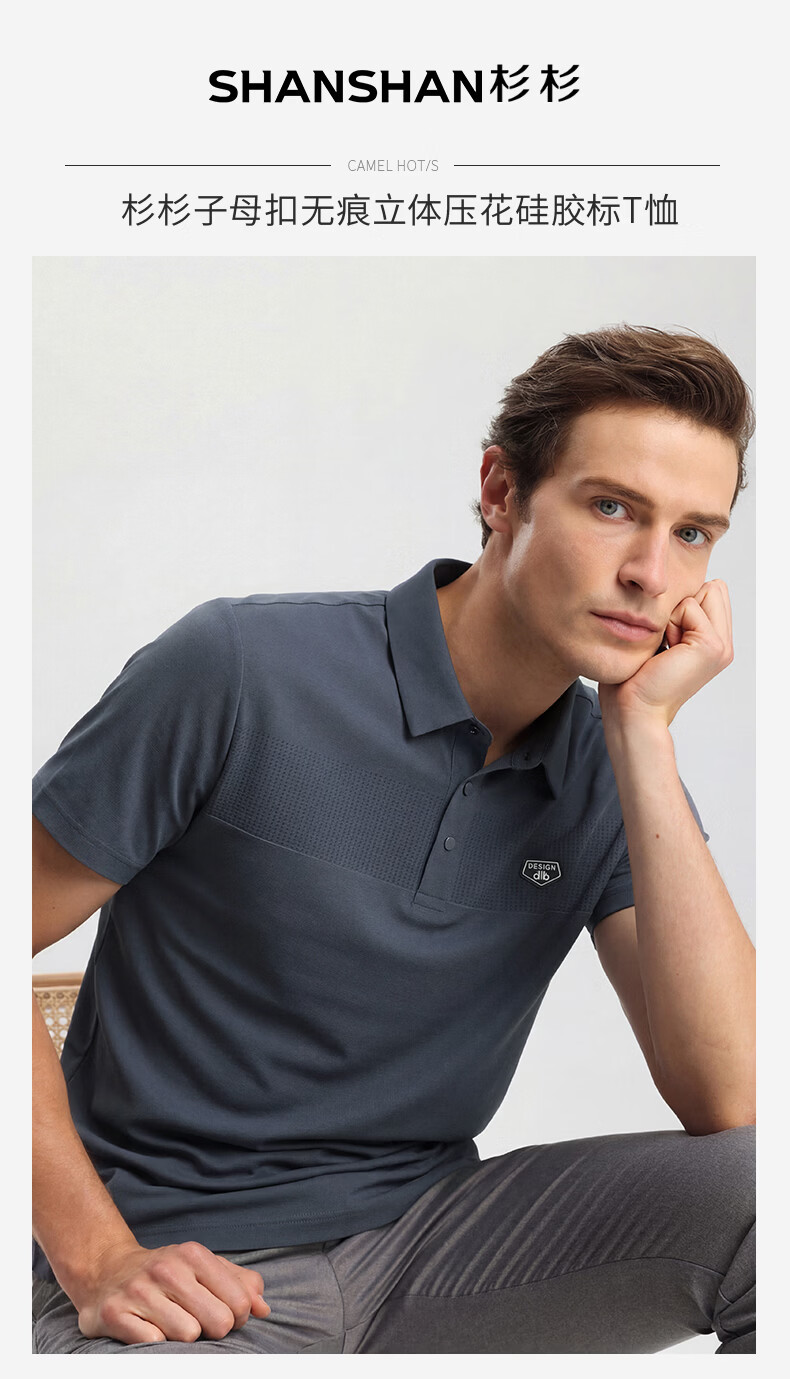SHANSHAN杉杉【无痕压胶透气】短袖t恤男纯色百搭POLO衫锦氨夏季 绿色 L /175