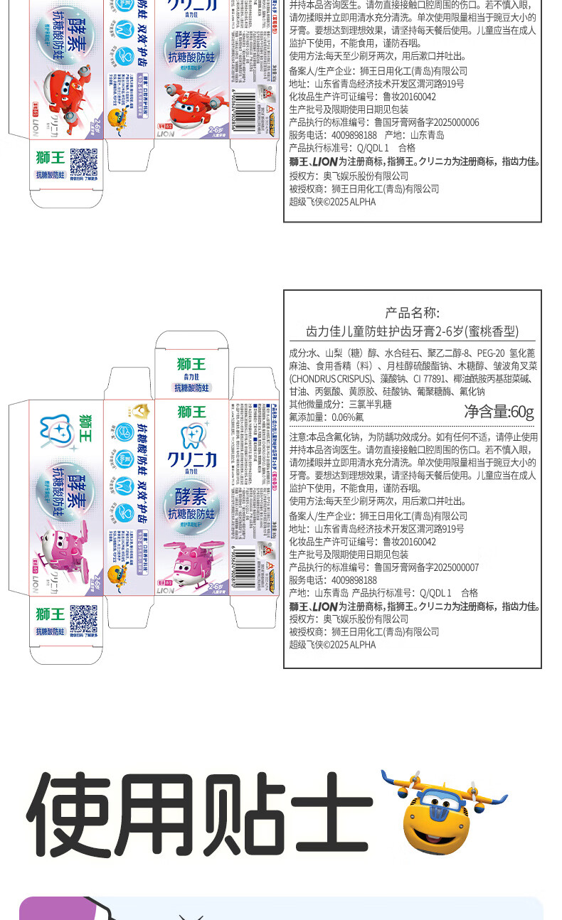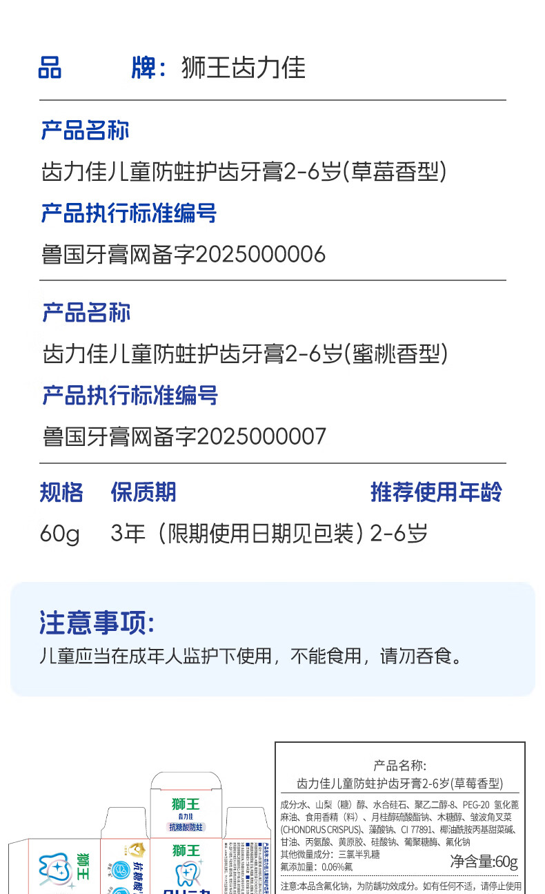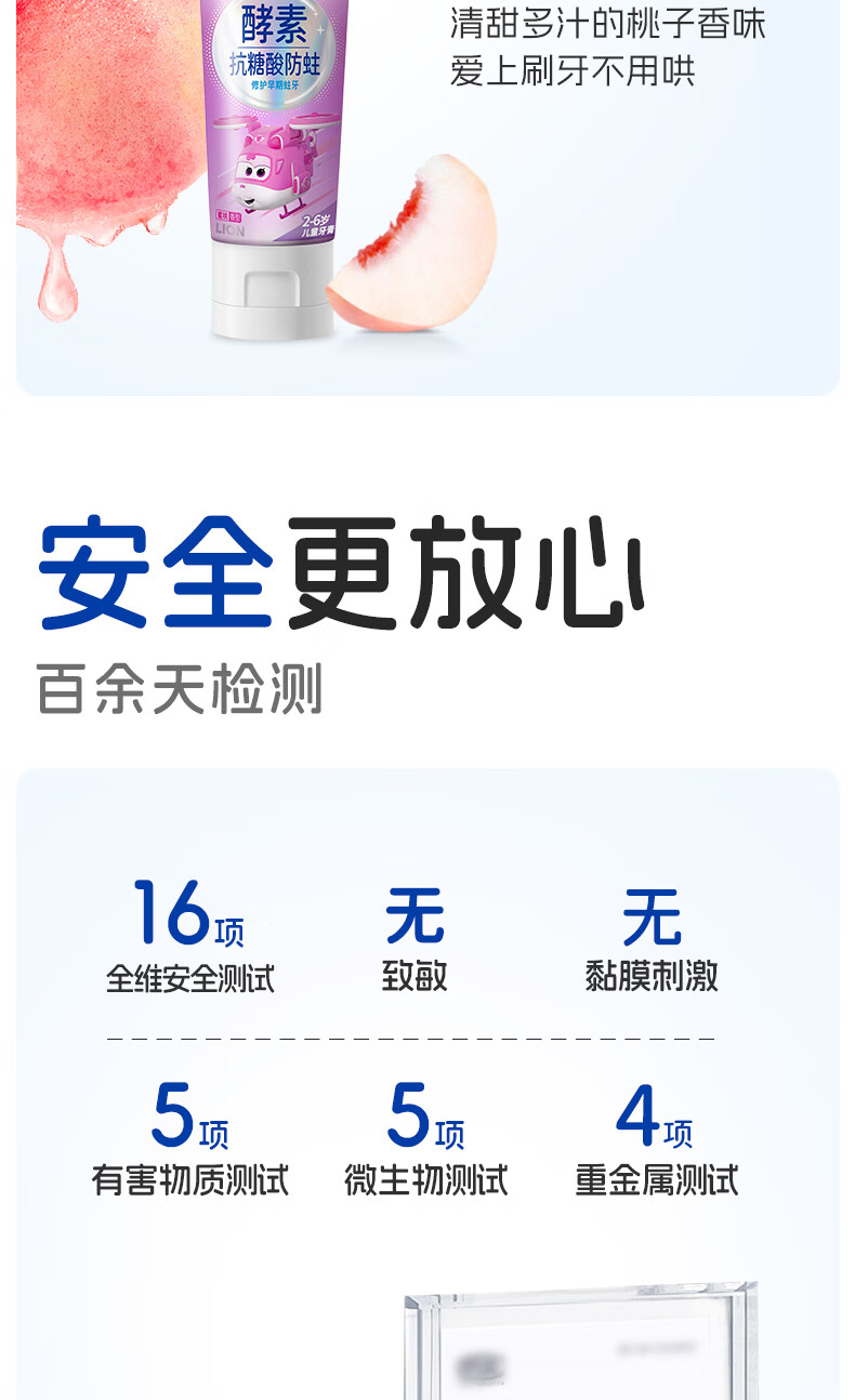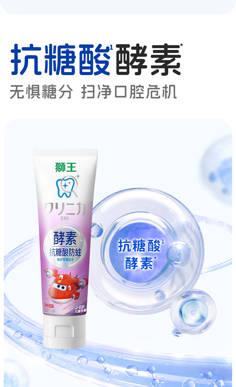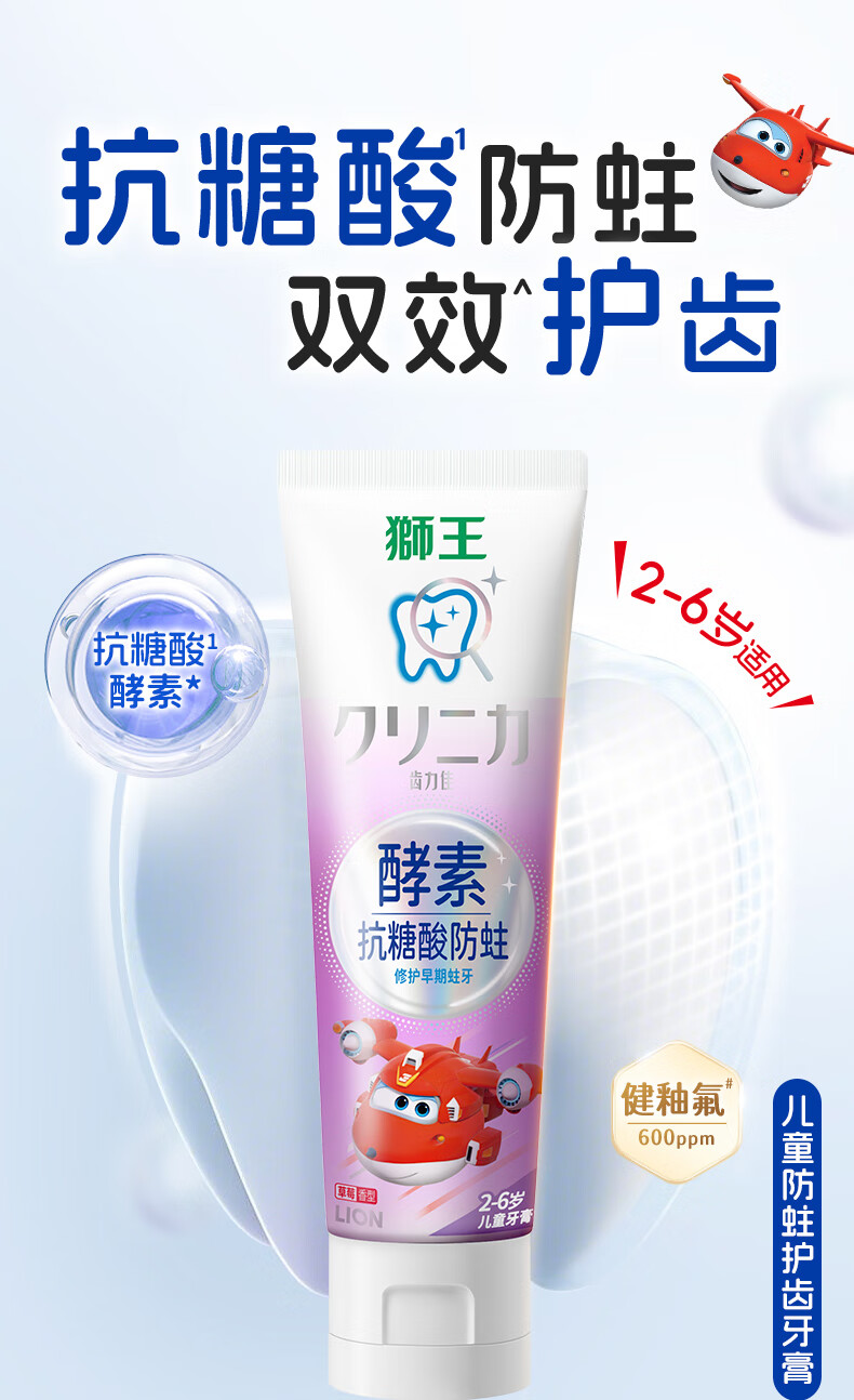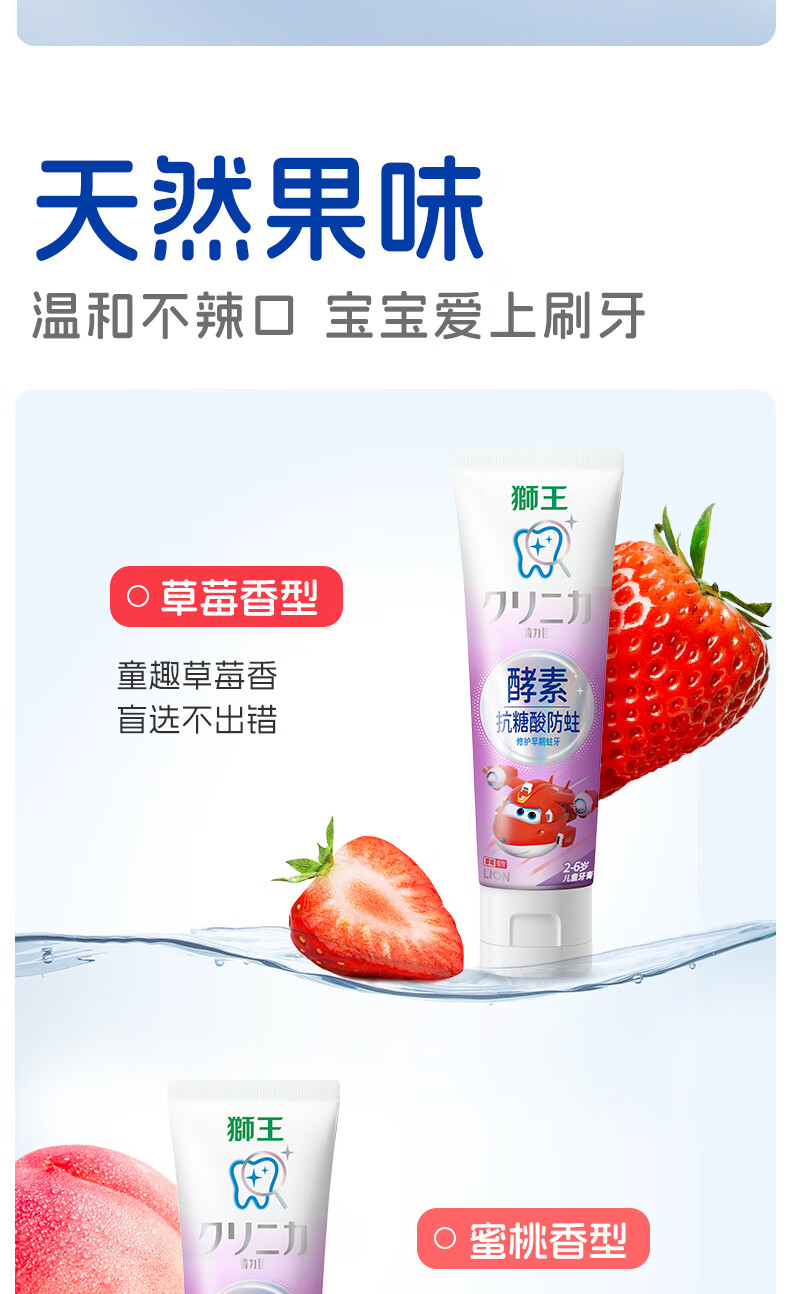 狮王(Lion)齿力佳儿童酵素抗糖防酸蛀牙膏2-6岁蜜桃味60g
