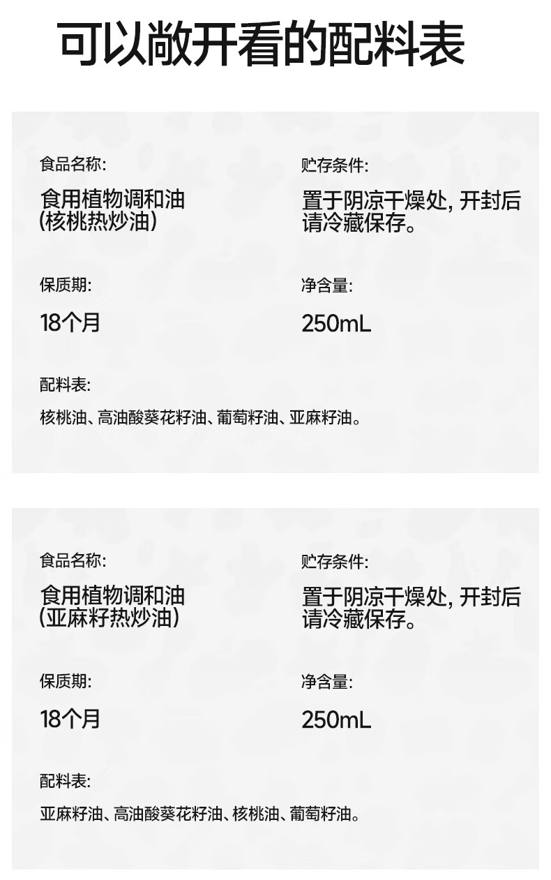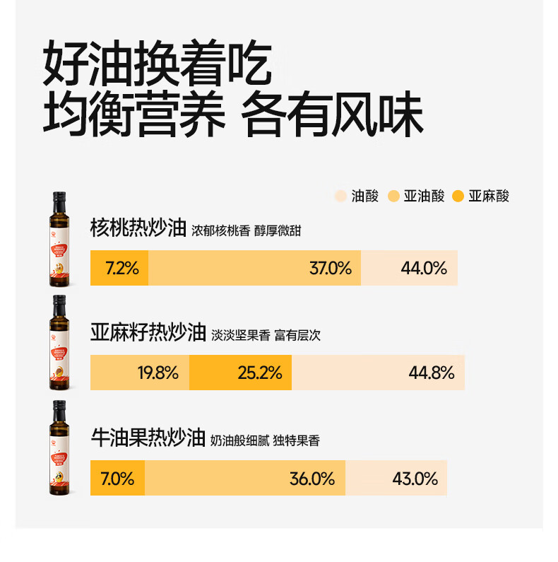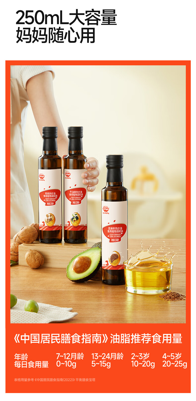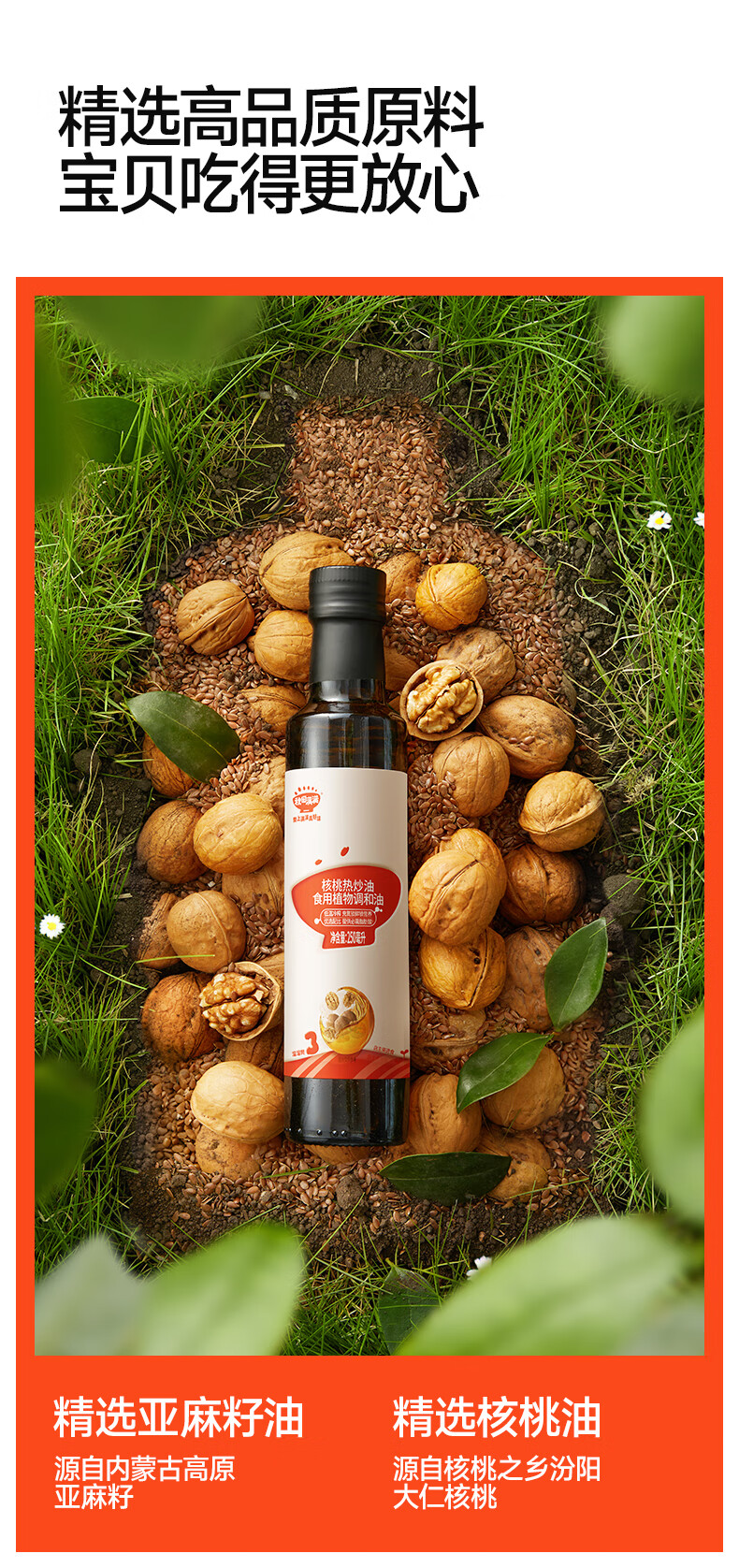 秋田满满核桃油热炒油辅食油营养亚麻籽牛油果油—享36个月婴儿宝宝食谱 亚麻籽热炒油【250ml】