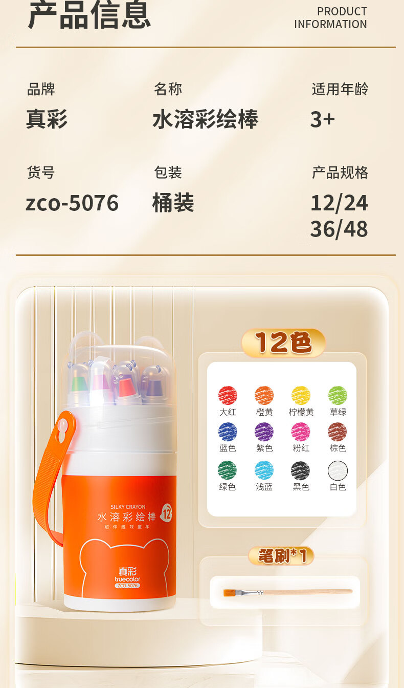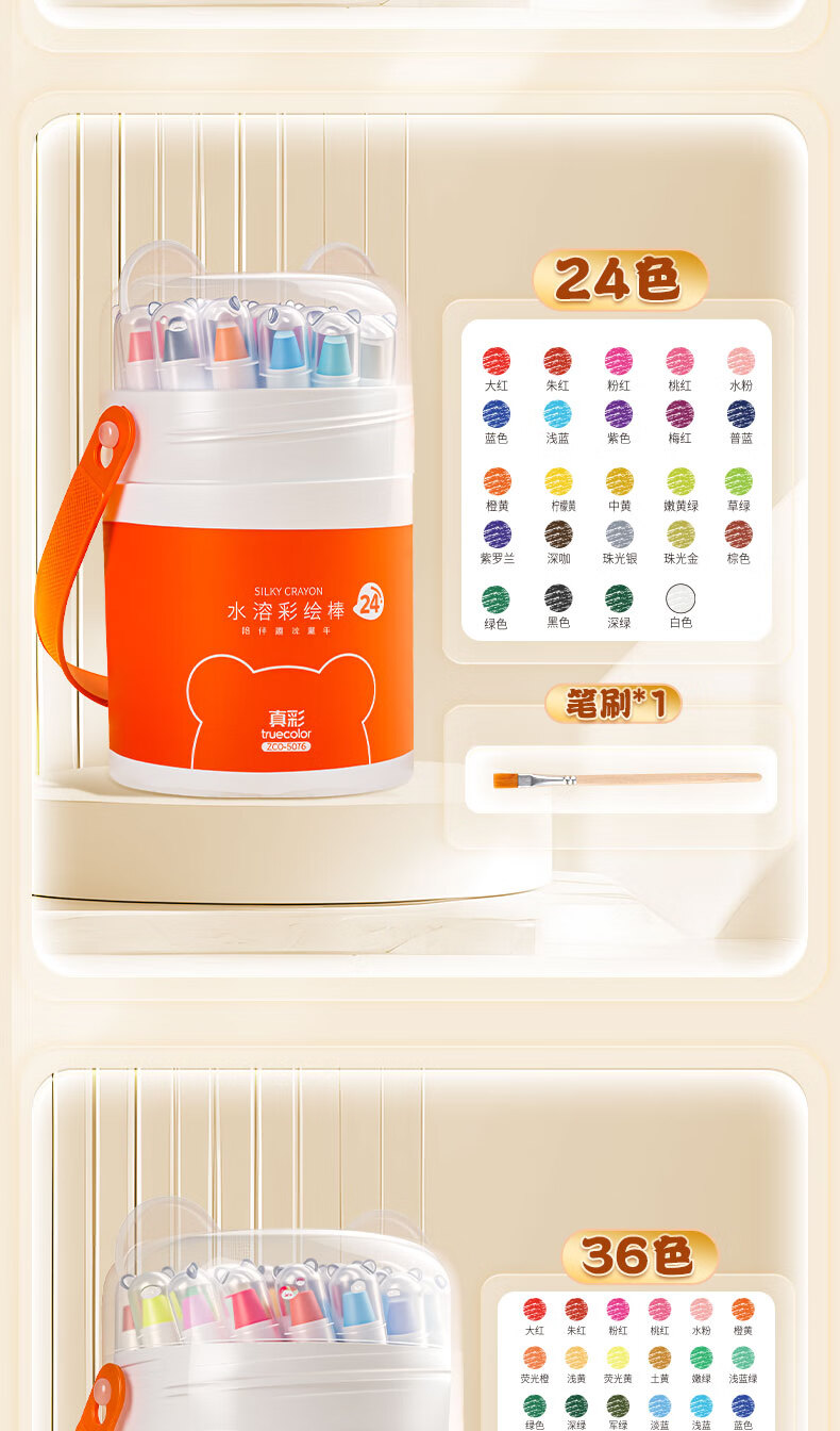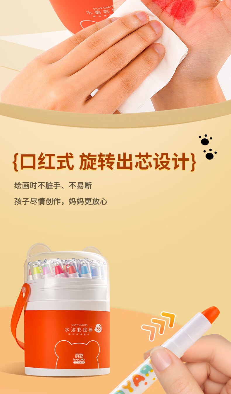 真彩(TRUECOLOR)真彩水溶蜡笔不脏手可旋转油画棒儿童炫彩棒安全幼儿园小学生不沾手画笔可水洗彩色蜡笔48水彩笔 【24色】送笔刷/旋转出芯不脏手