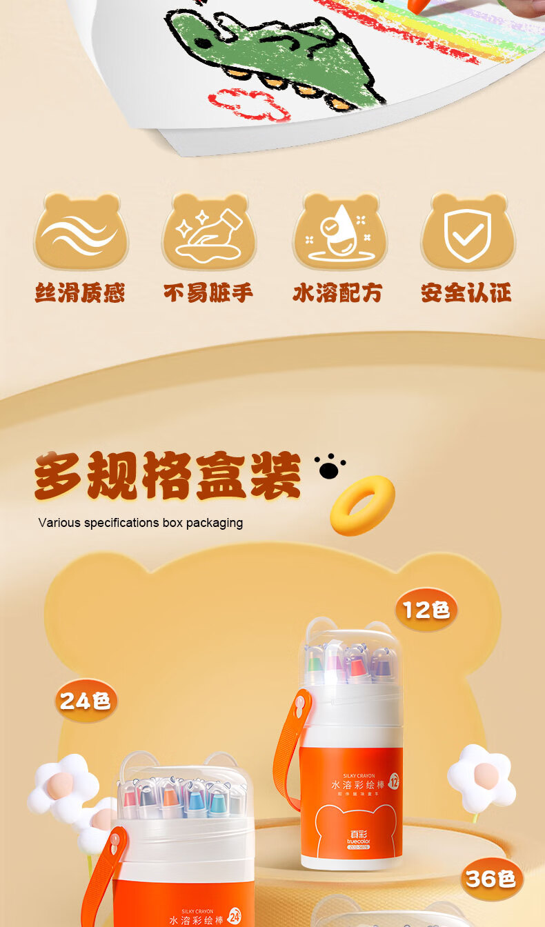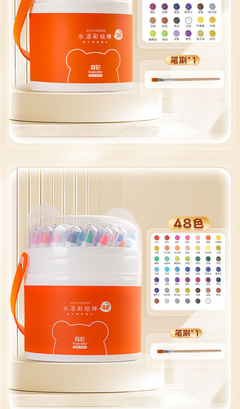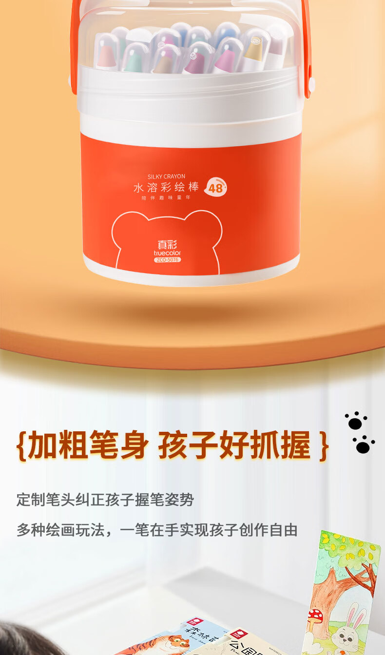 真彩(TRUECOLOR)真彩水溶蜡笔不脏手可旋转油画棒儿童炫彩棒安全幼儿园小学生不沾手画笔可水洗彩色蜡笔48水彩笔 【24色】送笔刷/旋转出芯不脏手