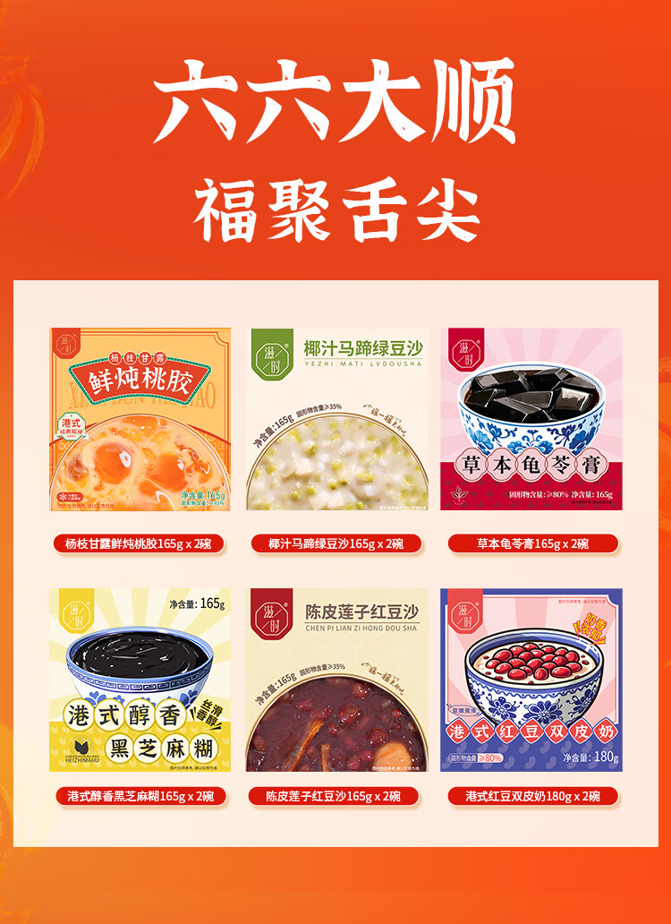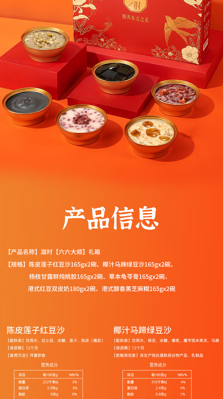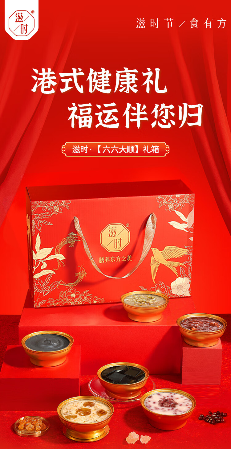 滋时鲜炖甜品6口味12碗即食粥年货节礼盒送长辈红绿豆沙桃胶非八宝粥
