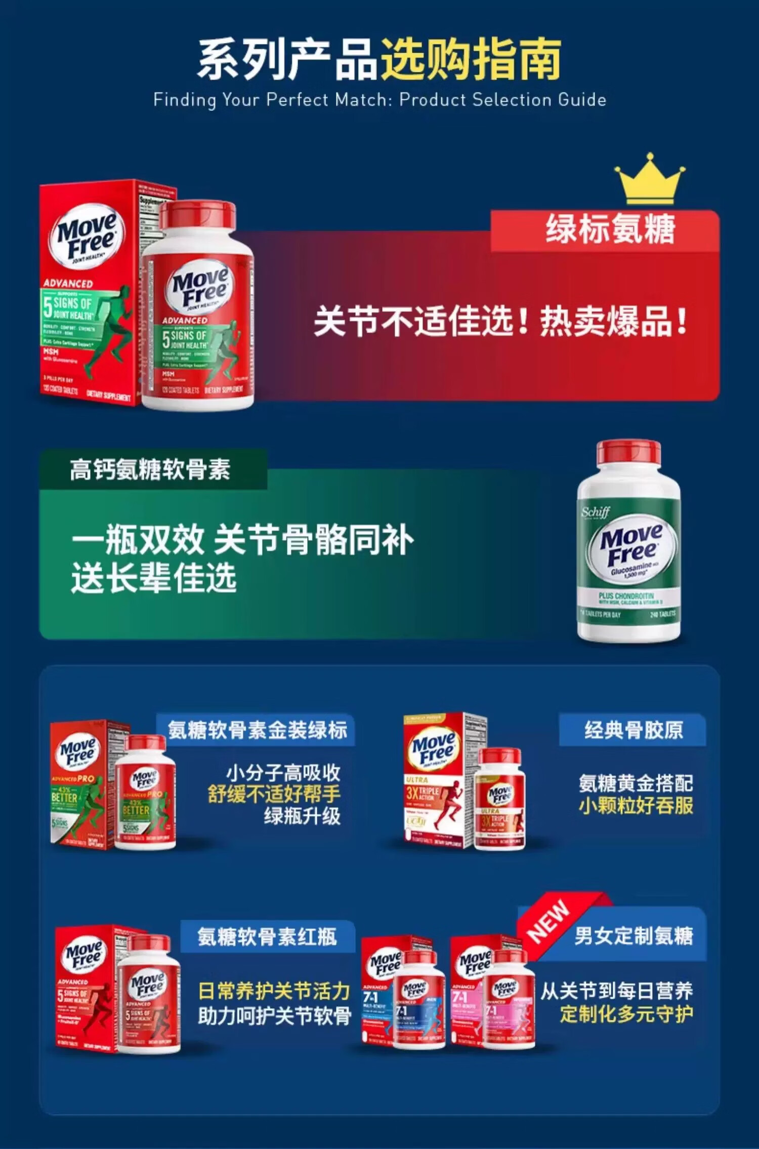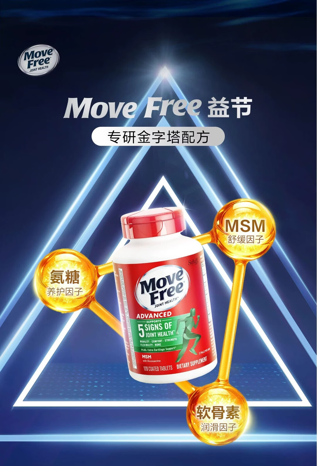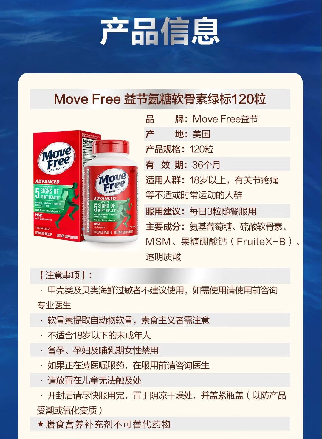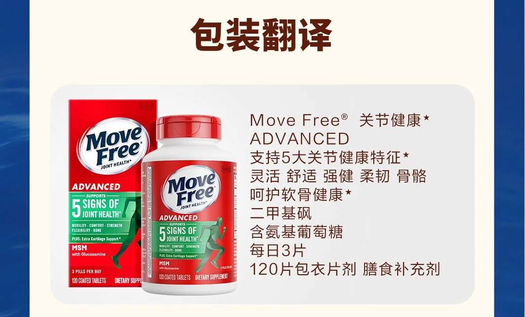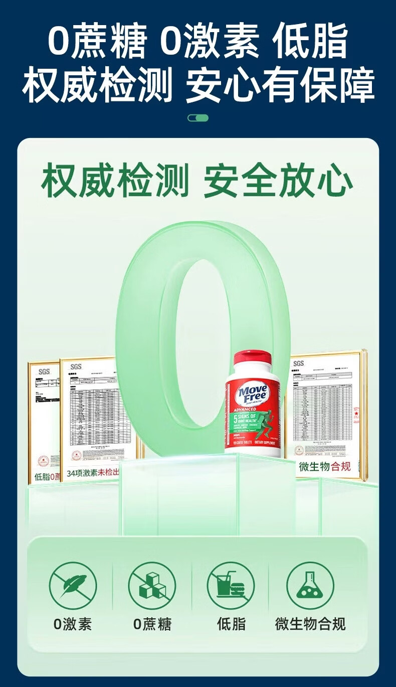 益节美国进口MoveFree维骨力绿瓶氨糖软骨素骨胶原中老年养护关节 氨糖软骨素绿瓶 120粒*1瓶 原装进口 正品保障
