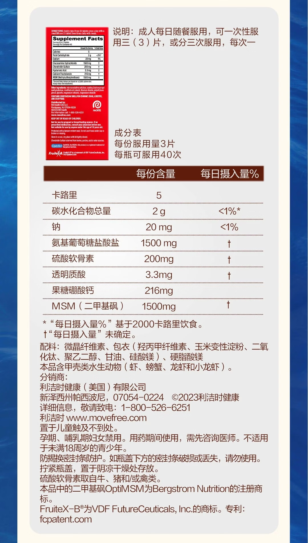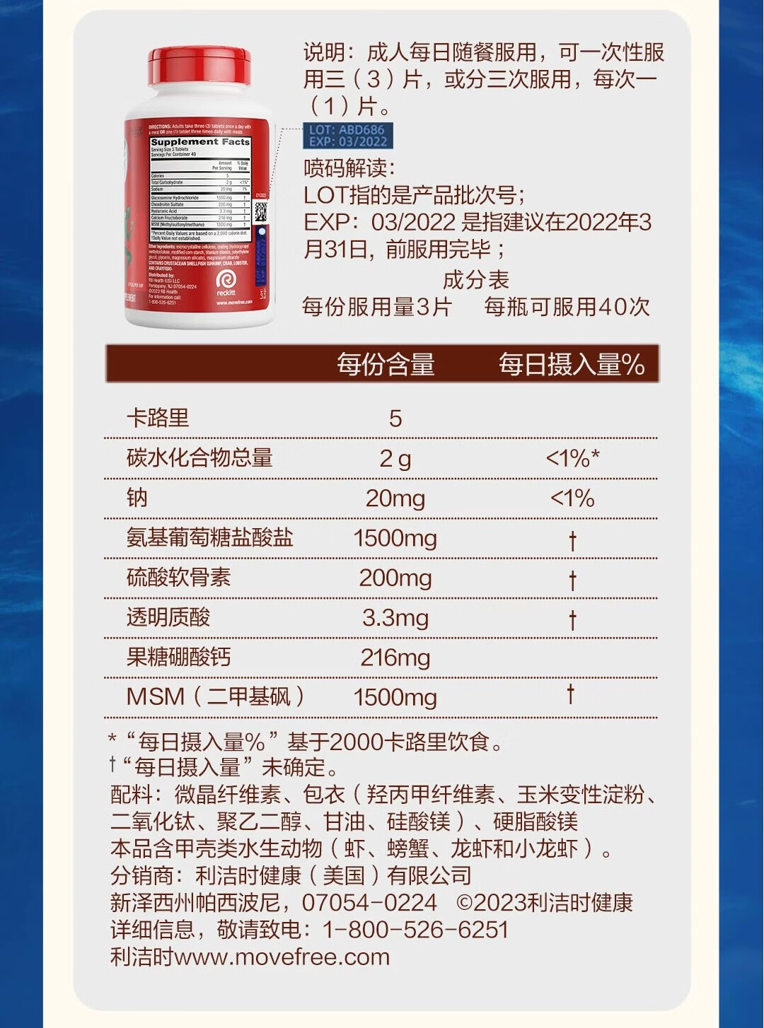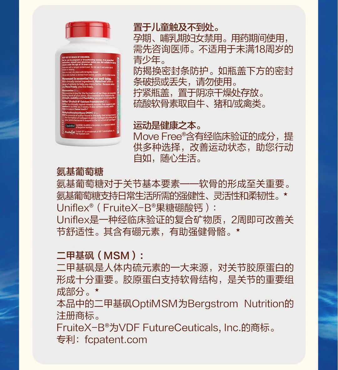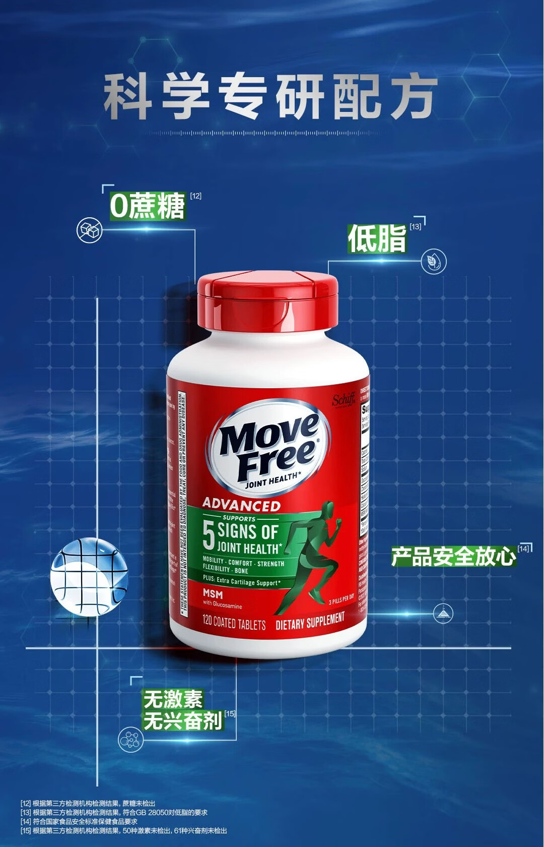 益节美国进口MoveFree维骨力绿瓶氨糖软骨素骨胶原中老年养护关节 氨糖软骨素绿瓶 120粒*1瓶 原装进口 正品保障