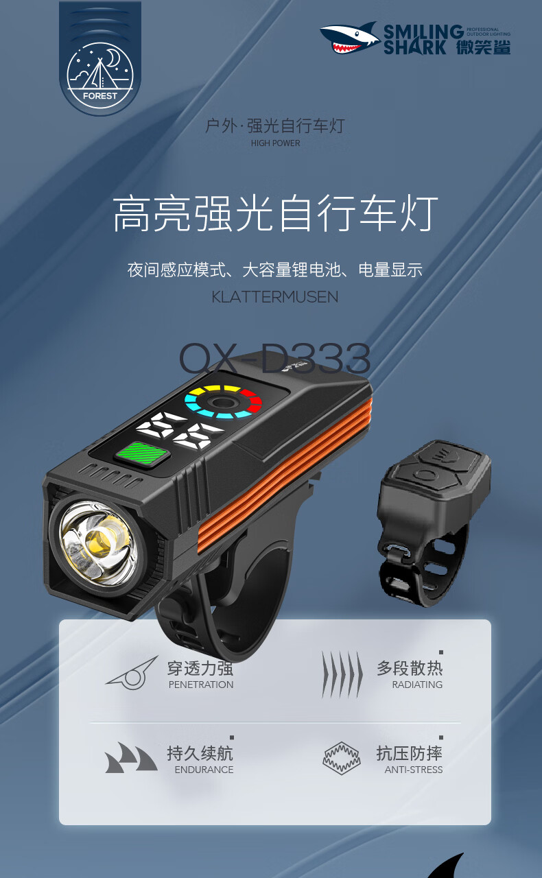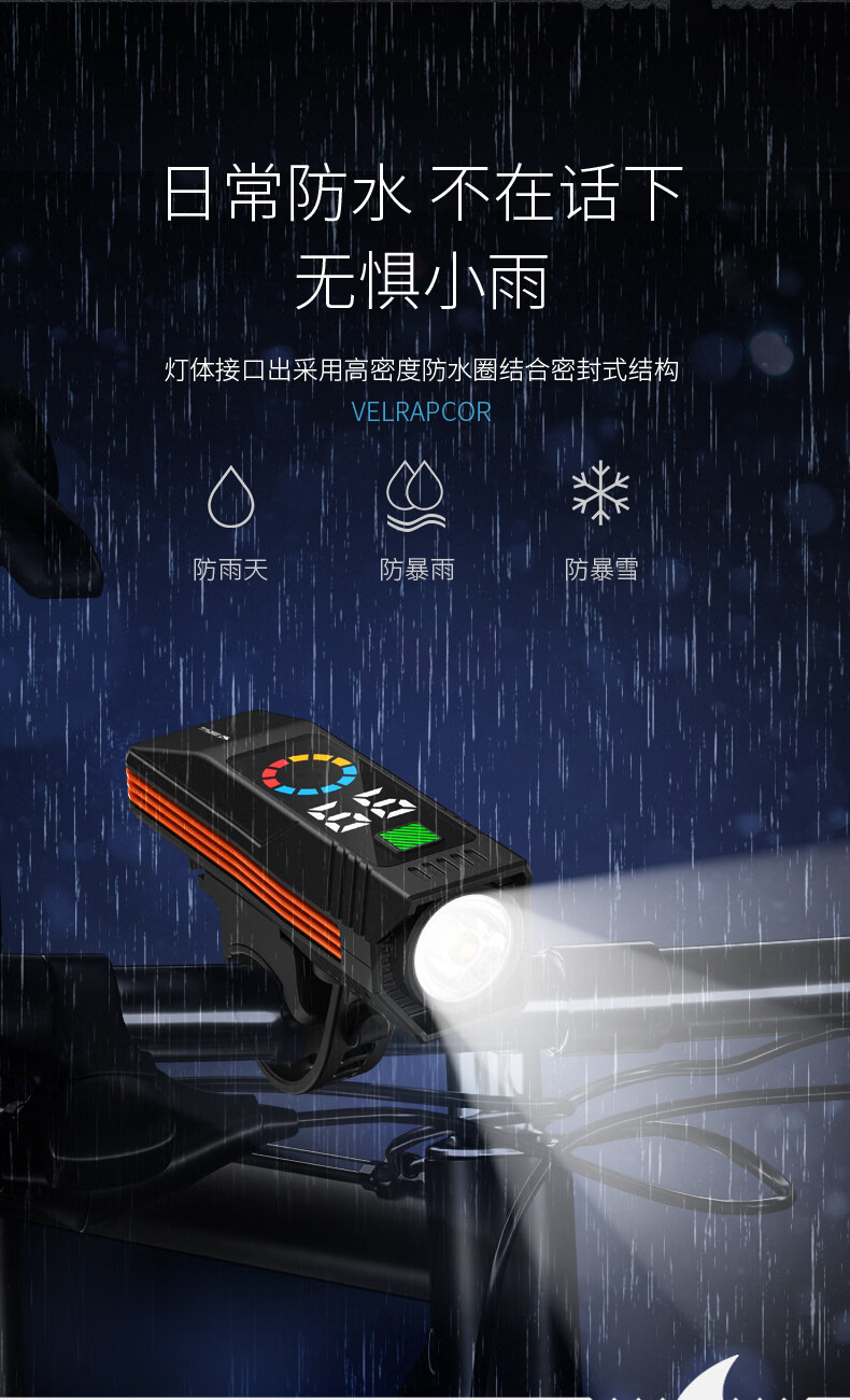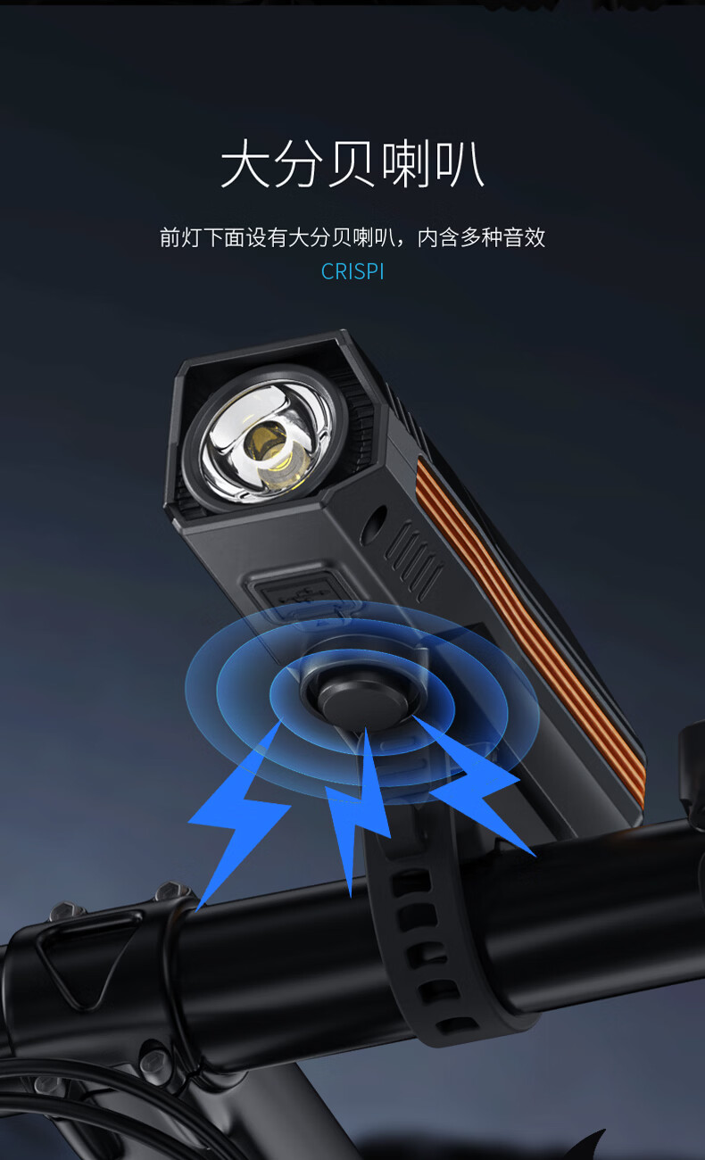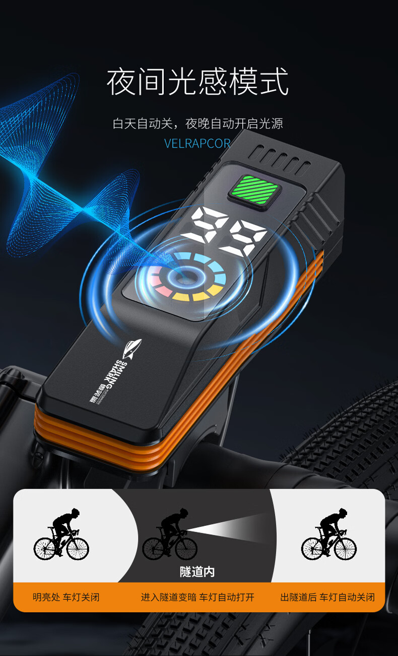 微笑鲨自行车夜骑灯喇叭一体防水强光手电山地车夜间超亮公路车前灯照明 顶配款【1200毫安】大分贝喇叭+液晶数显+智能光感