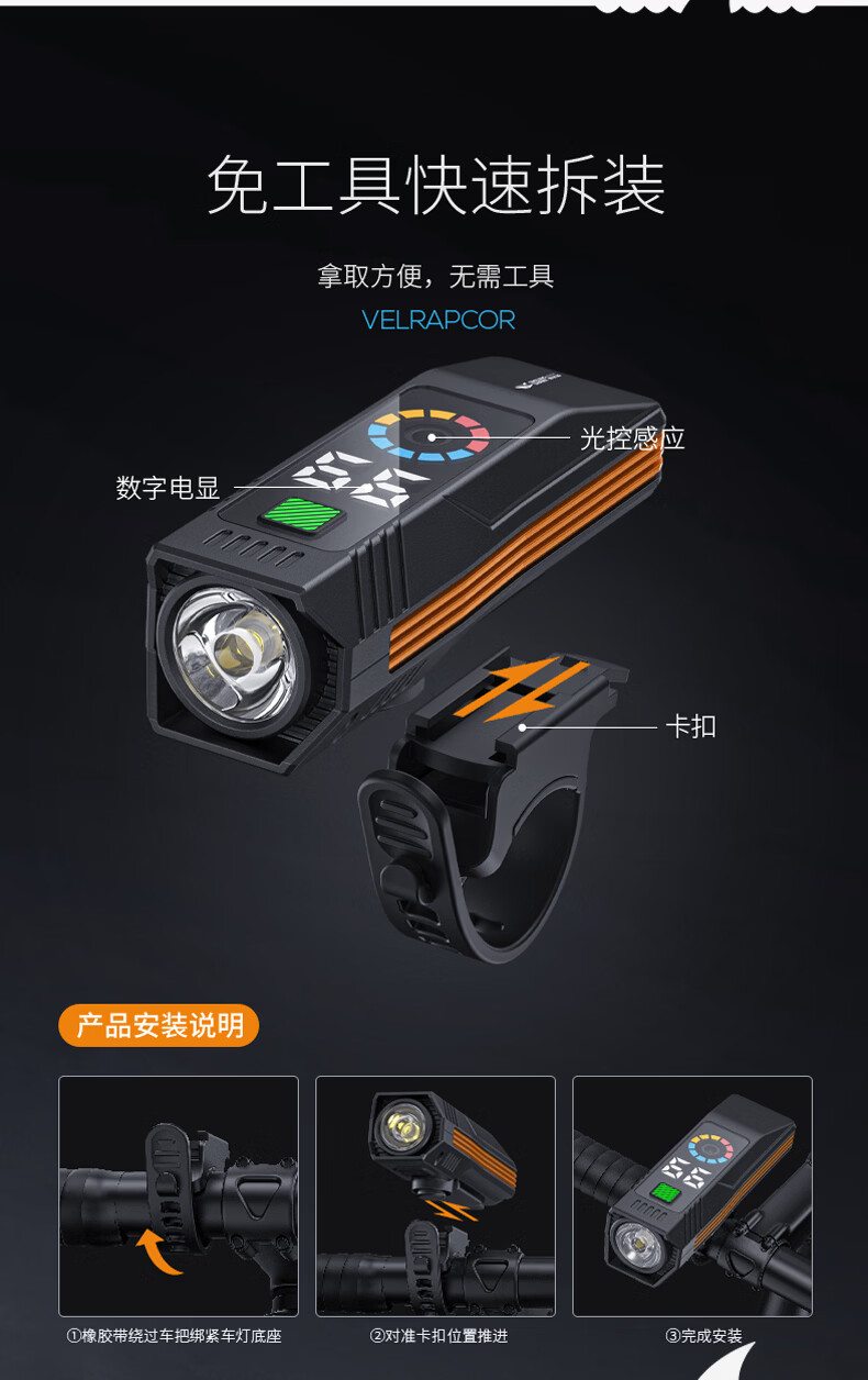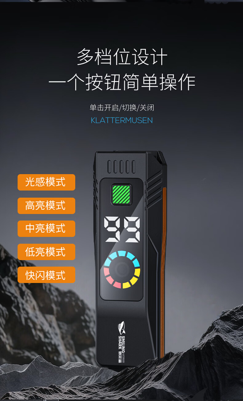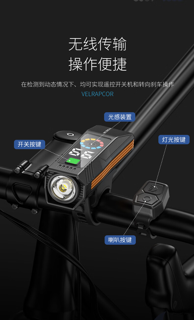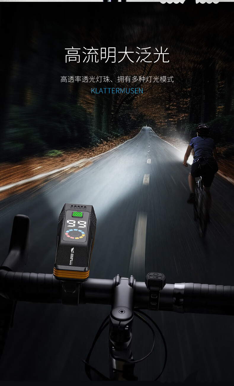 微笑鲨自行车夜骑灯喇叭一体防水强光手电山地车夜间超亮公路车前灯照明 顶配款【1200毫安】大分贝喇叭+液晶数显+智能光感