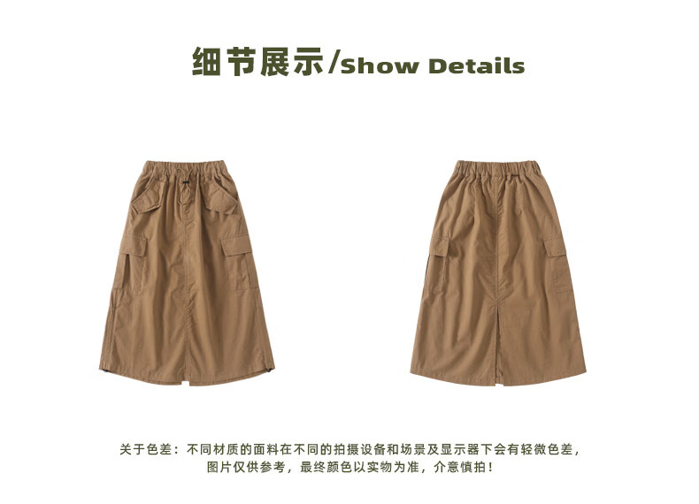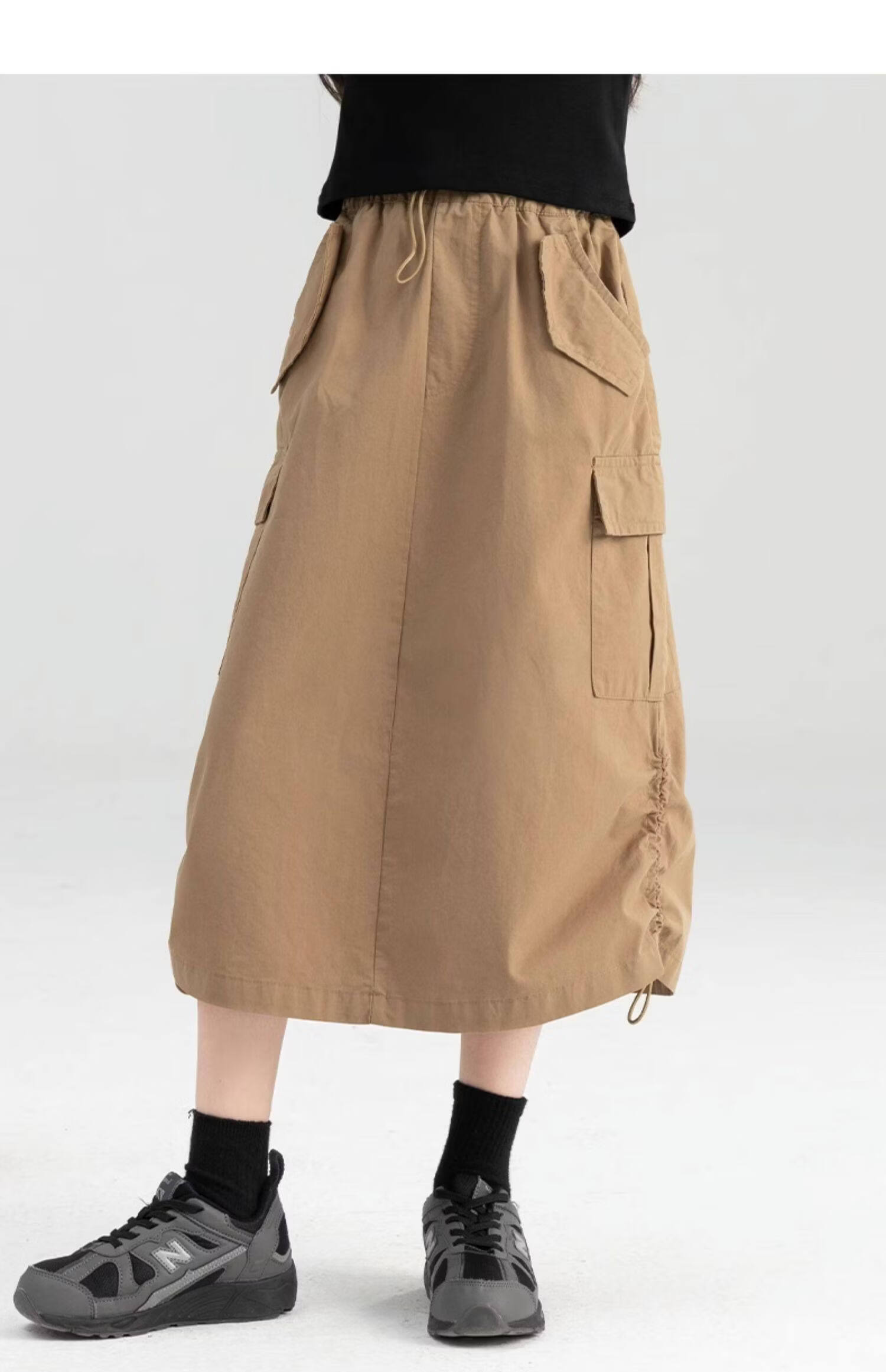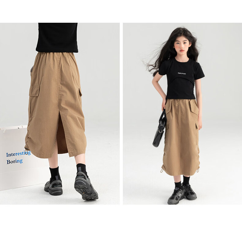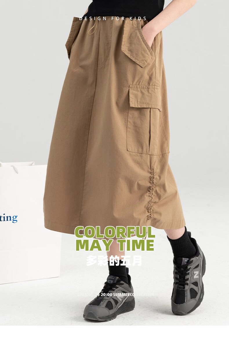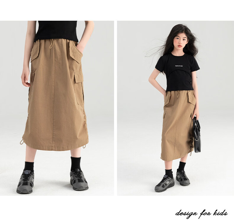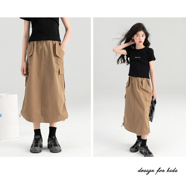 淘町女童半身裙夏季新款中大童纯色工装洋气中长裙时尚裙子潮 卡其色 170