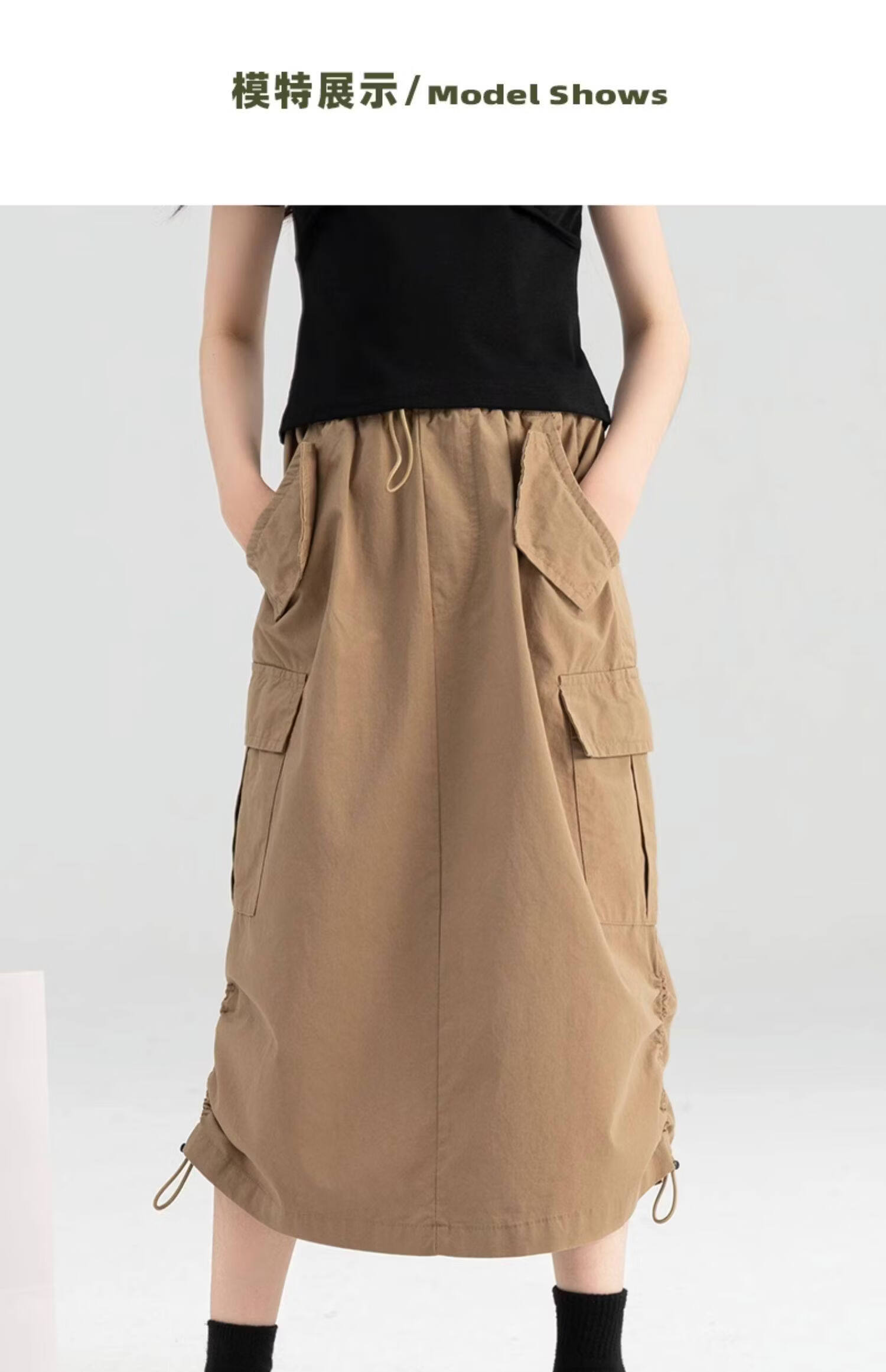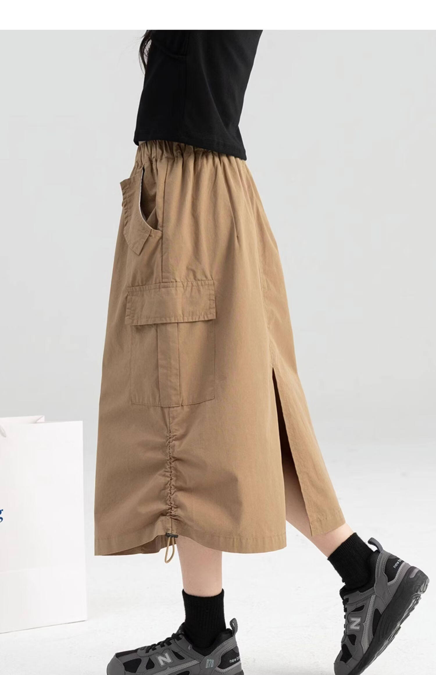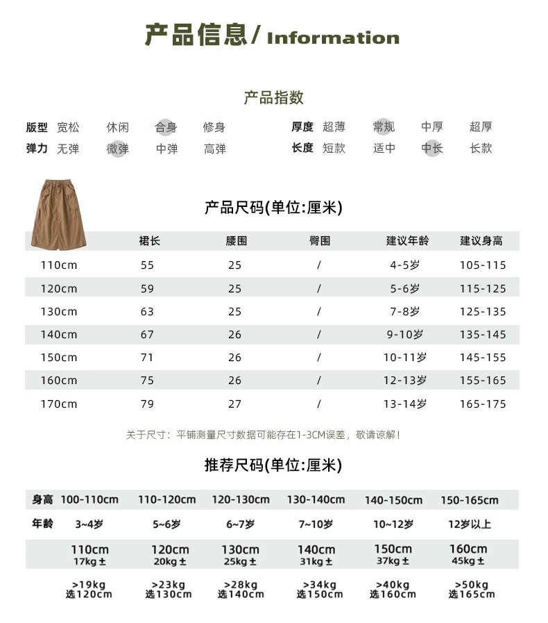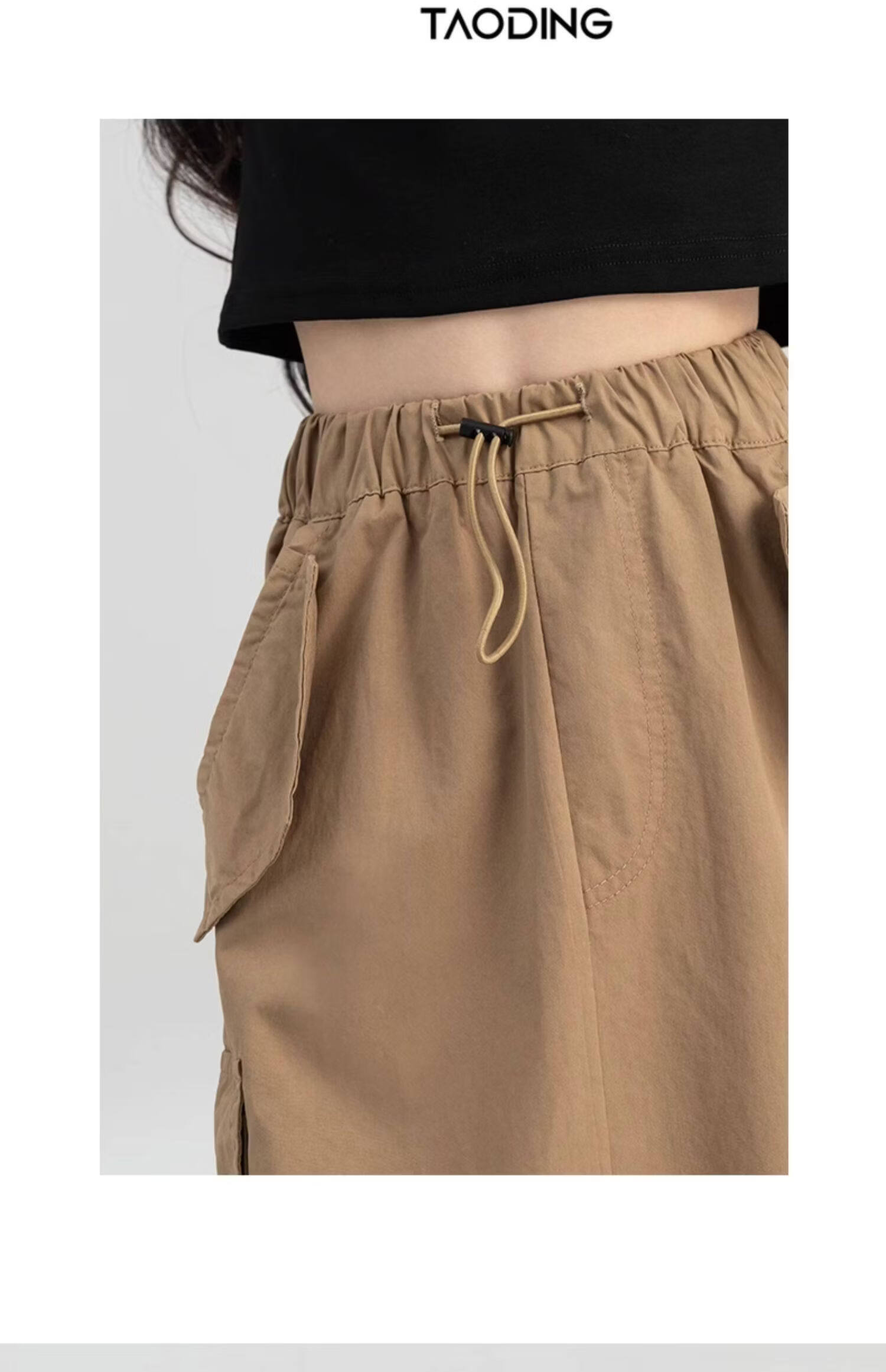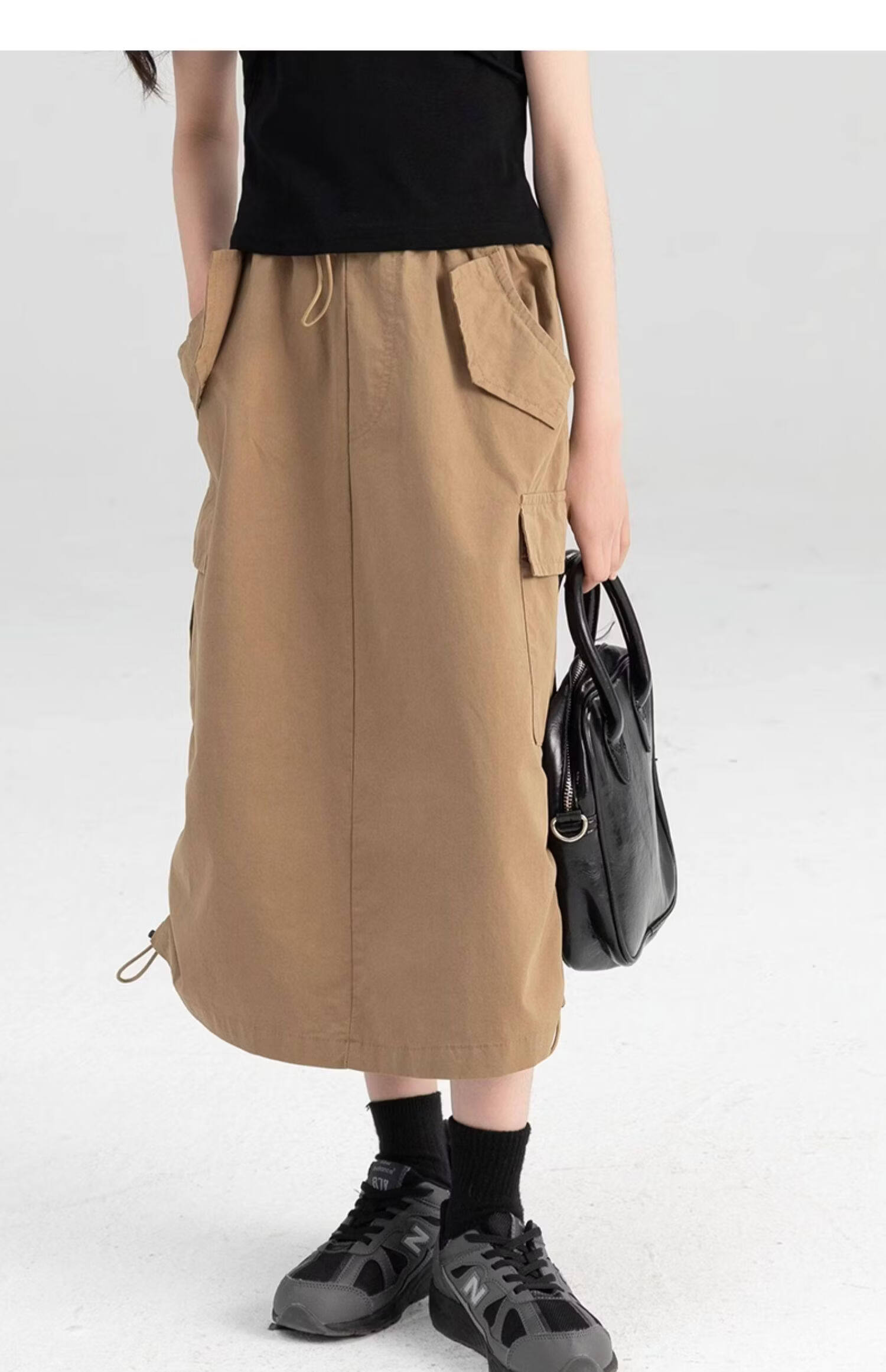 淘町女童半身裙夏季新款中大童纯色工装洋气中长裙时尚裙子潮 卡其色 170