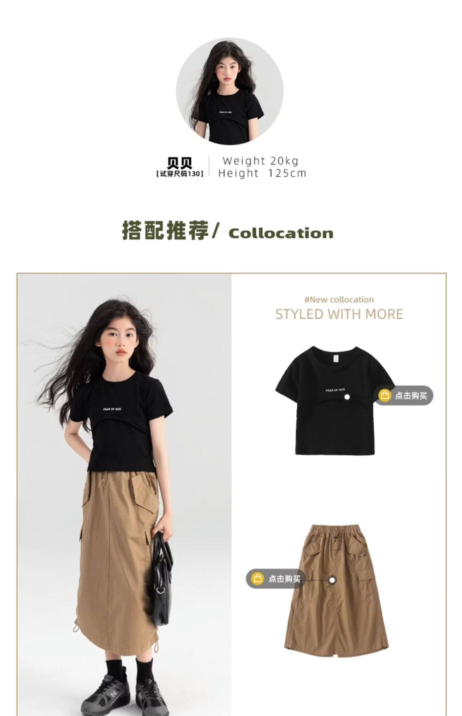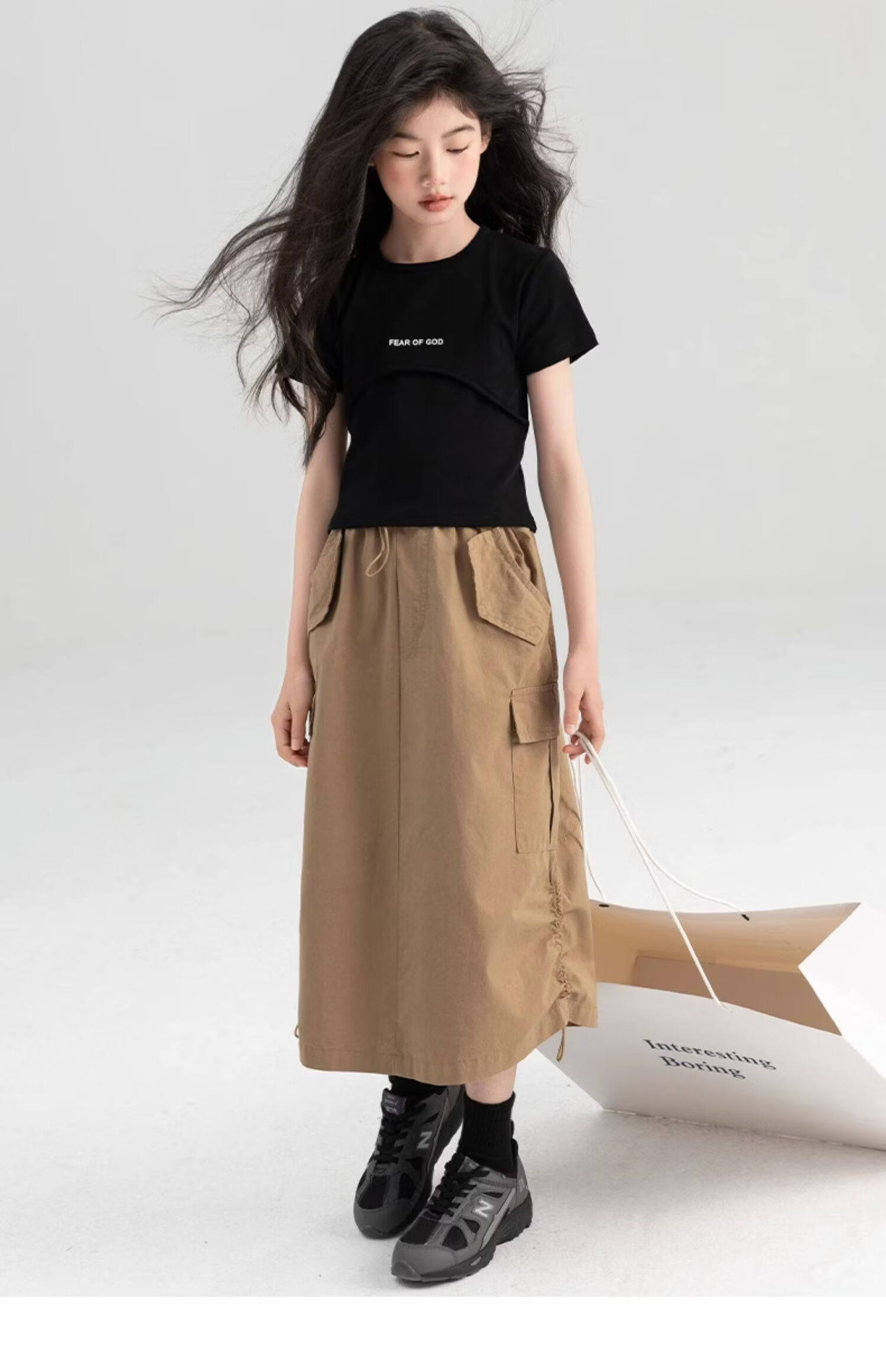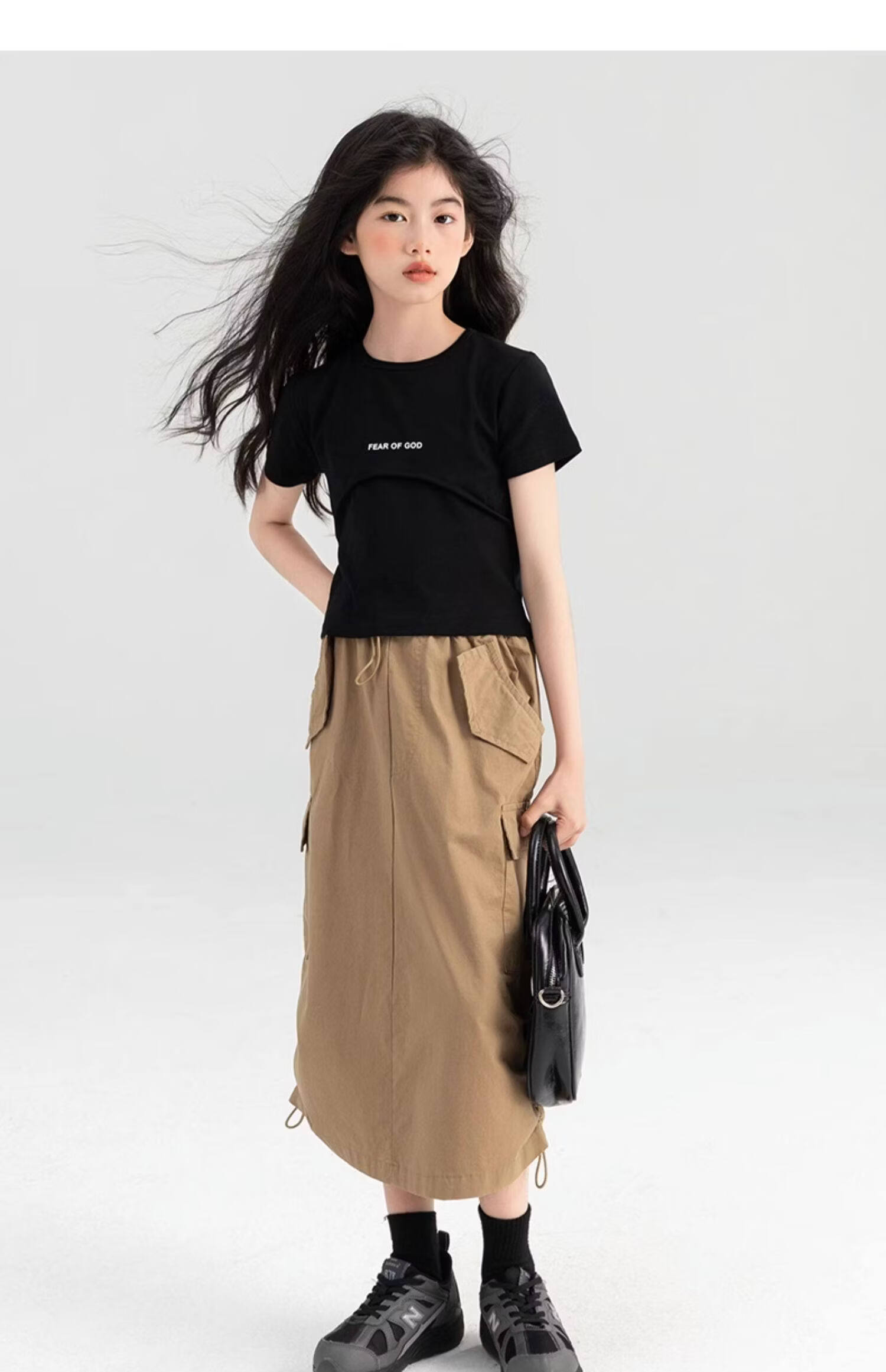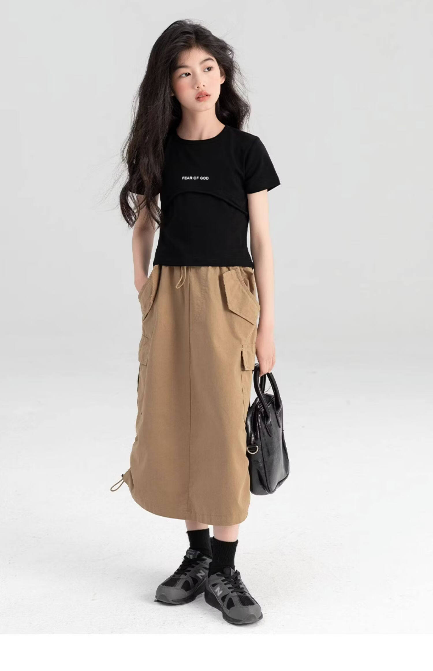 淘町女童半身裙夏季新款中大童纯色工装洋气中长裙时尚裙子潮 卡其色 170