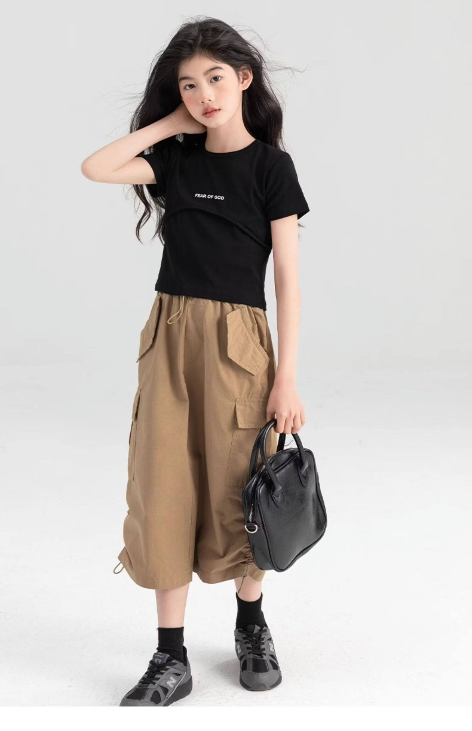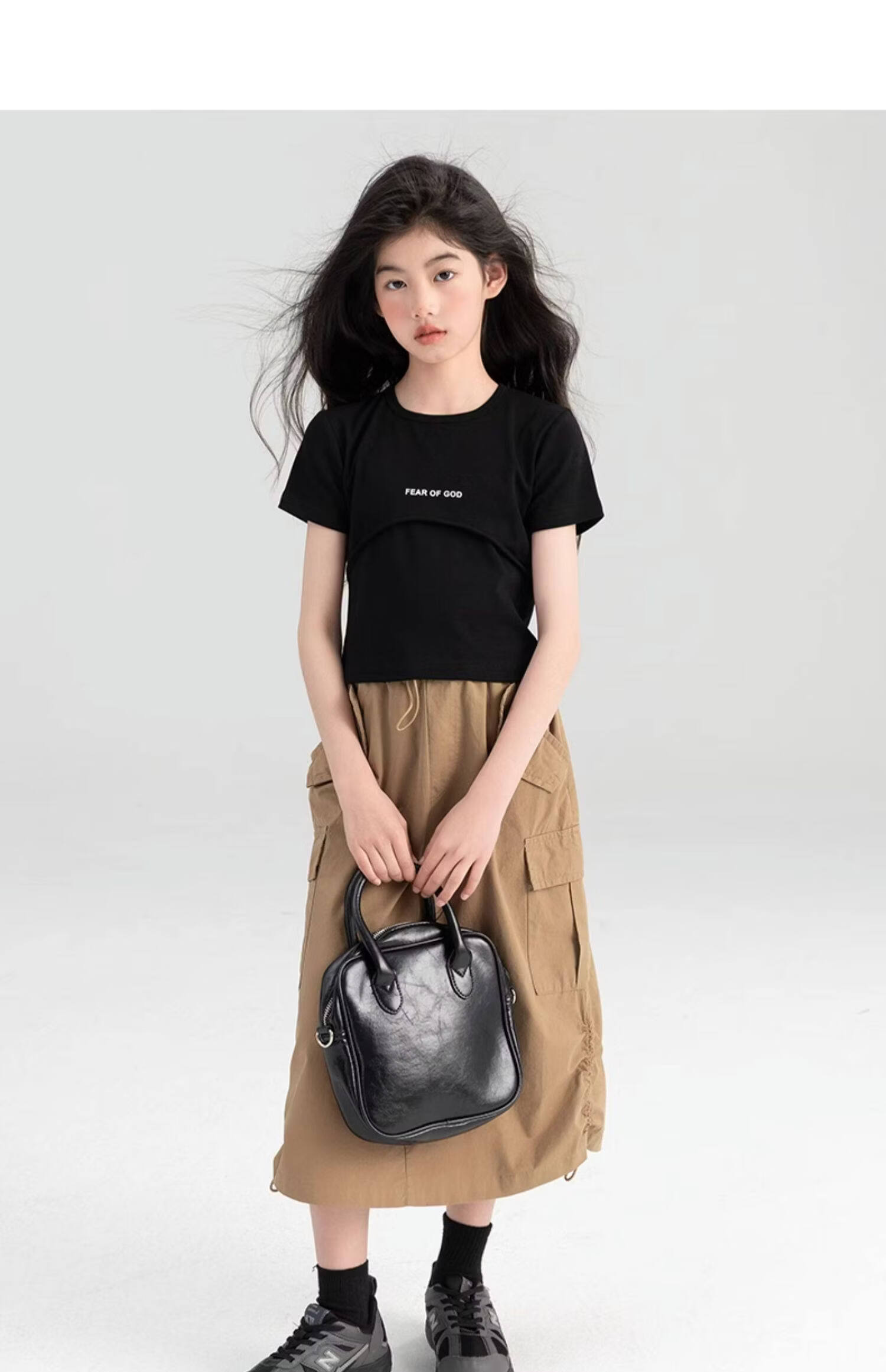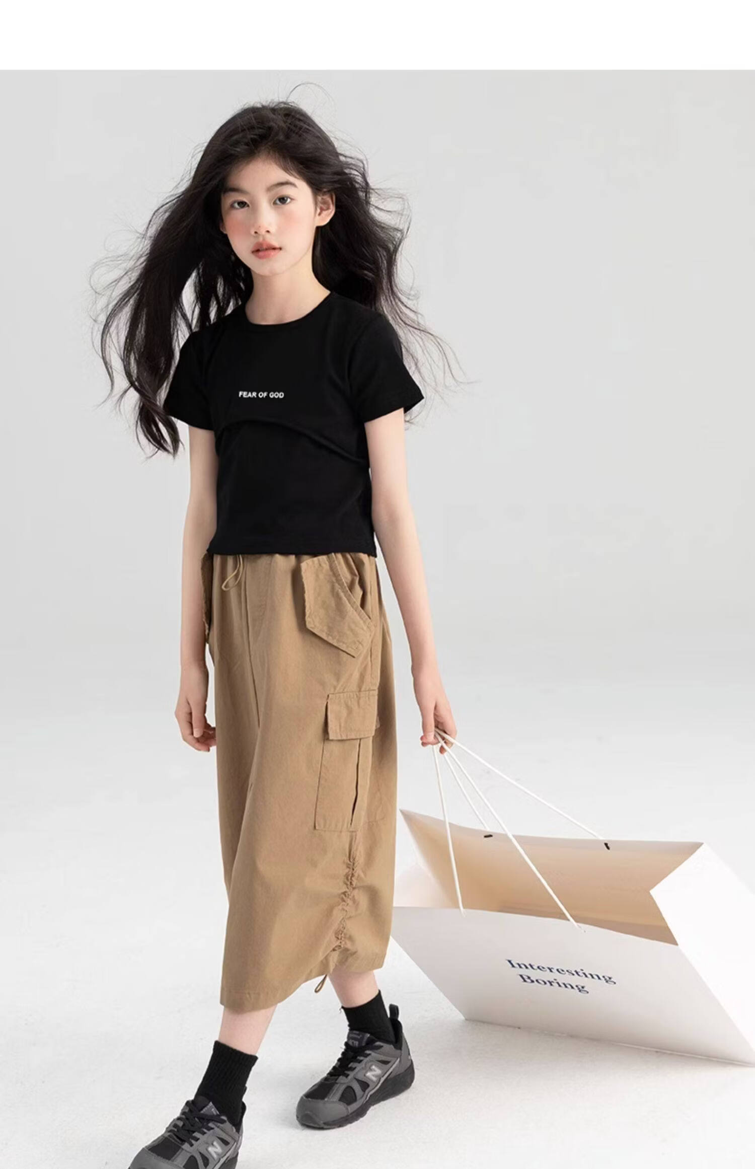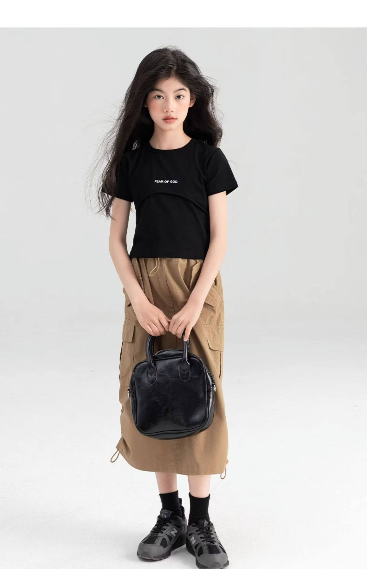 淘町女童半身裙夏季新款中大童纯色工装洋气中长裙时尚裙子潮 卡其色 170