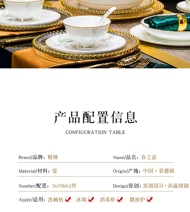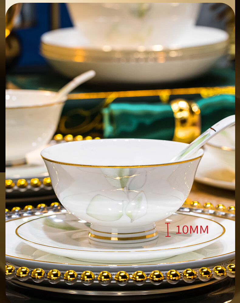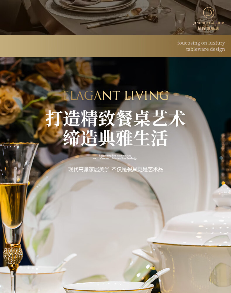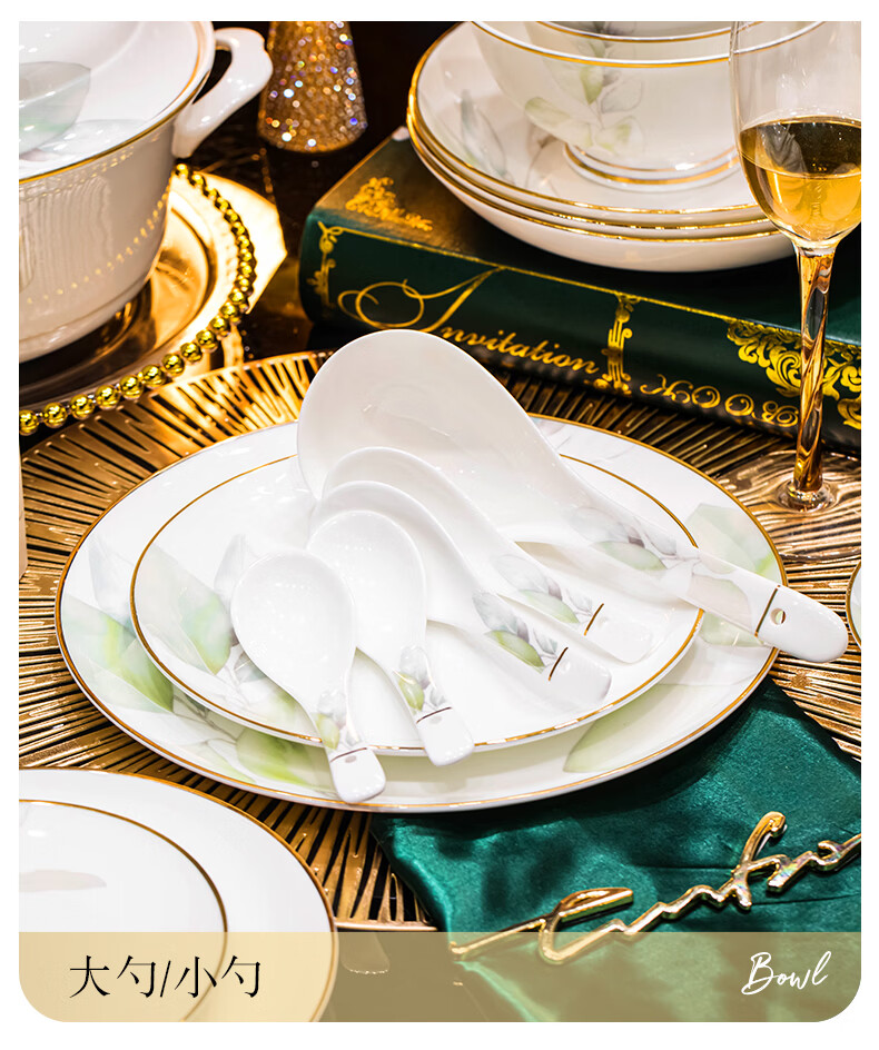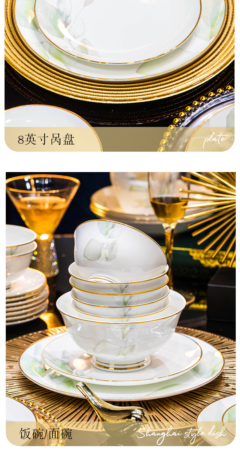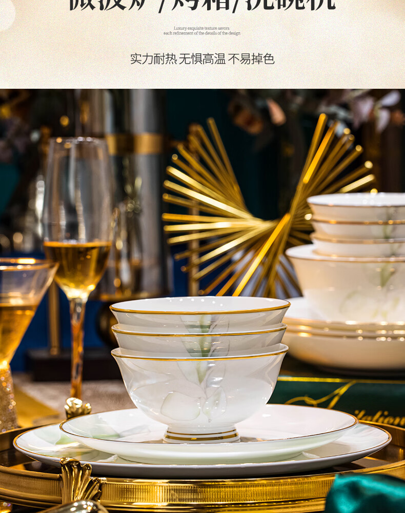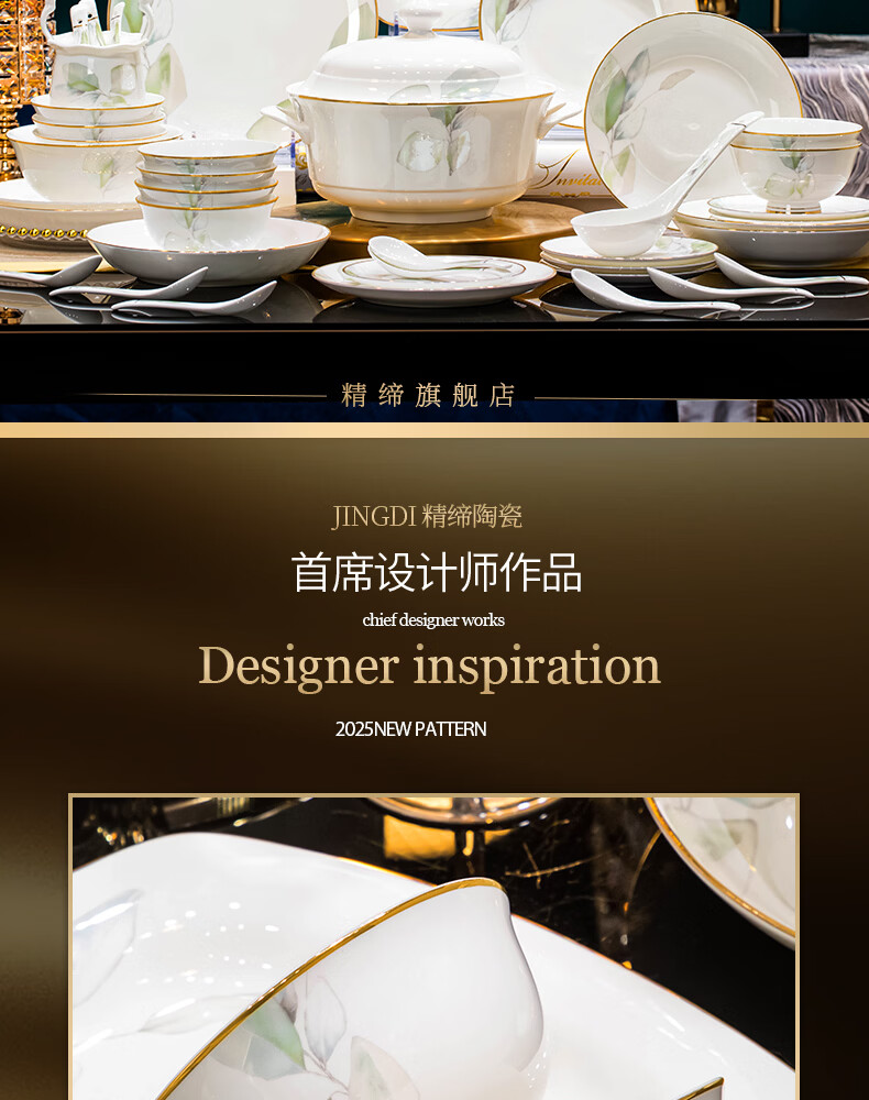 精缔陶瓷JINGDI2025新款碗碟套装家用碗筷乔迁高温骨瓷餐具套装景德镇陶瓷碗盘子 【店长推荐】66件升级配大汤碗 66件套