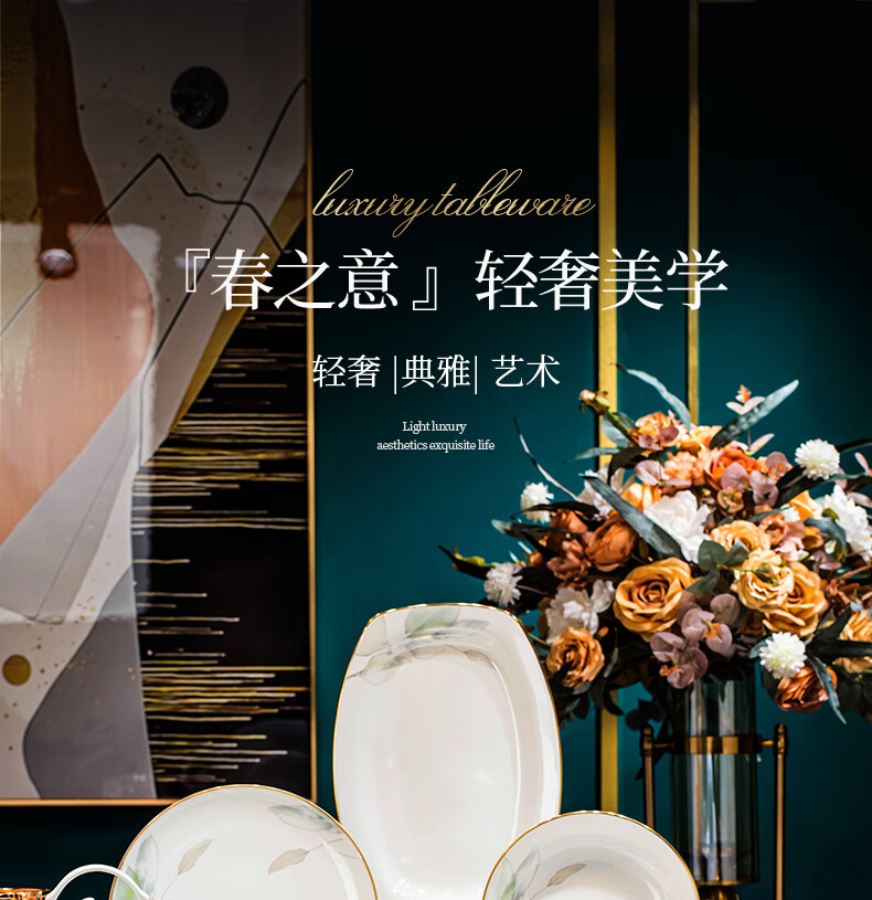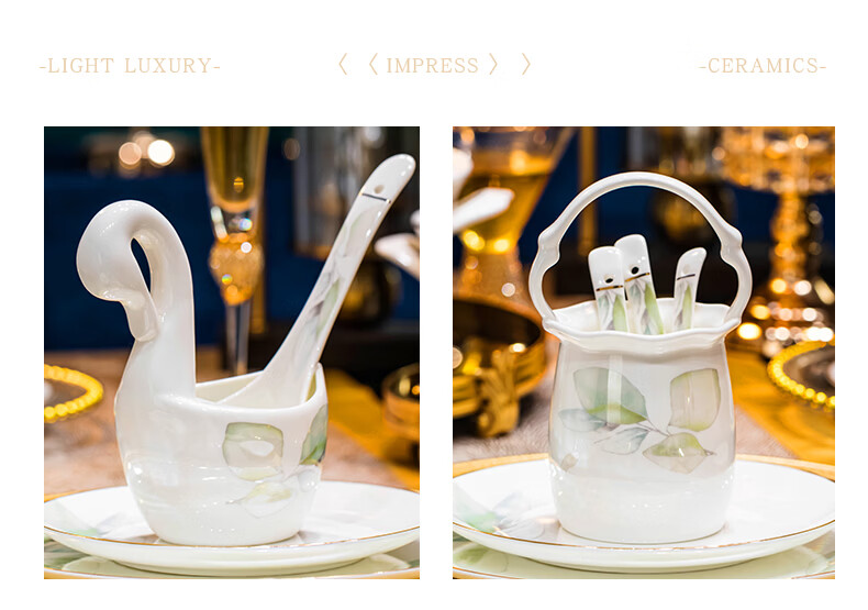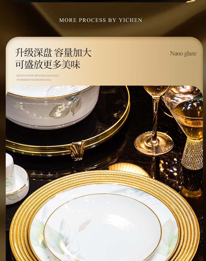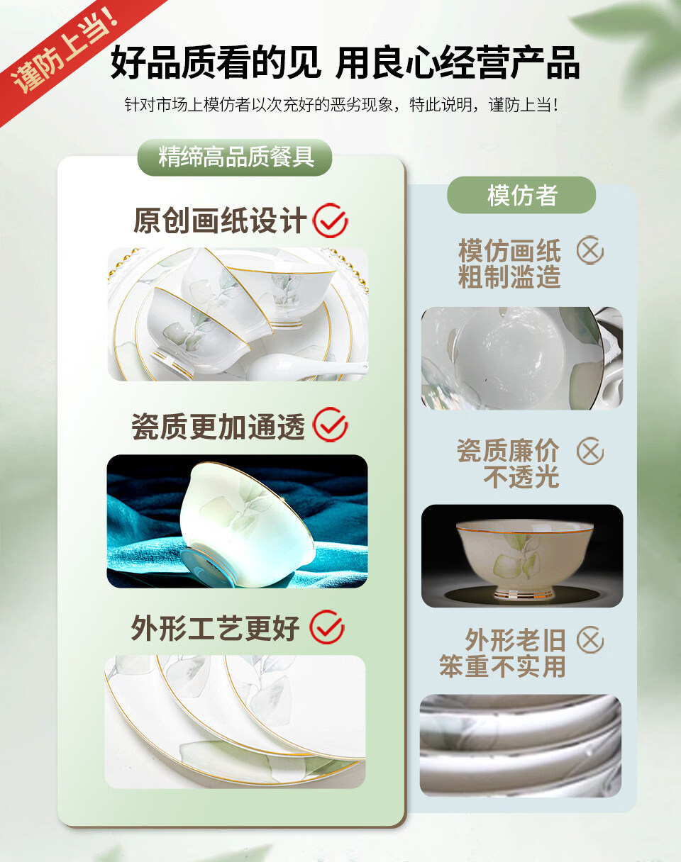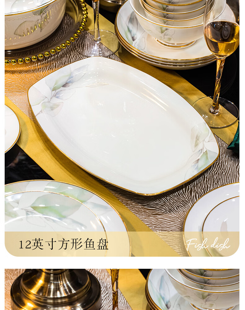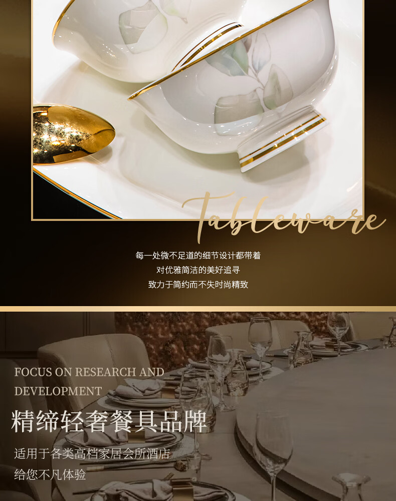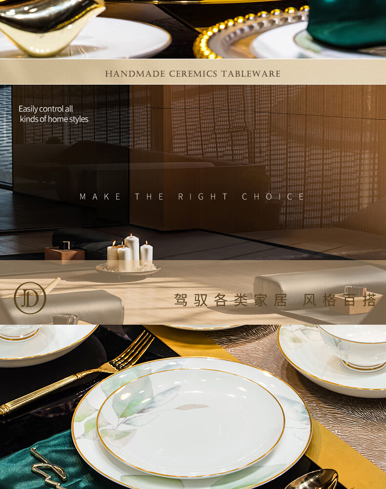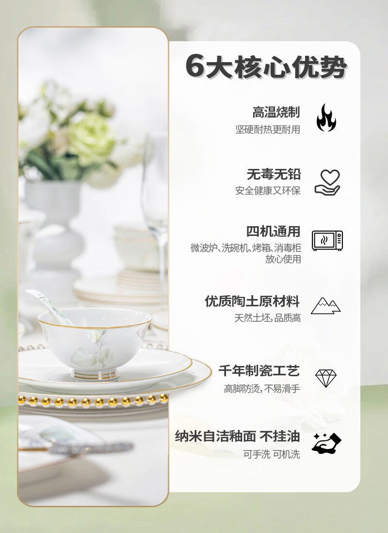 精缔陶瓷JINGDI2025新款碗碟套装家用碗筷乔迁高温骨瓷餐具套装景德镇陶瓷碗盘子 【店长推荐】66件升级配大汤碗 66件套