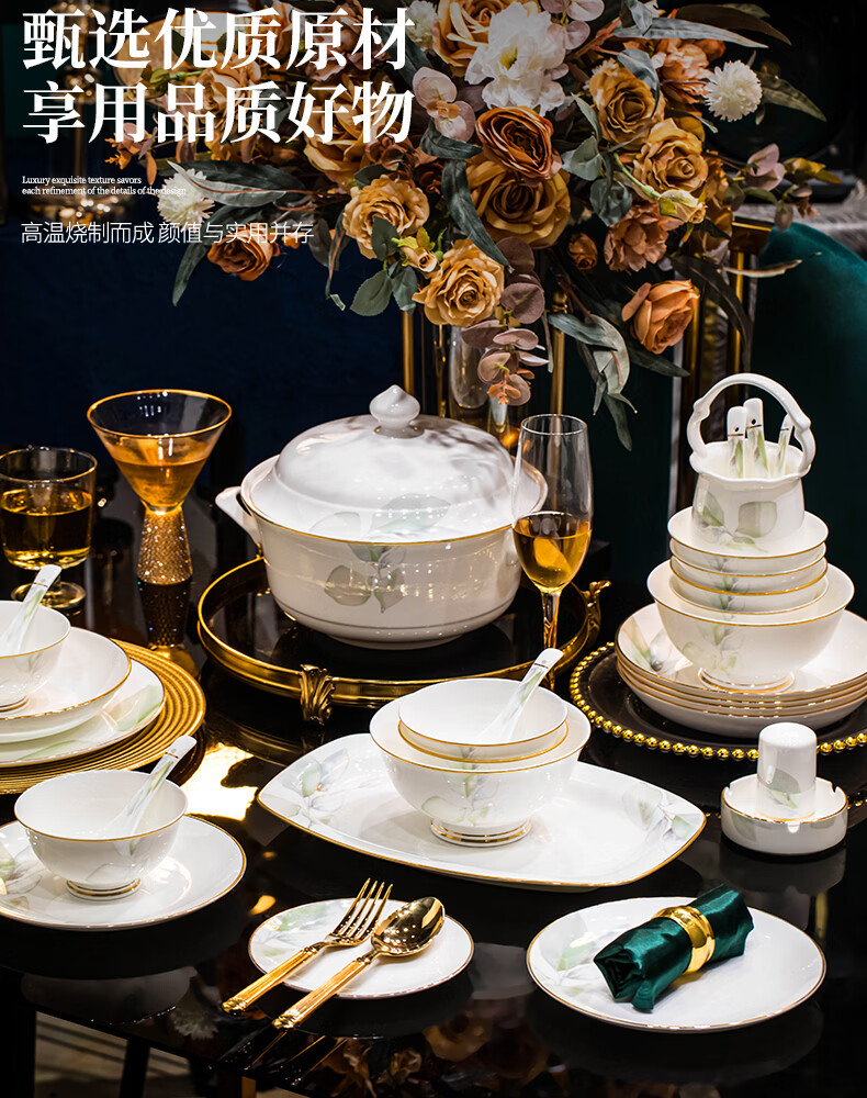 精缔陶瓷JINGDI碗碟套装家用2026高颜值景德镇中式陶瓷碗盘餐具碗具乔迁新居餐具 【店长推荐】54件配富贵煲