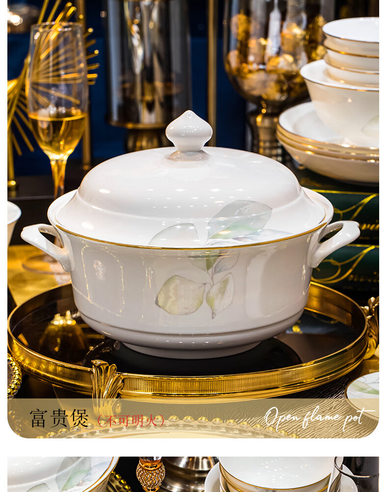 精缔陶瓷JINGDI景德镇碗家用2025新款轻奢高颜值碗碟套装家用陶瓷餐具乔迁新居 【店长推荐】升级配富贵煲 66件套