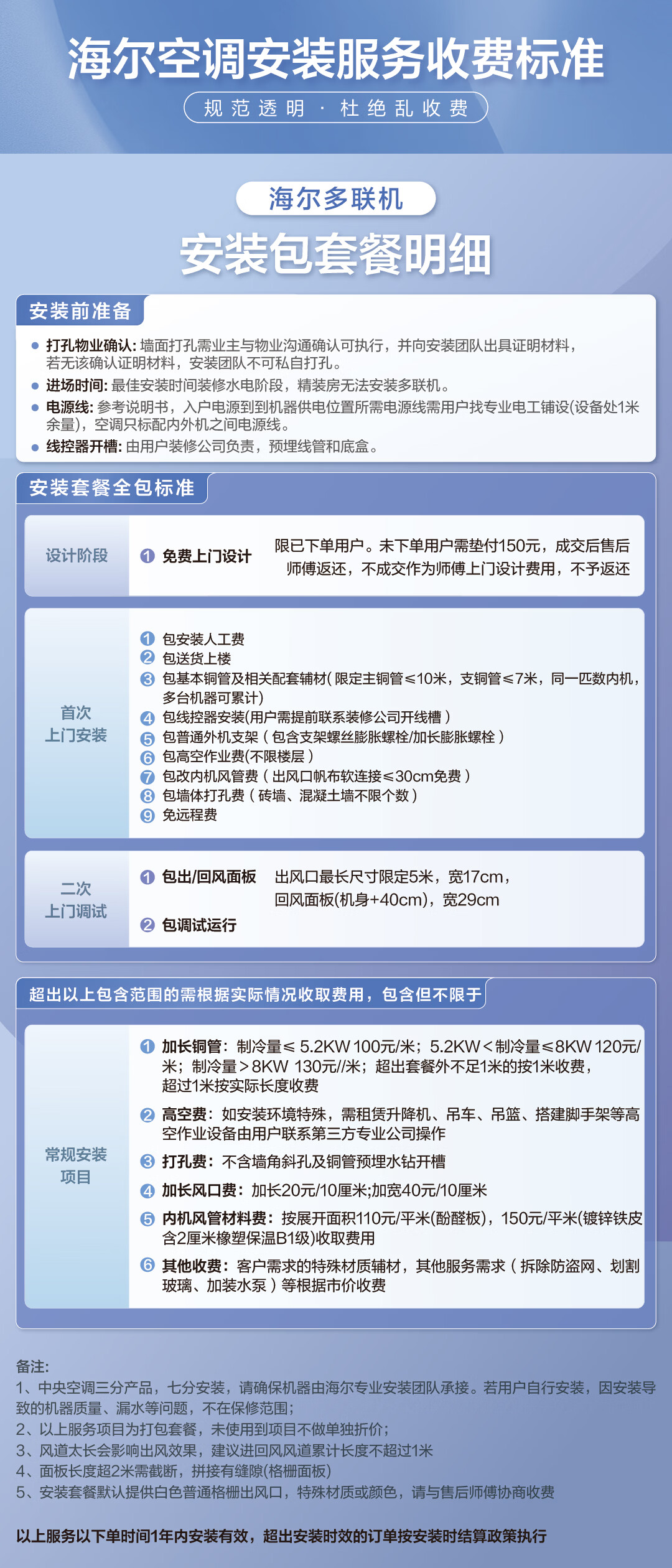 海尔中央空调家用多联机一拖三拖四 一级能效全直流变频自清洁健康Pro+隐形嵌入式 云舒pro+ 7匹 一拖六 四室两厅130㎡