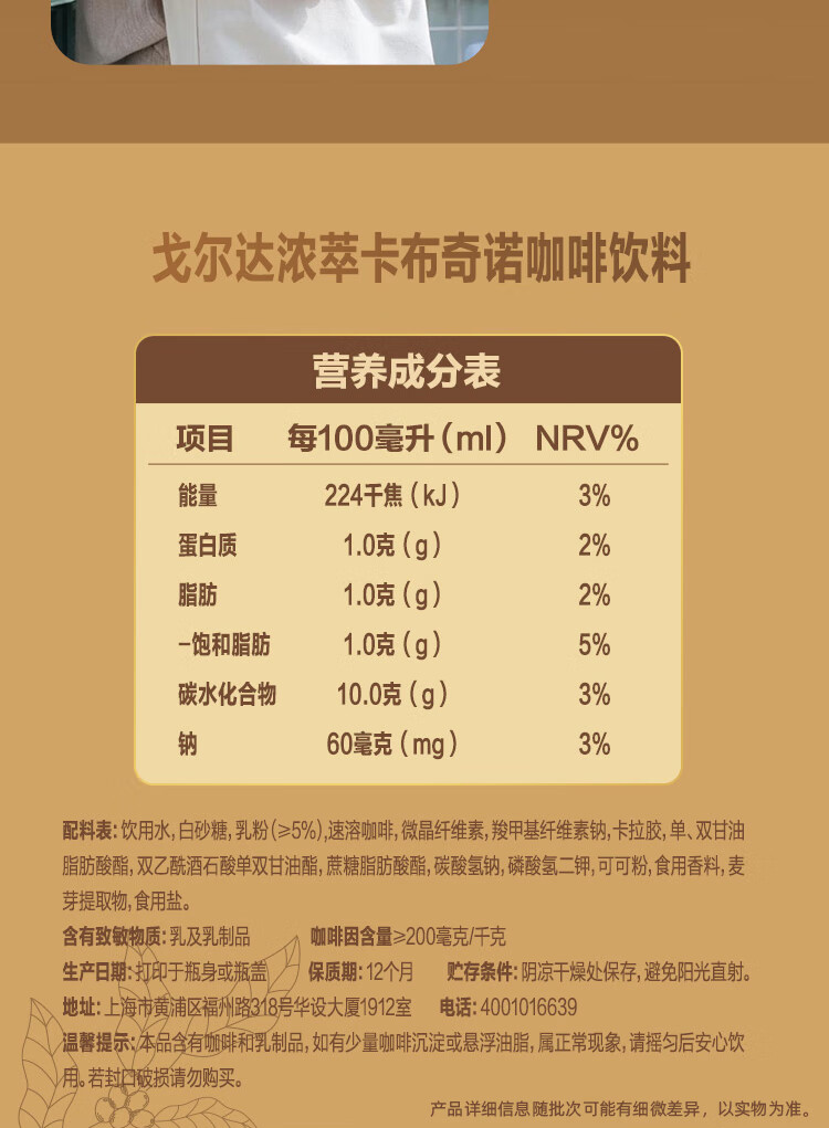 WINGSFOOD戈尔达浓萃卡布奇诺咖啡饮料200ml*12瓶即饮【临期清仓】