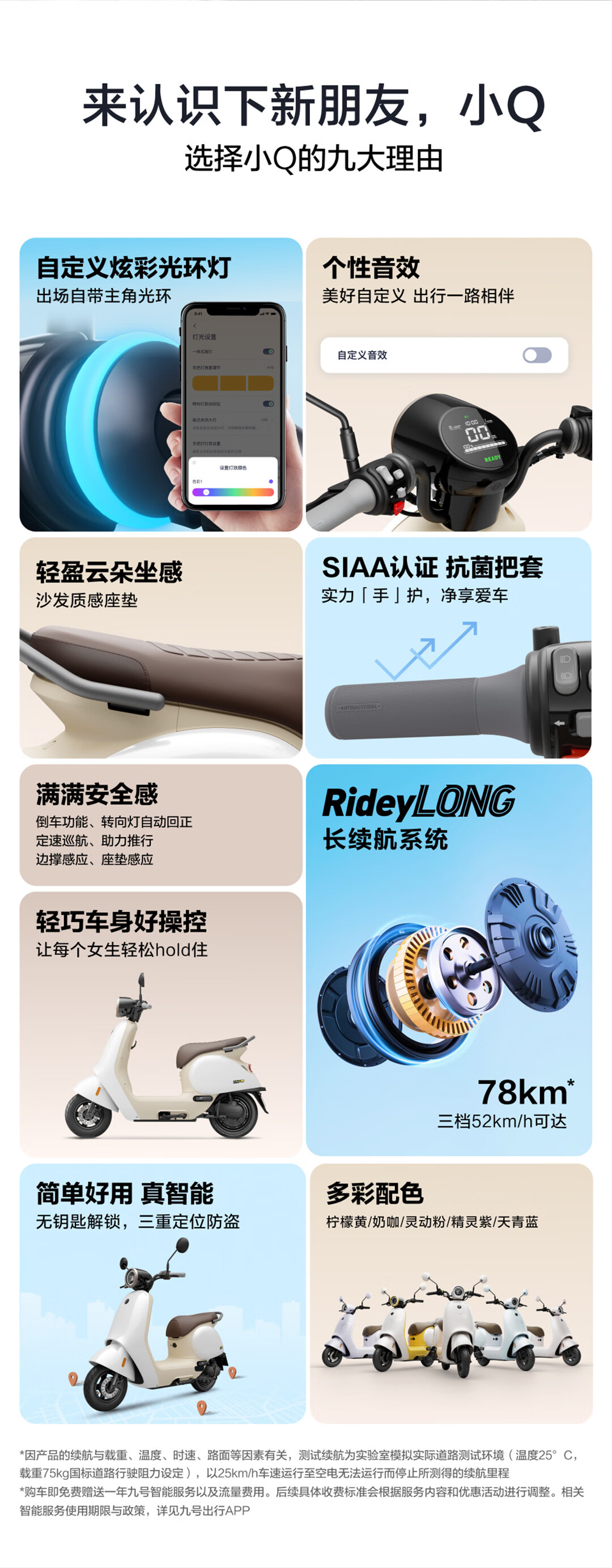 九号(Ninebot)电动Q85c电动摩托车智能长续航电摩【门店自提】 到门店选颜色