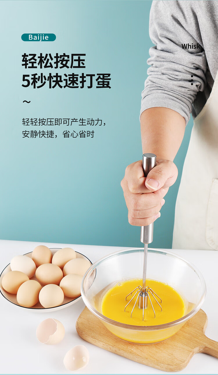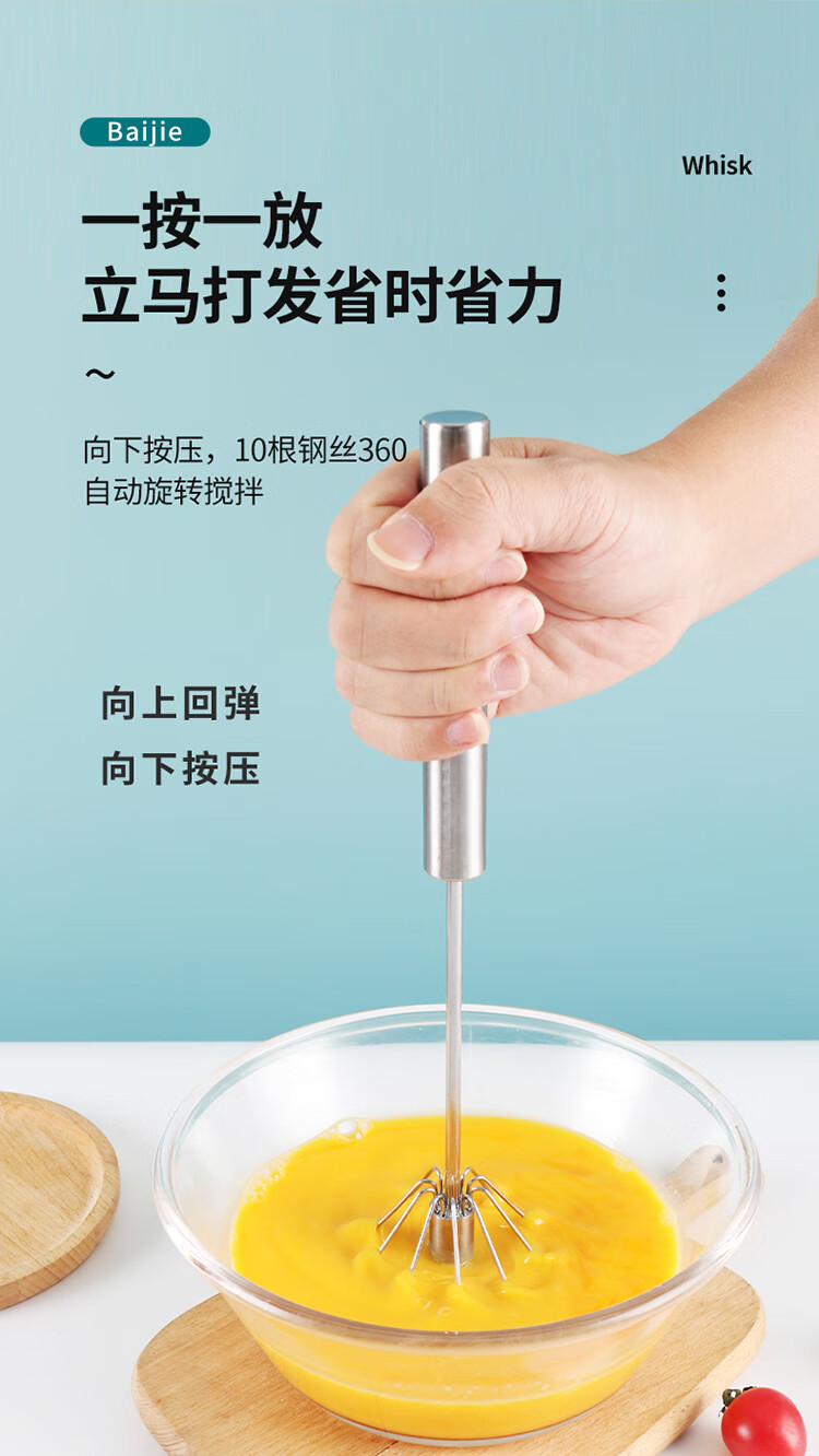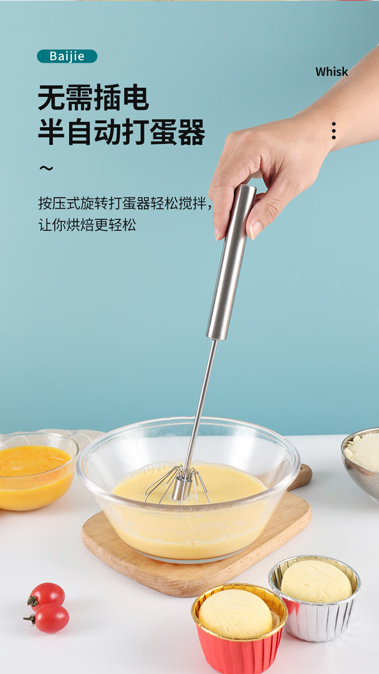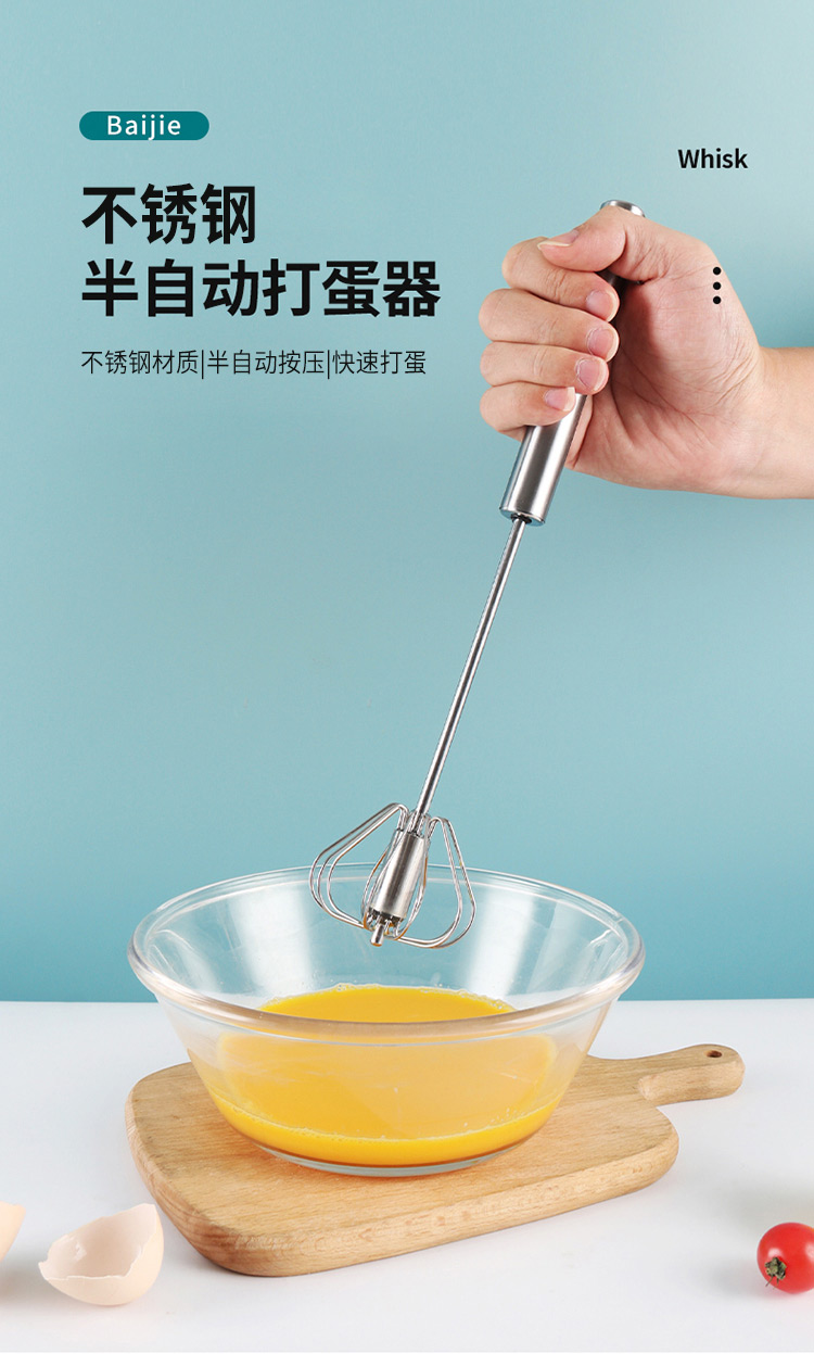 拜杰打蛋器手持半自动按压宝宝辅食工具玉米蛋挞不锈钢奶油搅蛋器