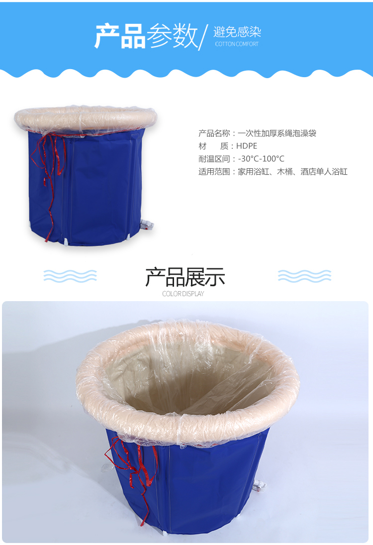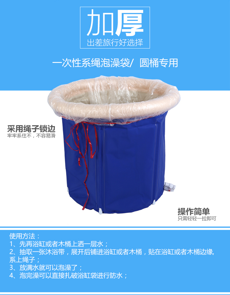 厚新20个130*130带绳子一次性泡澡袋套浴桶木桶塑料浴盆膜圆形沐浴袋