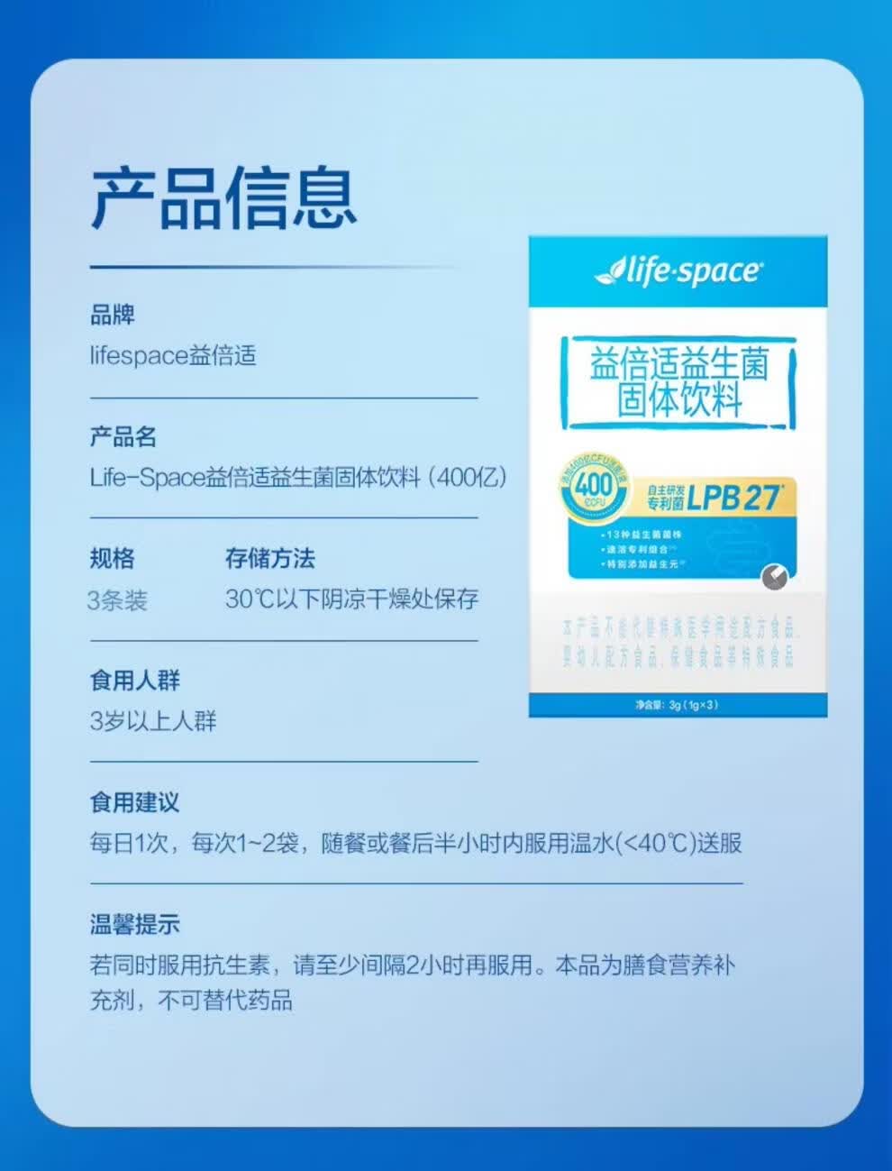 复舒芬益倍适lifespace益生菌400亿成人肠胃道店20袋1盒 400亿20袋*1盒