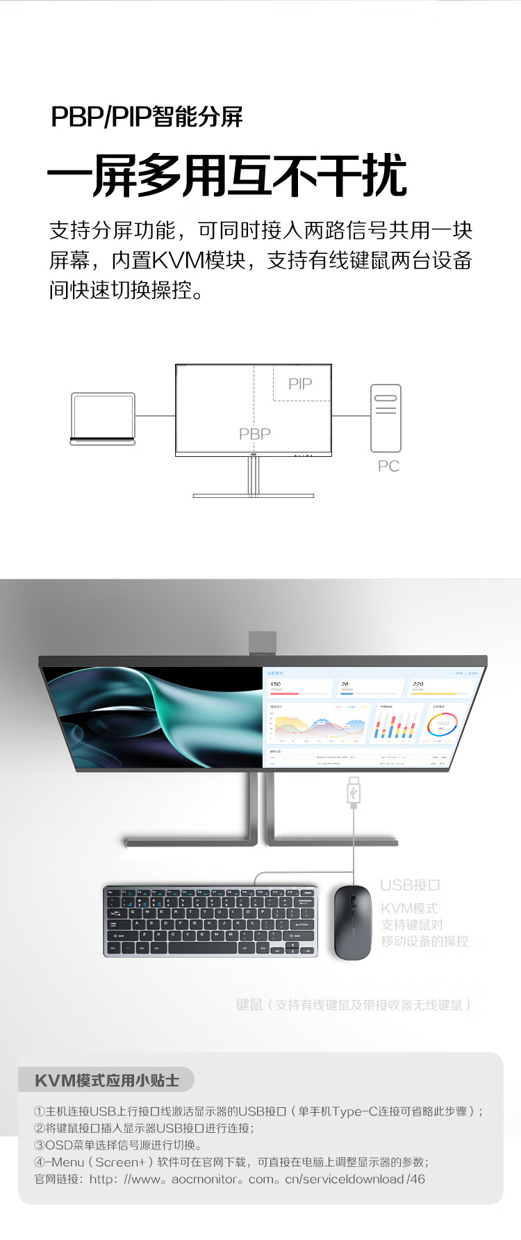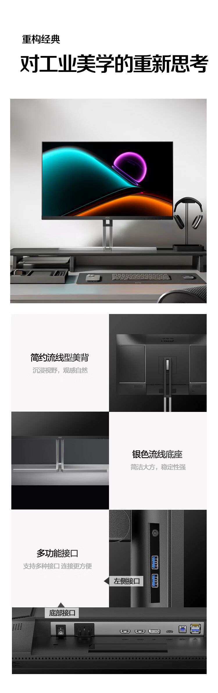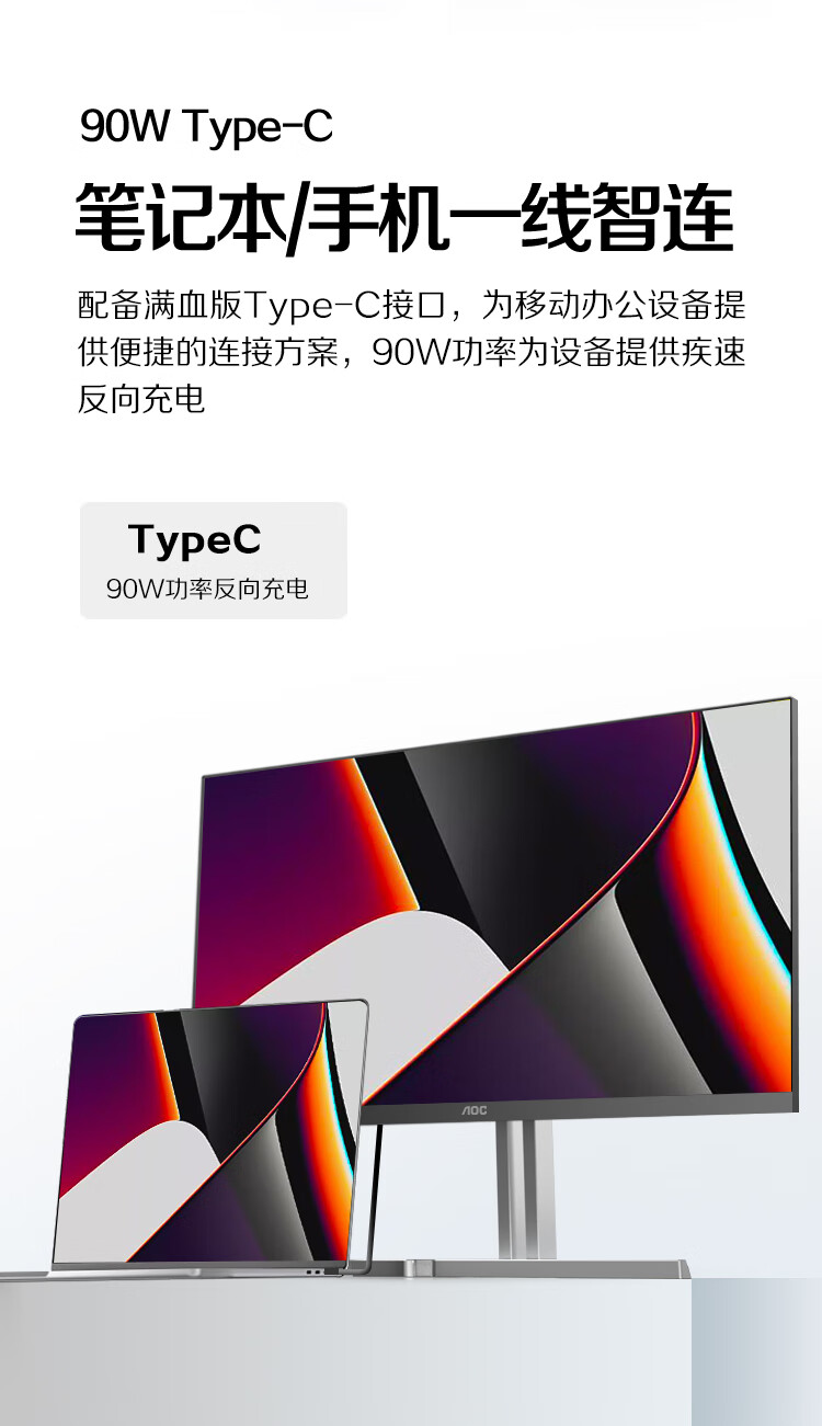 AOC 27英寸4K 144Hz双模FHD 288Hz HDR400 Type-C96W 硬件低蓝光 macmini节能游戏办公显示器U27U3XD