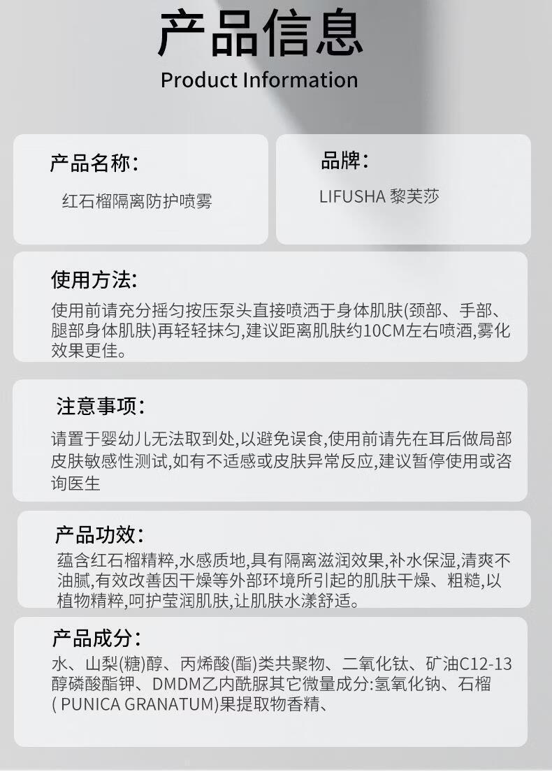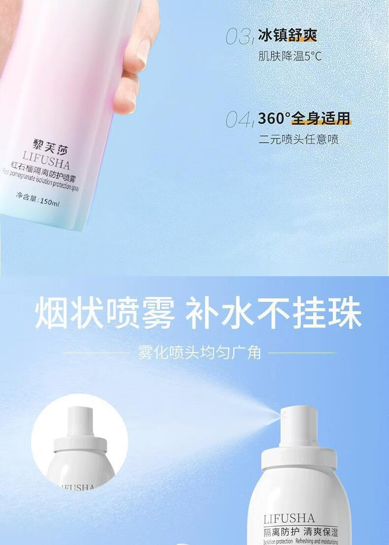 LIFUSHA红石榴防护喷雾150ml 高倍隔离补水保湿晒后呵护男女士户外防护霜 红石榴防护喷雾150mlX3瓶