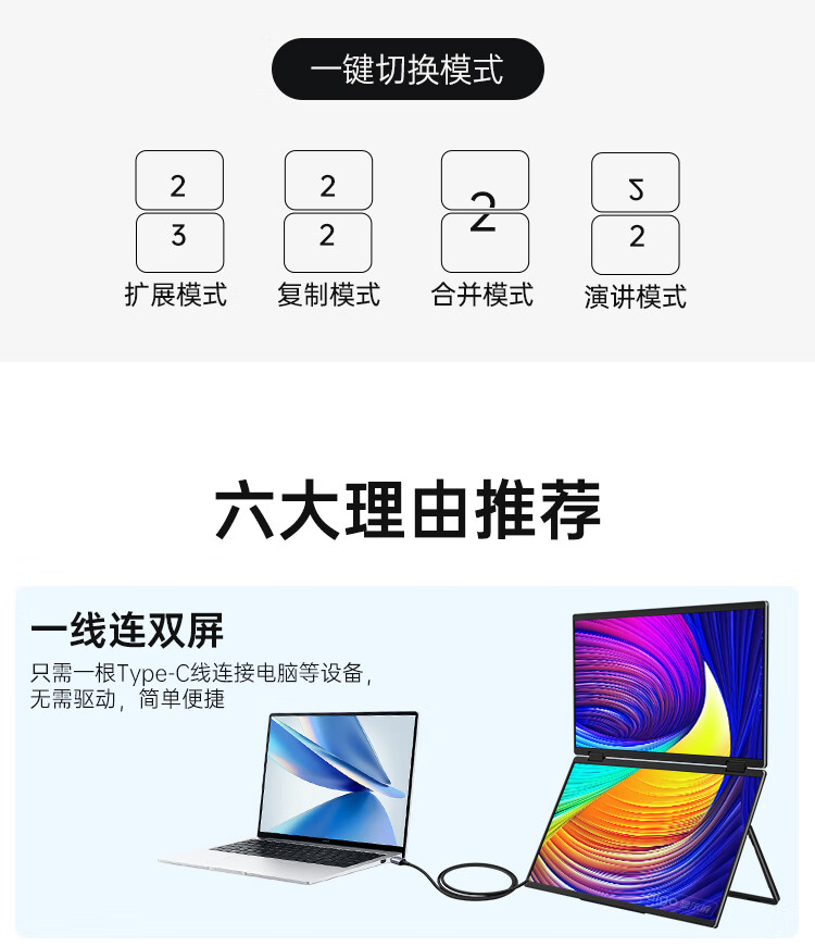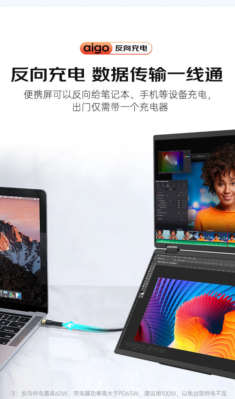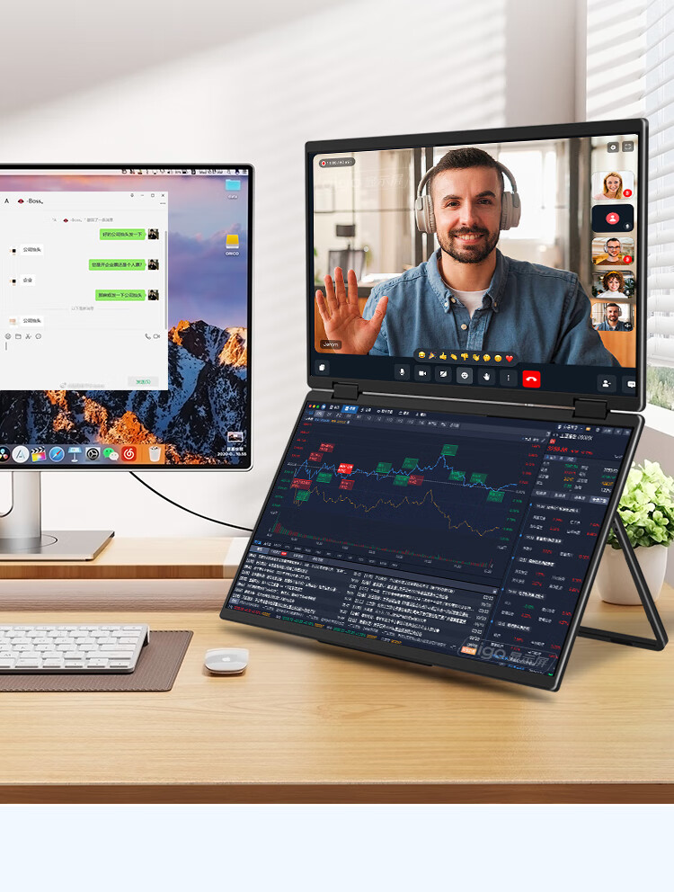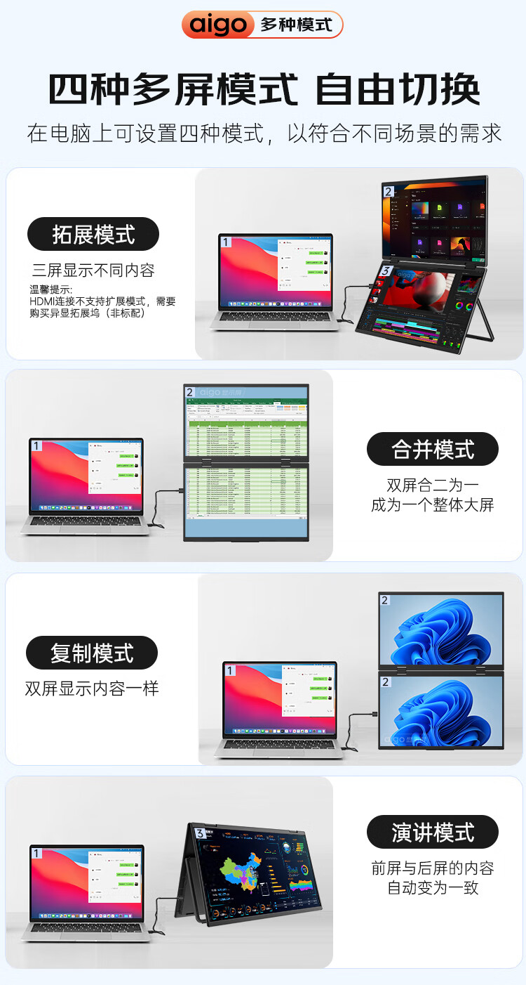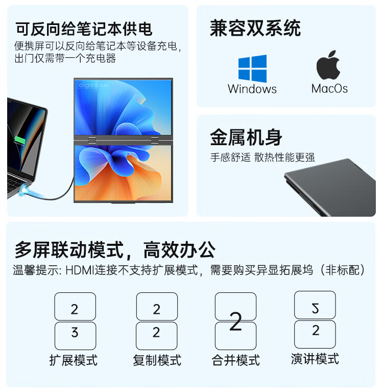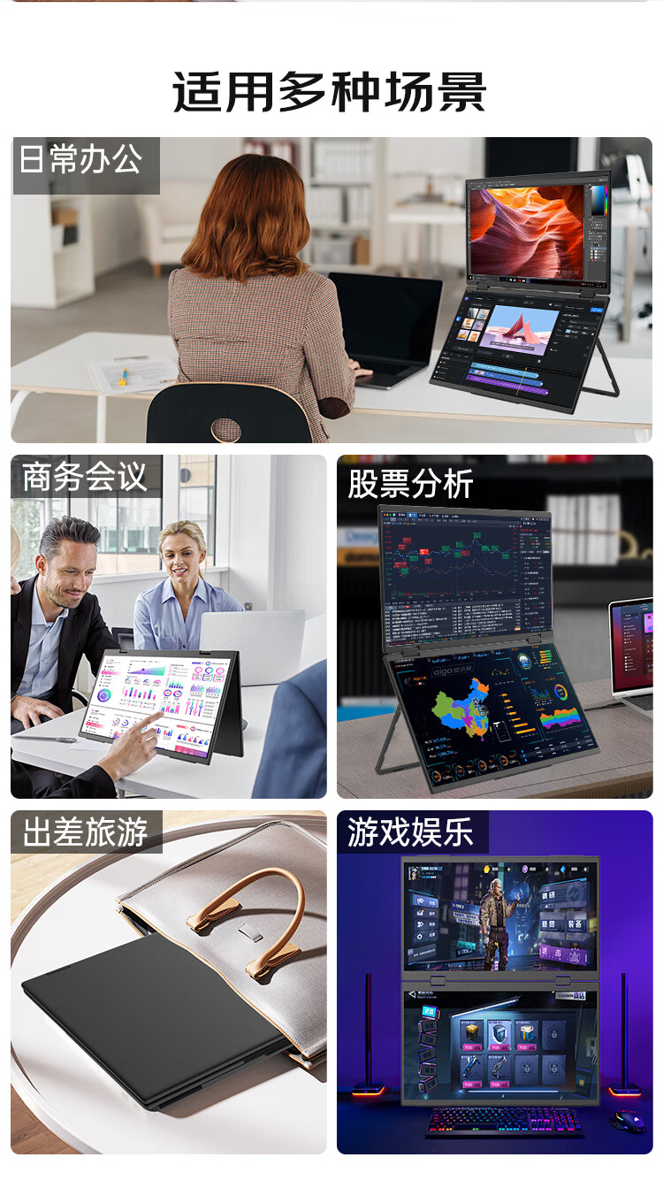 爱国者aigo15.6英寸双屏便携式显示器可折叠扩展三屏笔记本电脑副屏 办公炒股电脑扩展屏一线通金属外壳