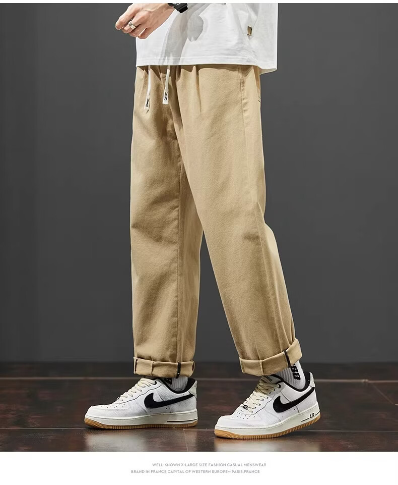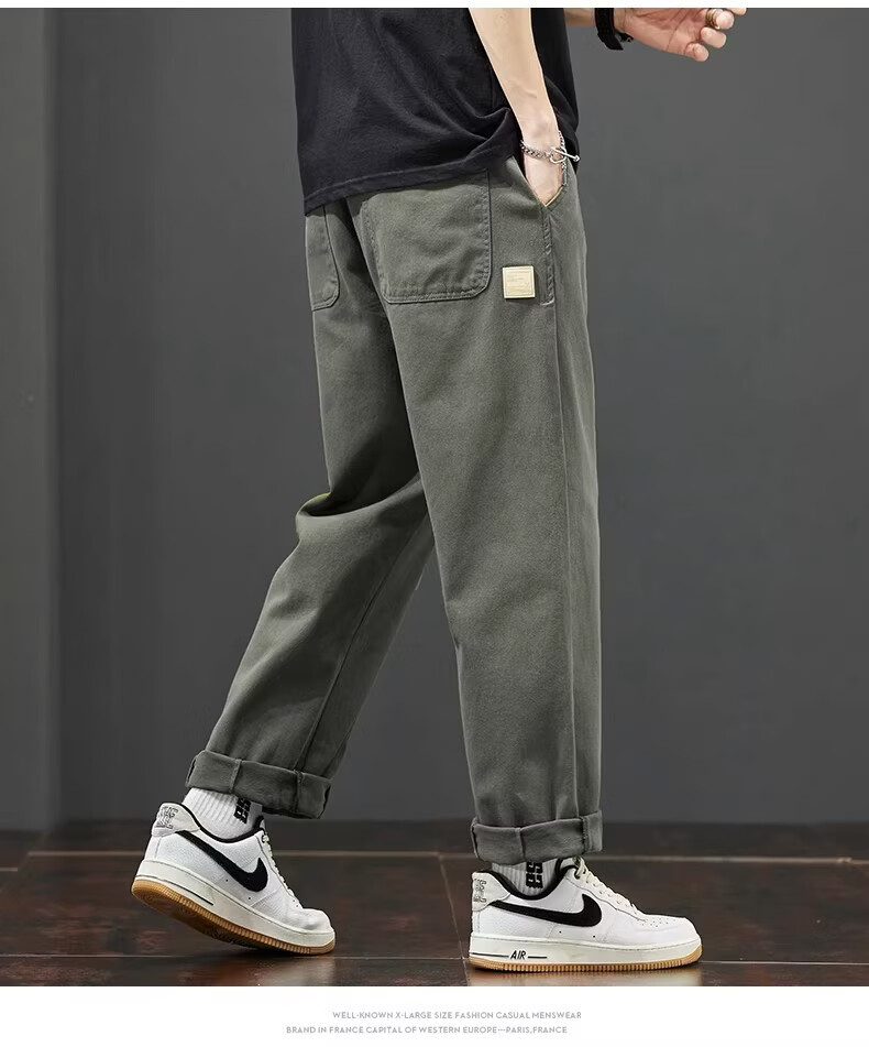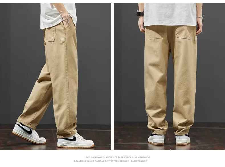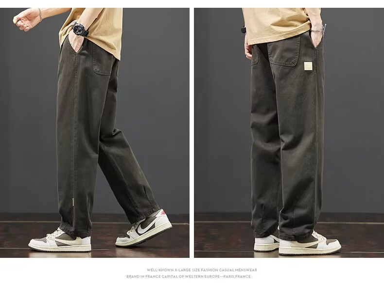 真维斯美式工装阔腿裤子男款2026春季新款纯棉休闲长裤潮牌宽松直筒裤 随机款