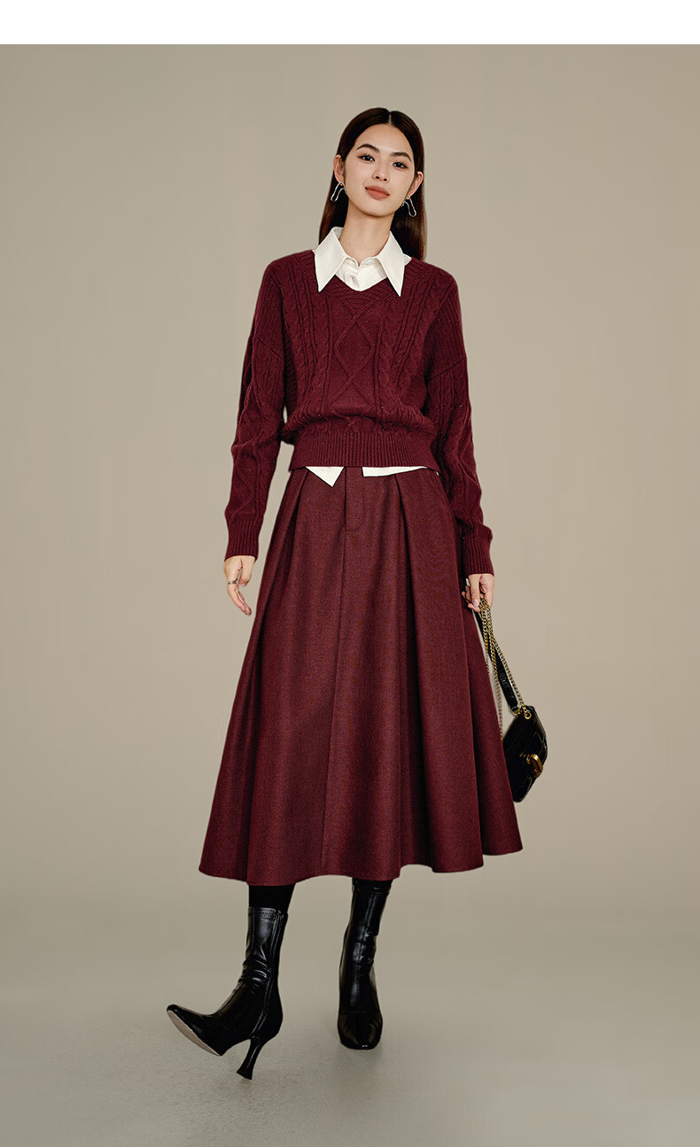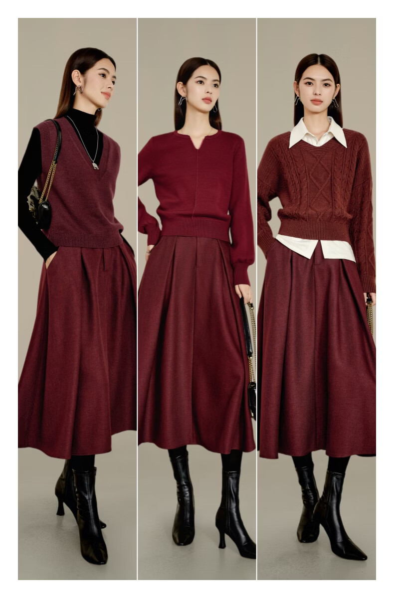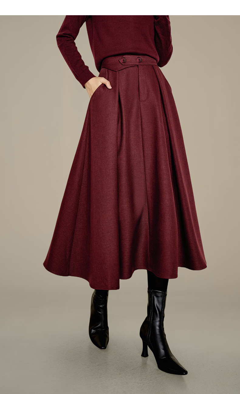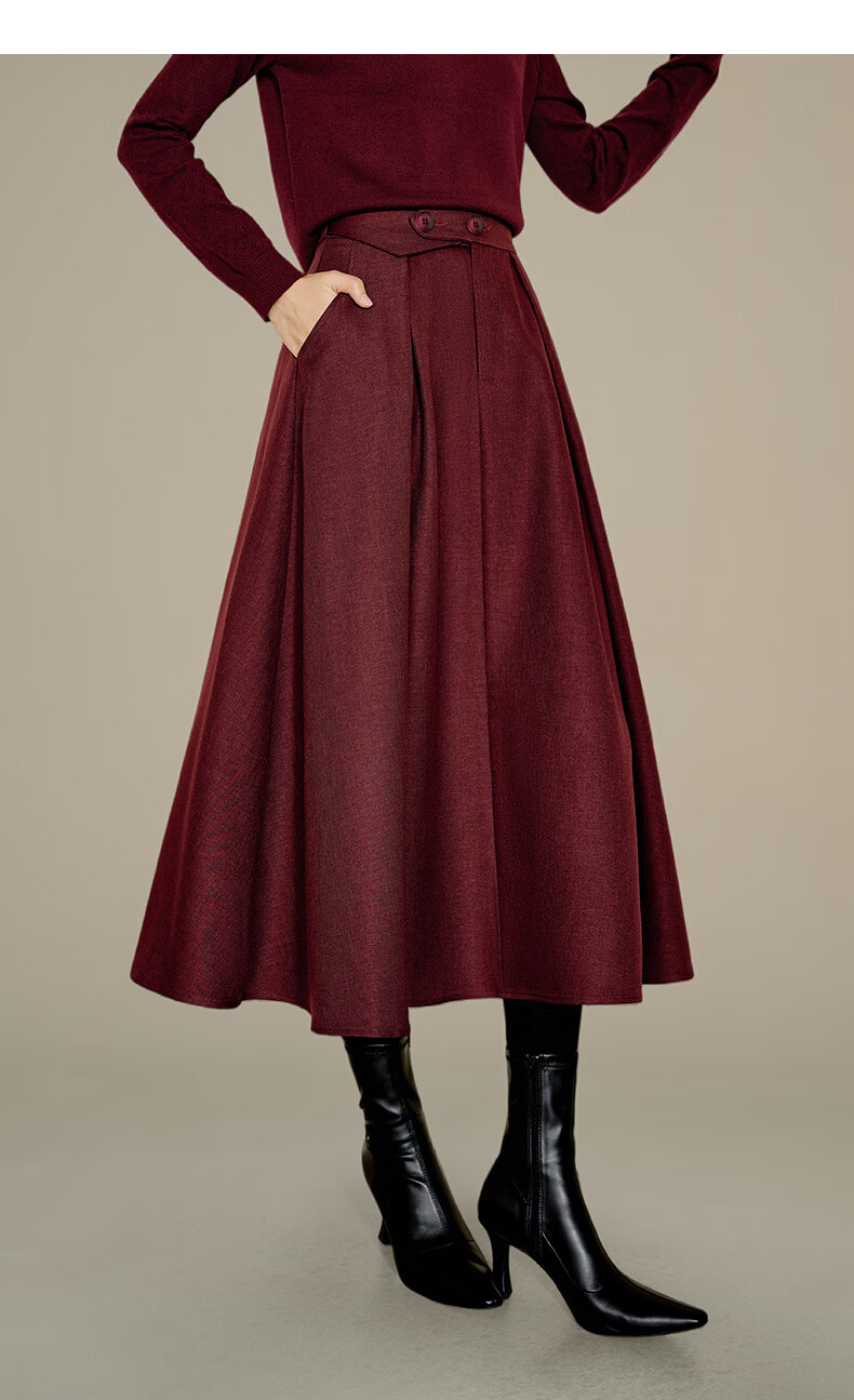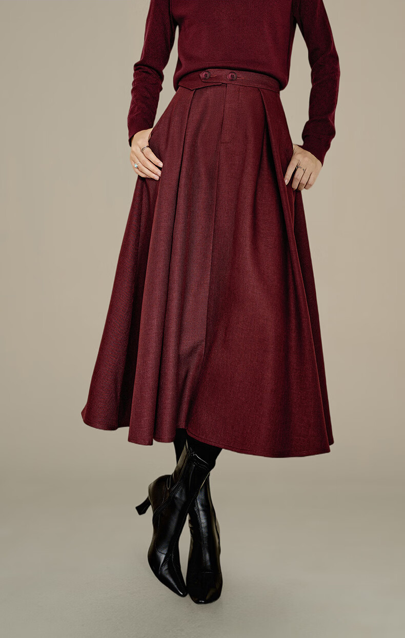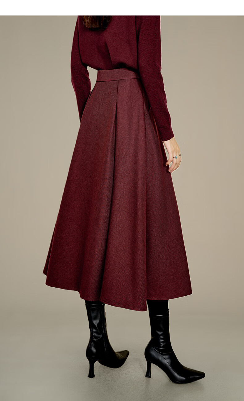 晚白【新品】冬款气质纯色裙子高腰显瘦通勤百搭大摆半身裙 安可拉红 S