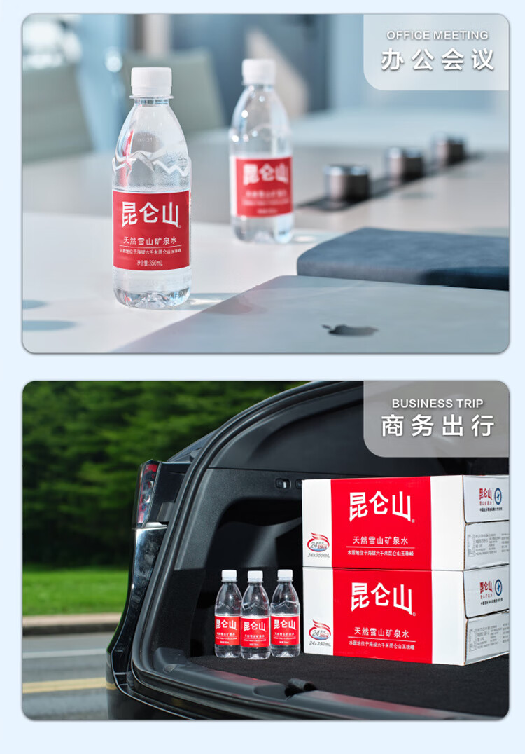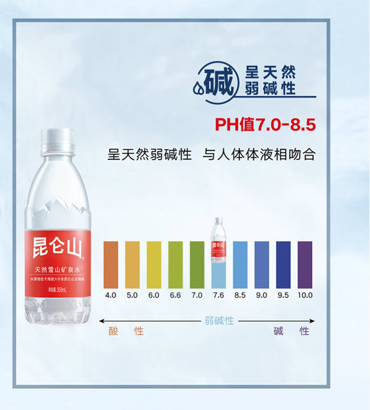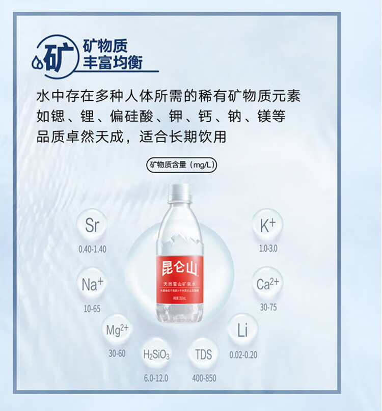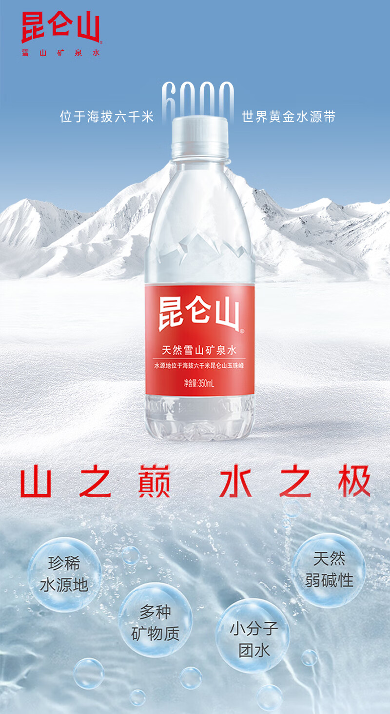 昆仑山饮用天然弱碱性矿泉水 350ml*24瓶 整箱装 高端矿泉水新包装