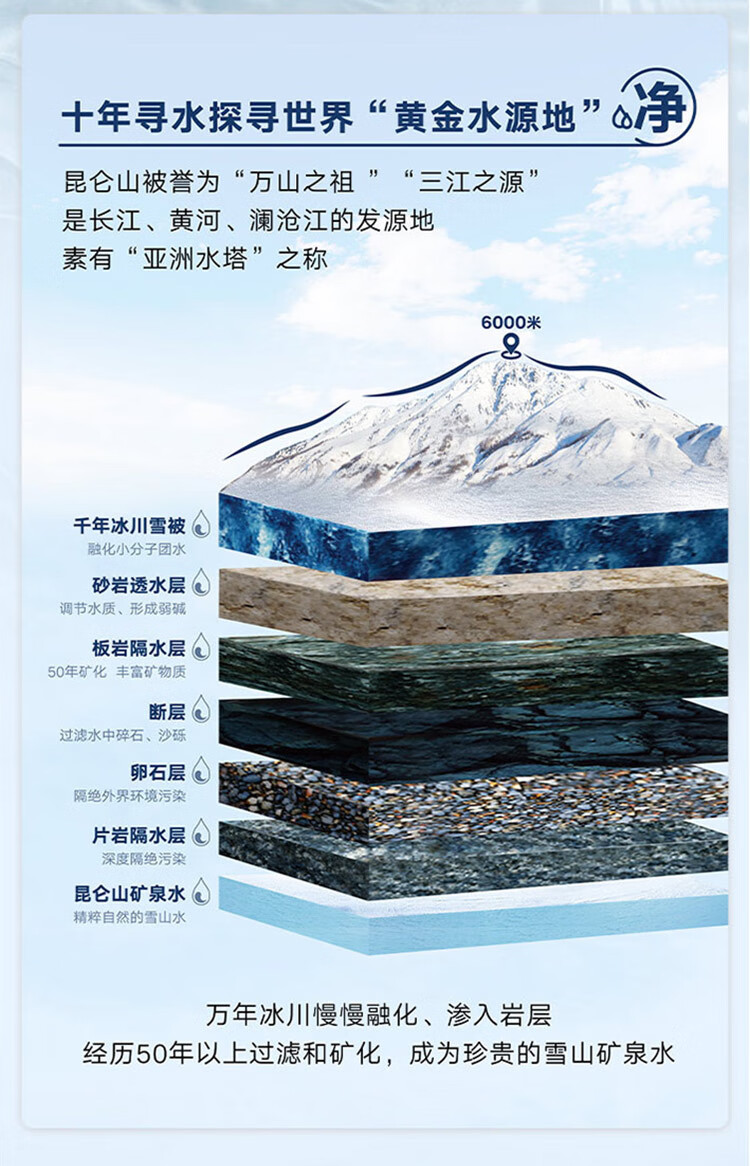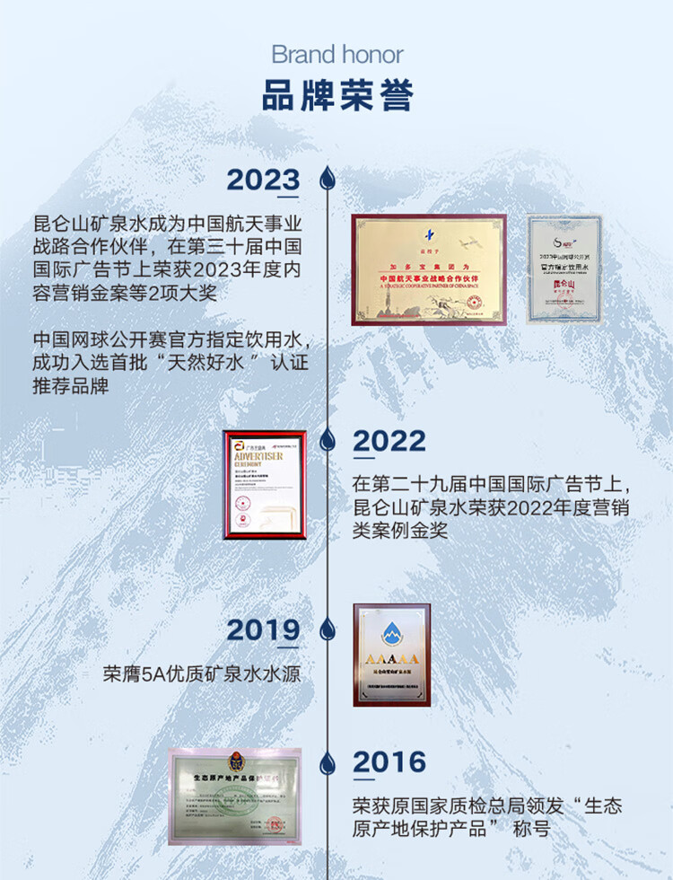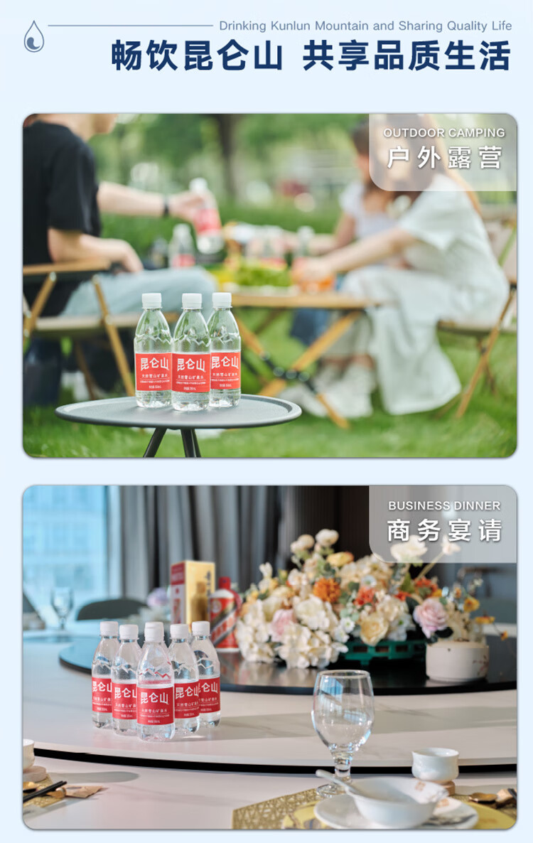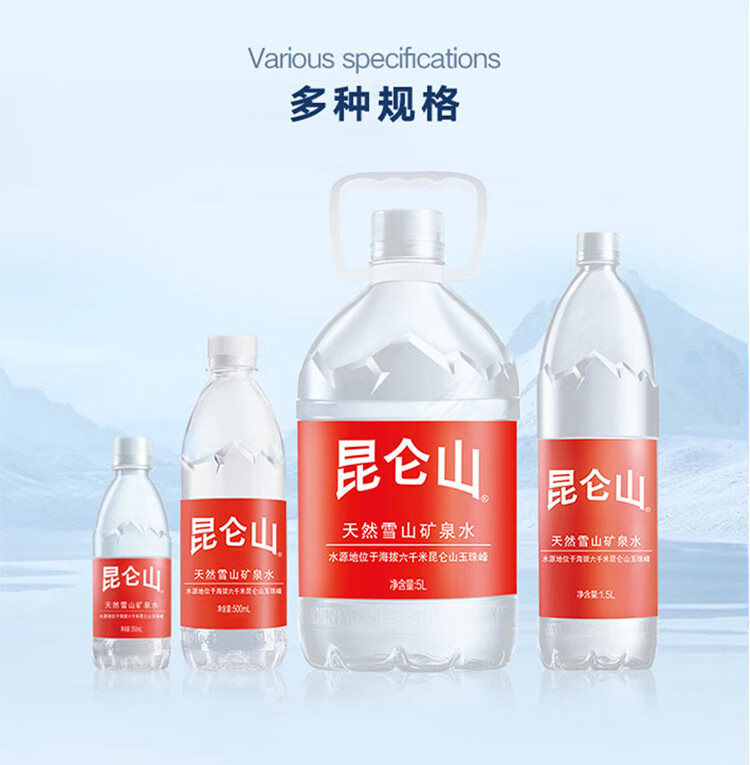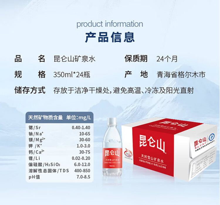 昆仑山饮用天然弱碱性矿泉水 350ml*24瓶 整箱装 高端矿泉水新包装