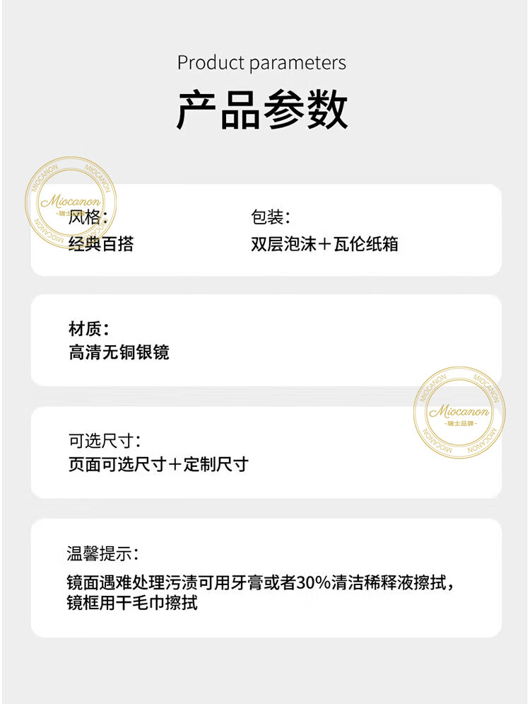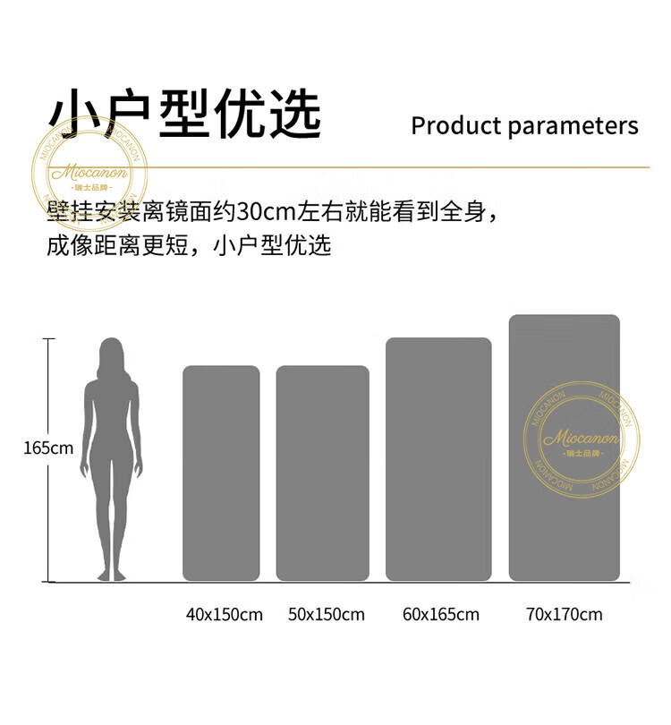 MIOCANON瑞士品牌全身镜贴墙壁挂简约家用试衣镜客厅玄关换衣镜穿衣镜 壁挂款-打孔安装 50*160cm