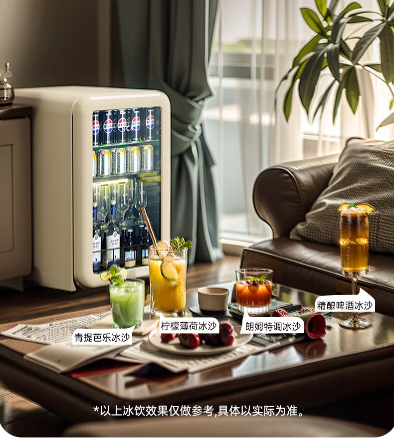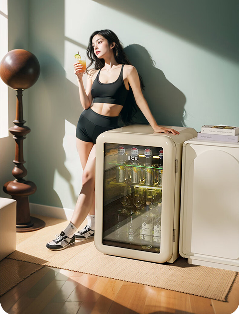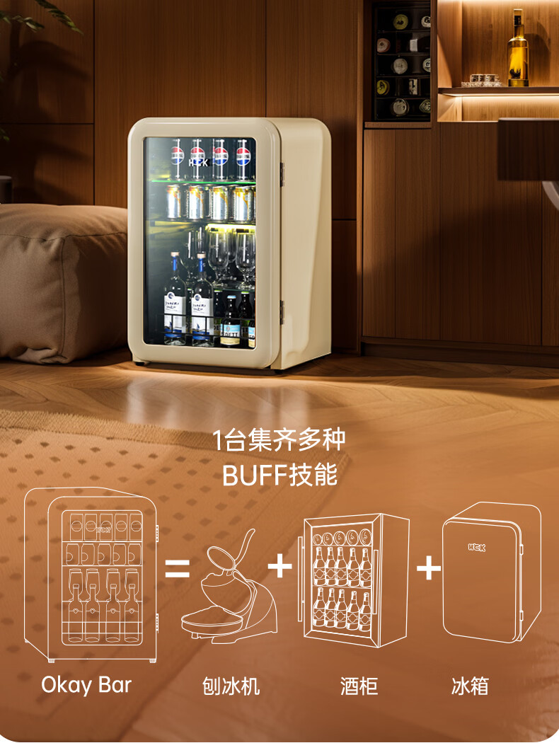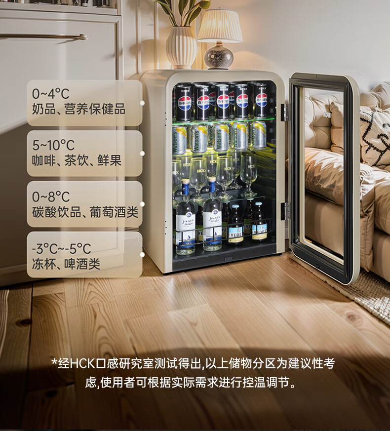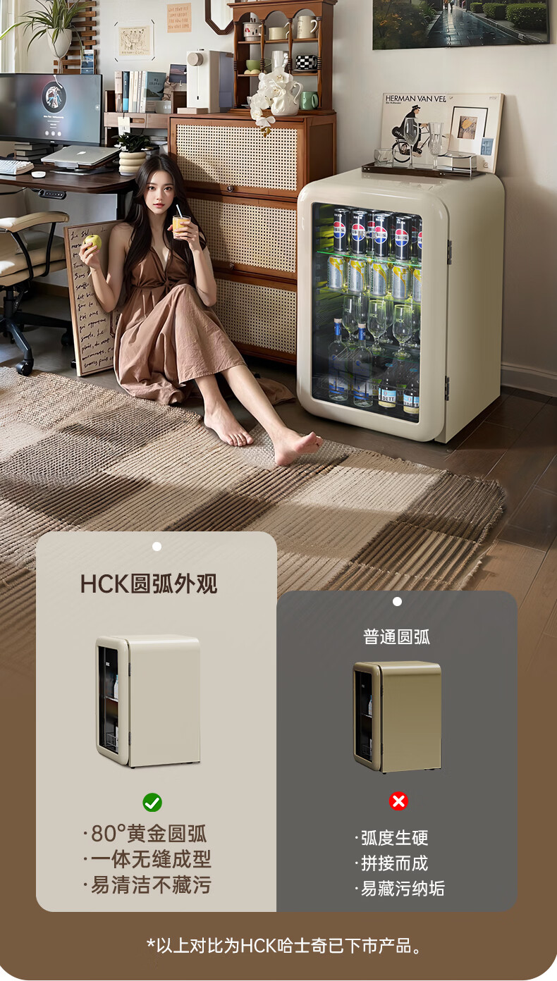 HCK哈士奇复古冰沙冰吧制冷柜家用办公室制冰机酒店立式嵌入式冰箱民宿小型冷藏保鲜饮料GC-130-WSZ GC-130-WSZ丨圆弧冰沙冰吧122L