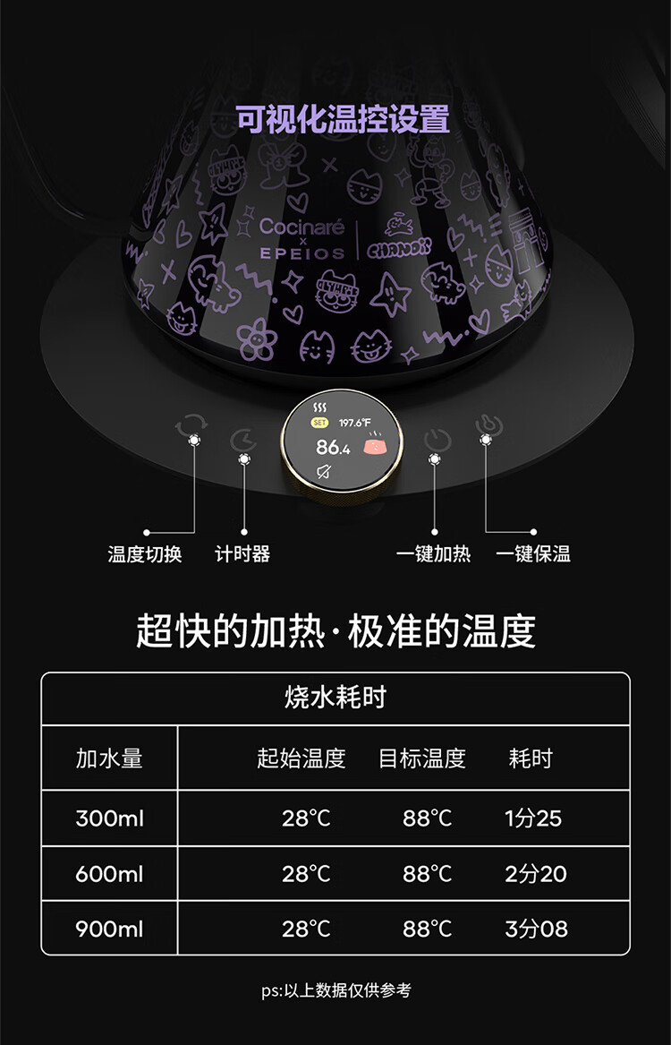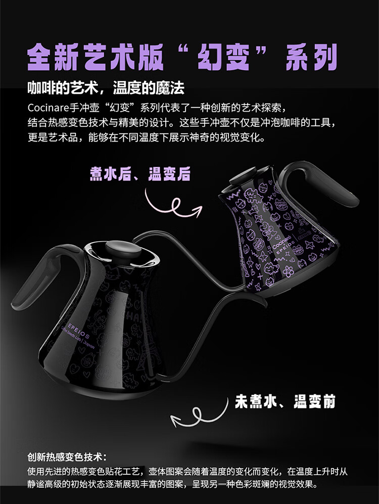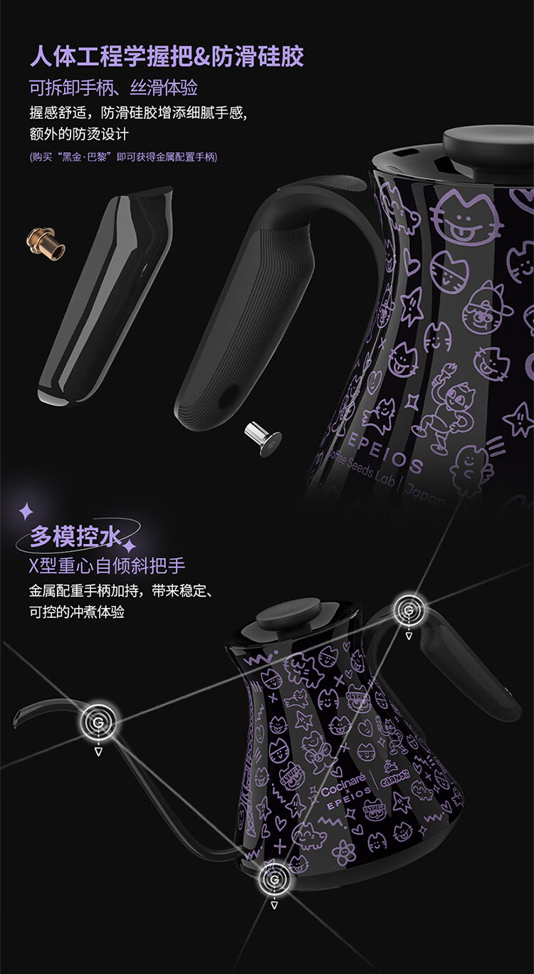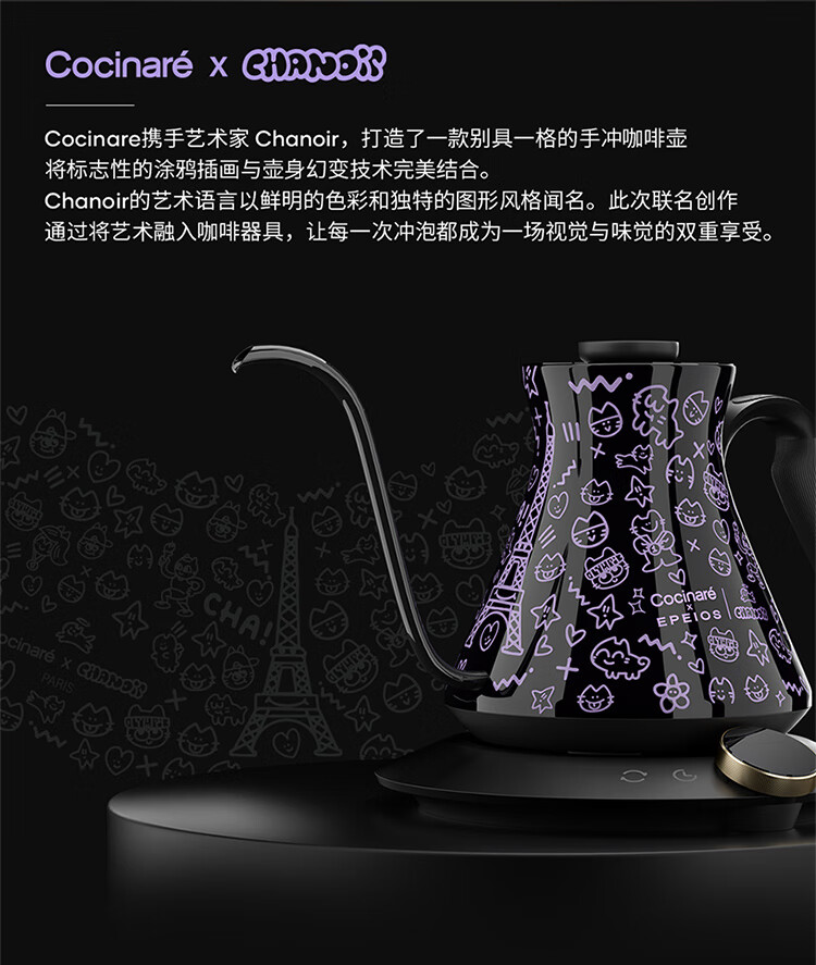 COCINARE手冲咖啡壶C壶智能温控电水壶温变M9PRO巴黎猫艺术家联名幻变0.9L M6Pro【巴黎猫艺术家联名】黑紫