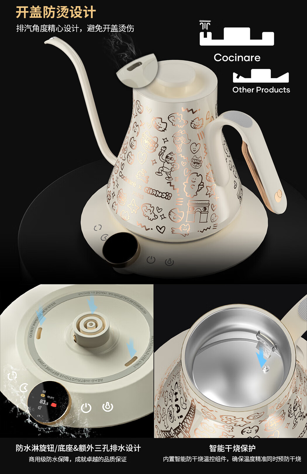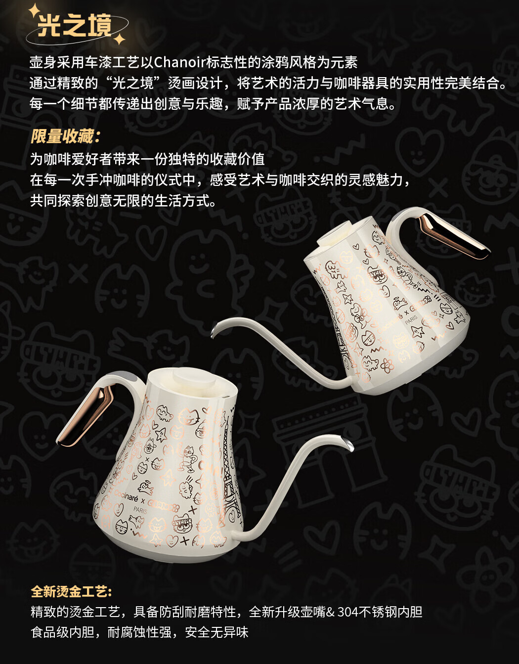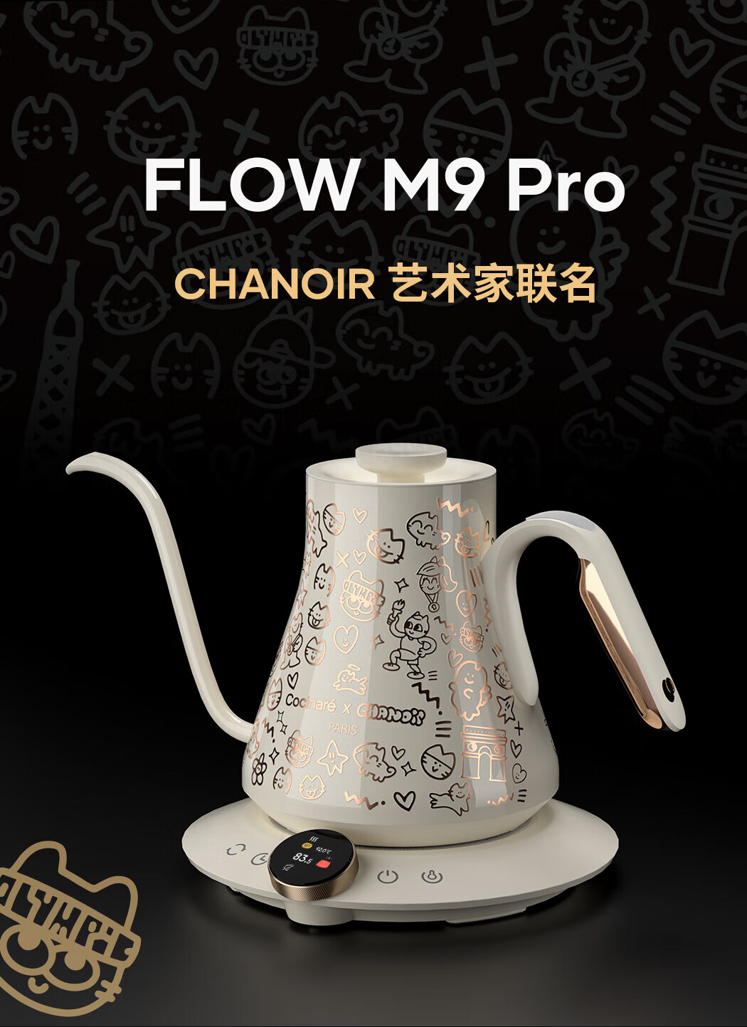 COCINARE手冲咖啡壶C壶智能温控电水壶温变M9PRO巴黎猫艺术家联名幻变0.9L M6Pro【巴黎猫艺术家联名】黑紫
