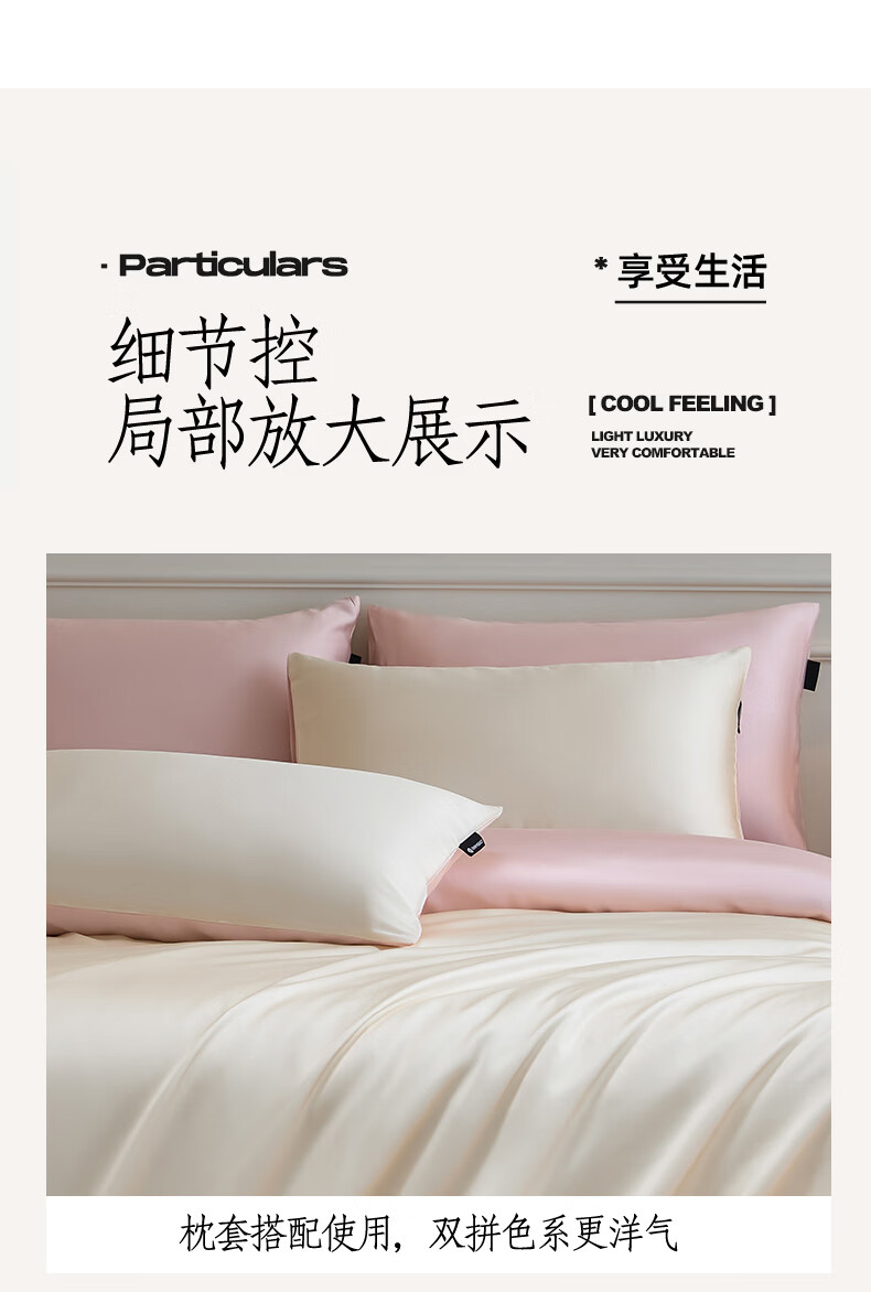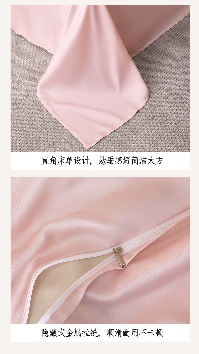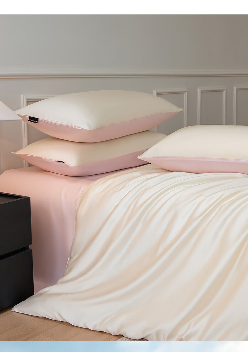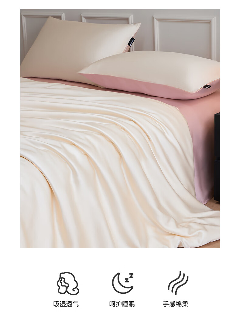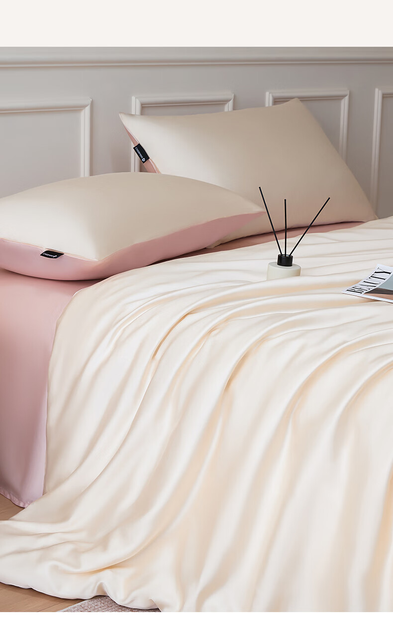 无印良品夏季冰丝四件套夏天凉感裸睡床单被套家用床笠宿舍三件套床上用品 罗拉-元气白桃+豆蔻粉【不易褪色 不易起球】 0.9m 床单款 三件套-被套150x200cm