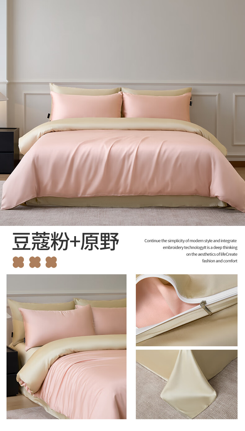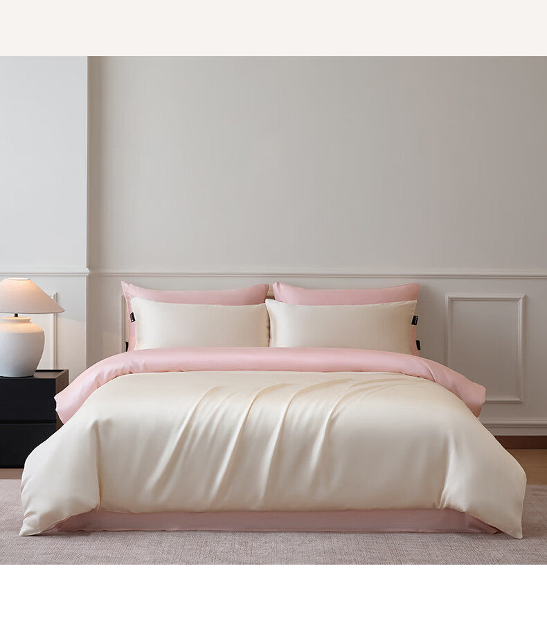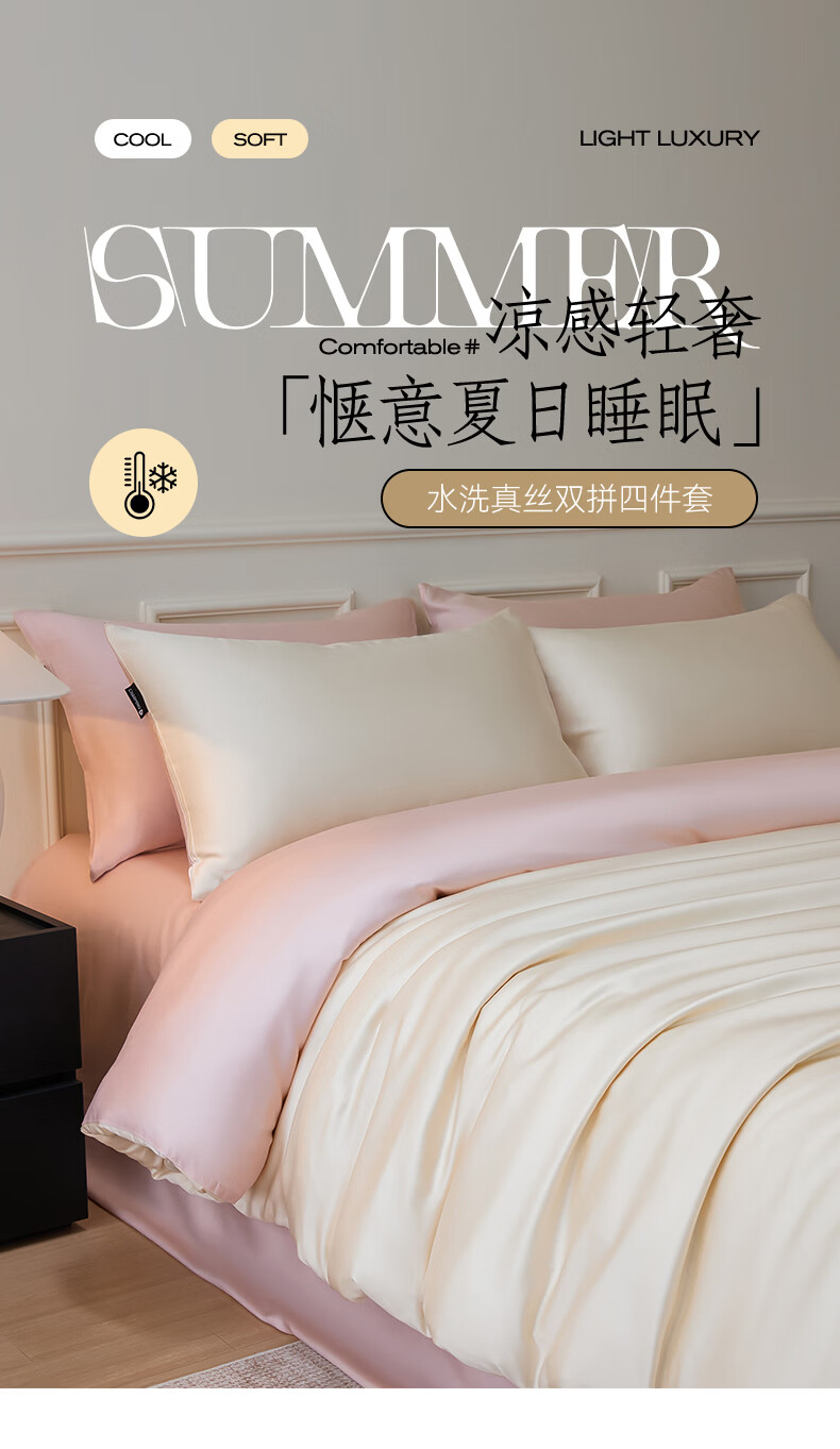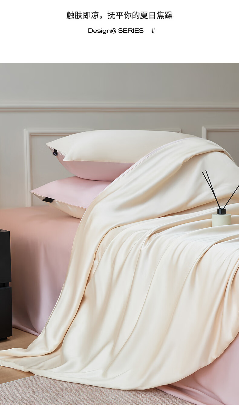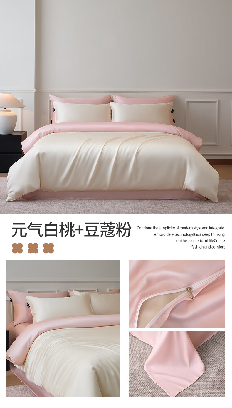 无印良品夏季冰丝四件套夏天凉感裸睡床单被套家用床笠宿舍三件套床上用品 罗拉-元气白桃+豆蔻粉【不易褪色 不易起球】 0.9m 床单款 三件套-被套150x200cm