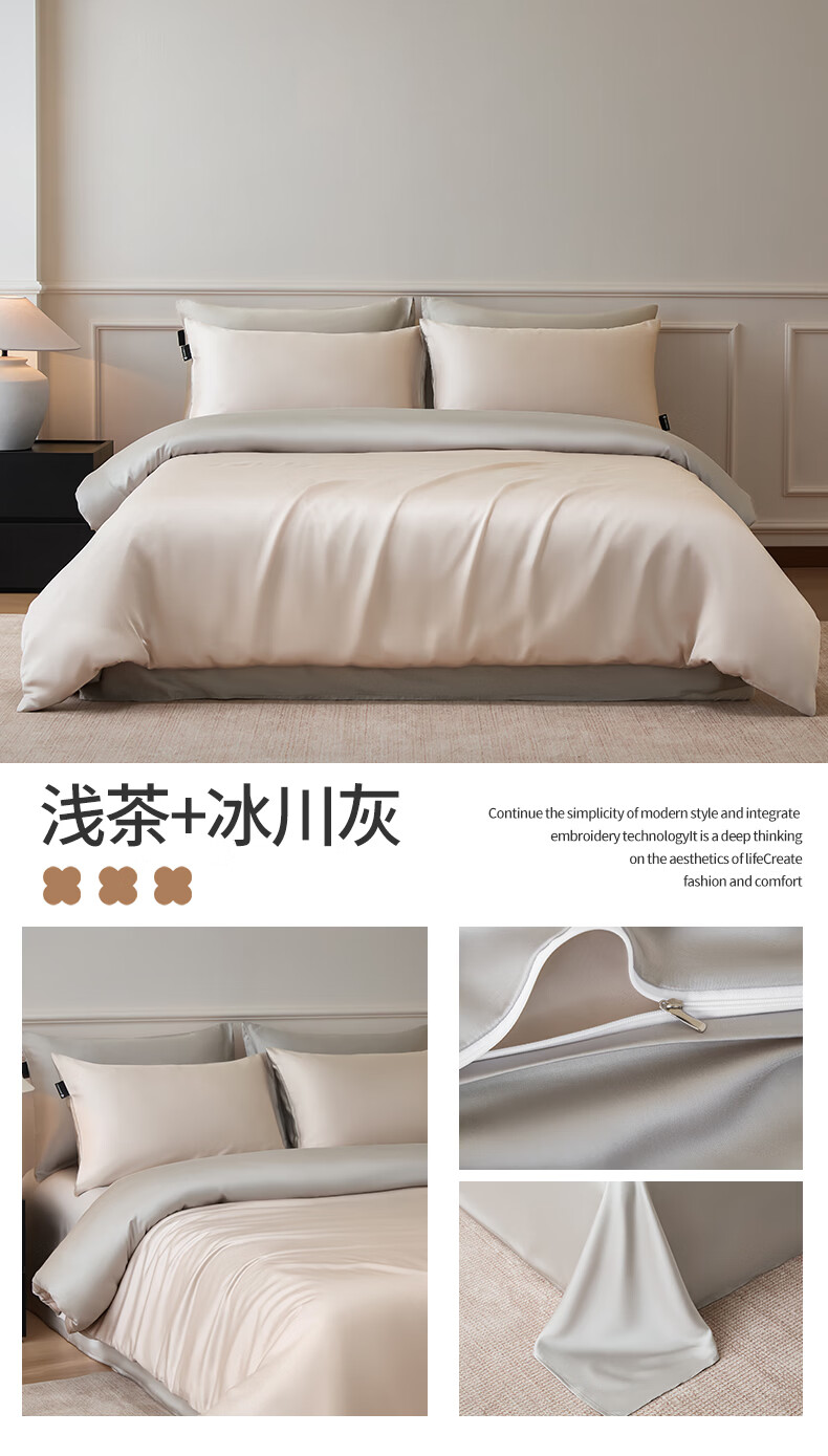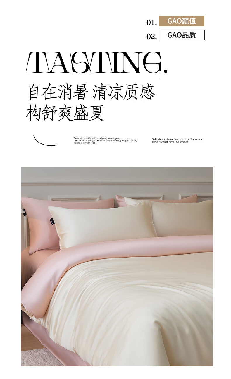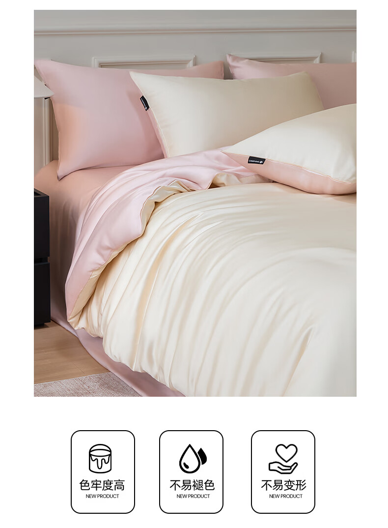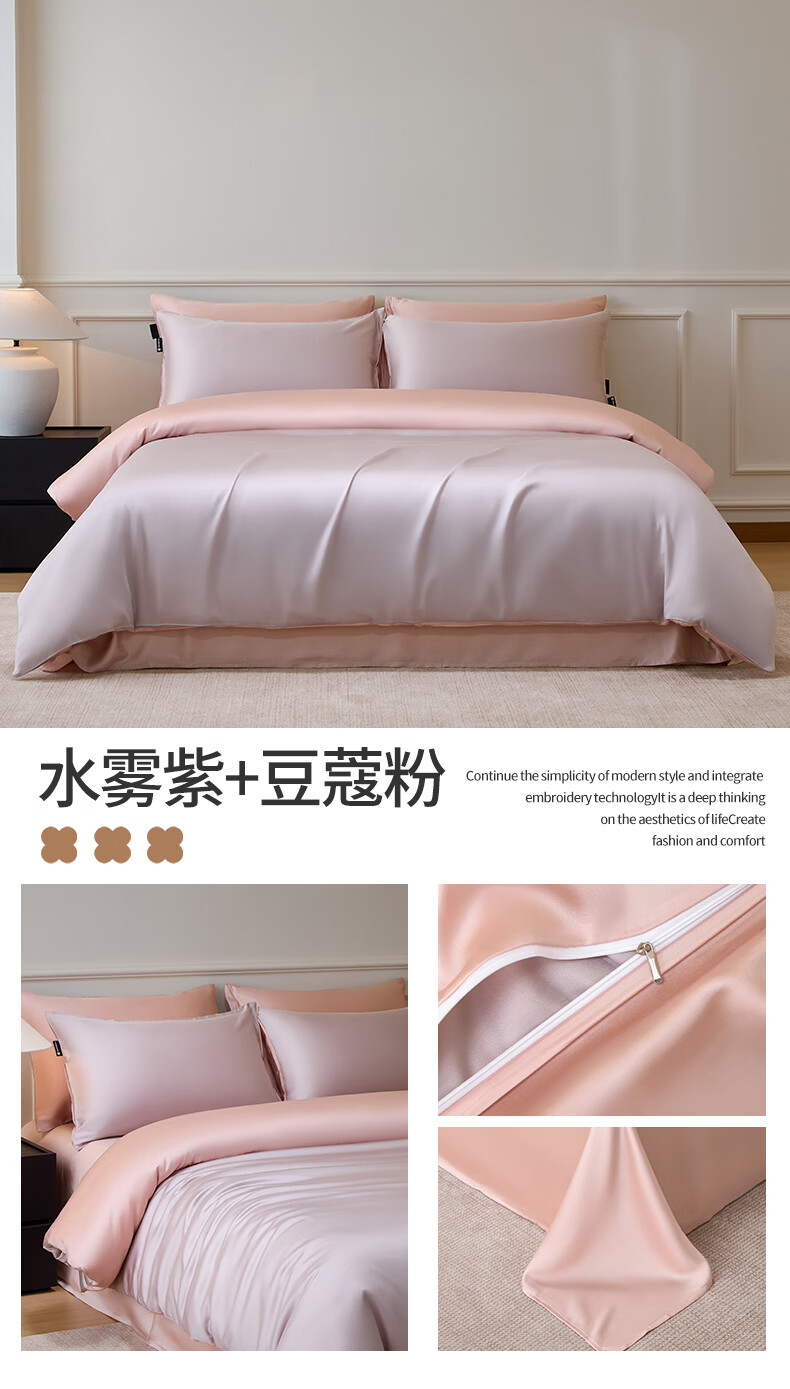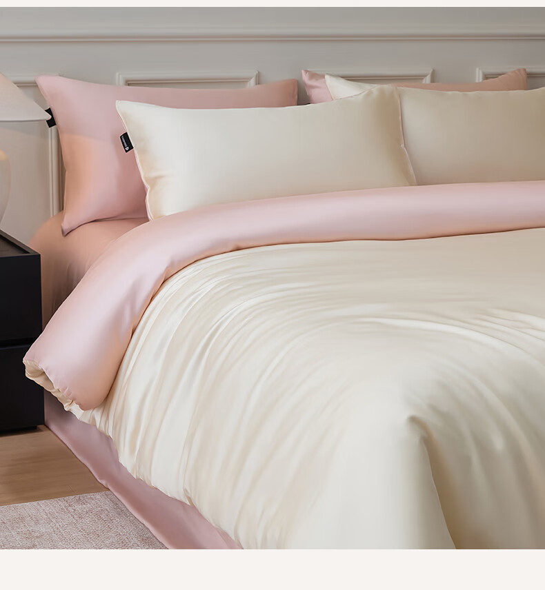 无印良品夏季冰丝四件套夏天凉感裸睡床单被套家用床笠宿舍三件套床上用品 罗拉-元气白桃+豆蔻粉【不易褪色 不易起球】 0.9m 床单款 三件套-被套150x200cm