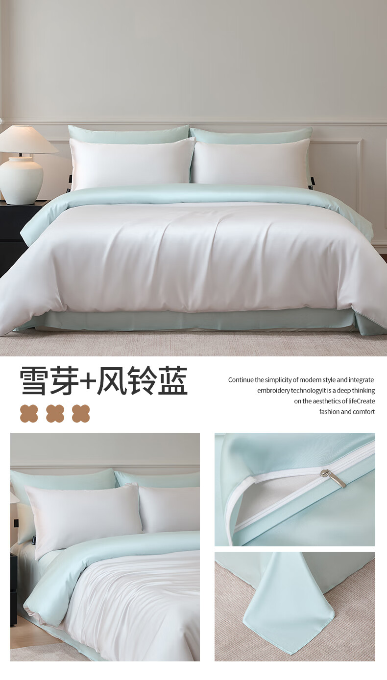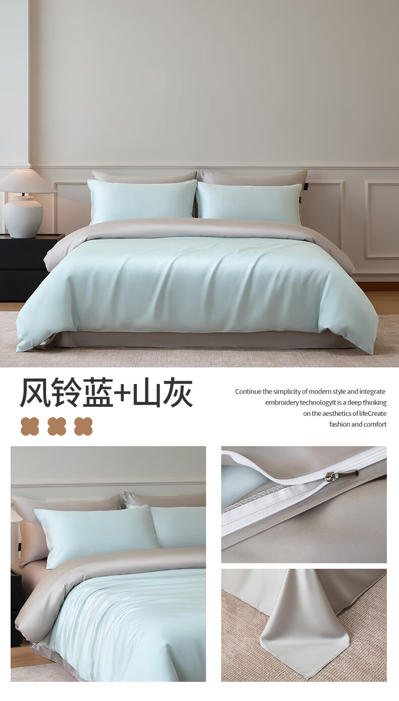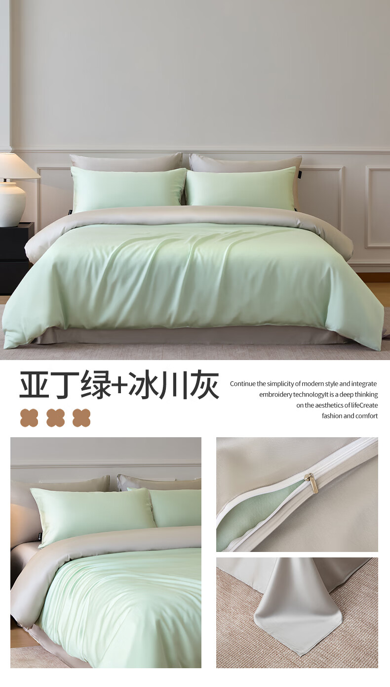 苏萱2026新款热卖水洗冰丝夏被四件套夏季夏凉被空调被可机水洗单双人 亚丁绿+冰川灰 单人夏被-150*200cm