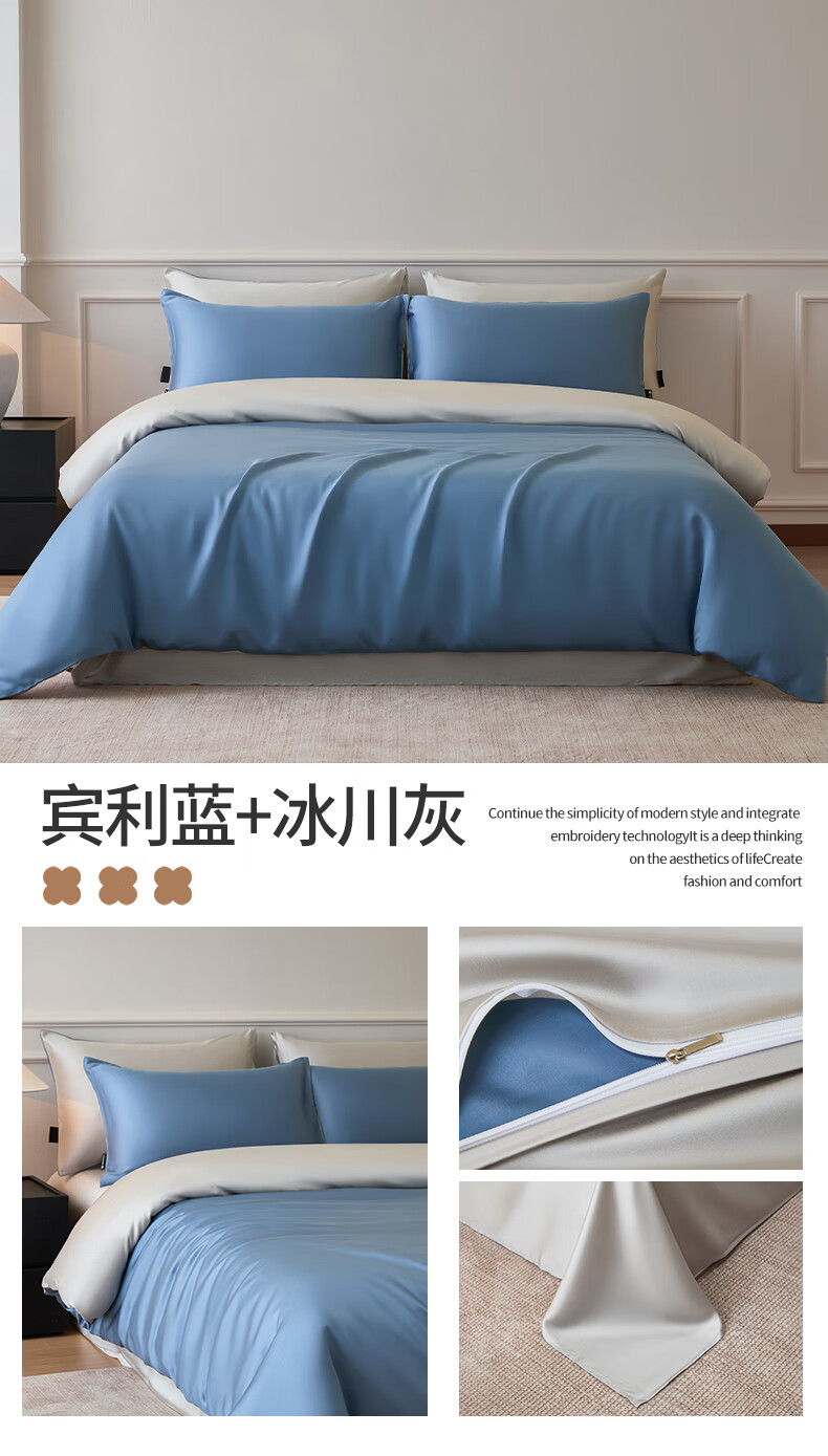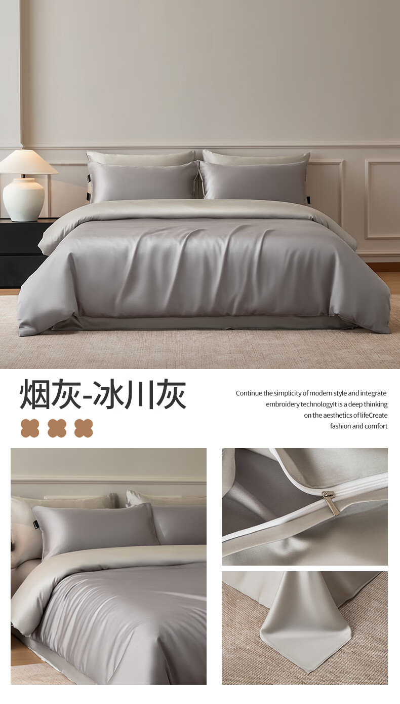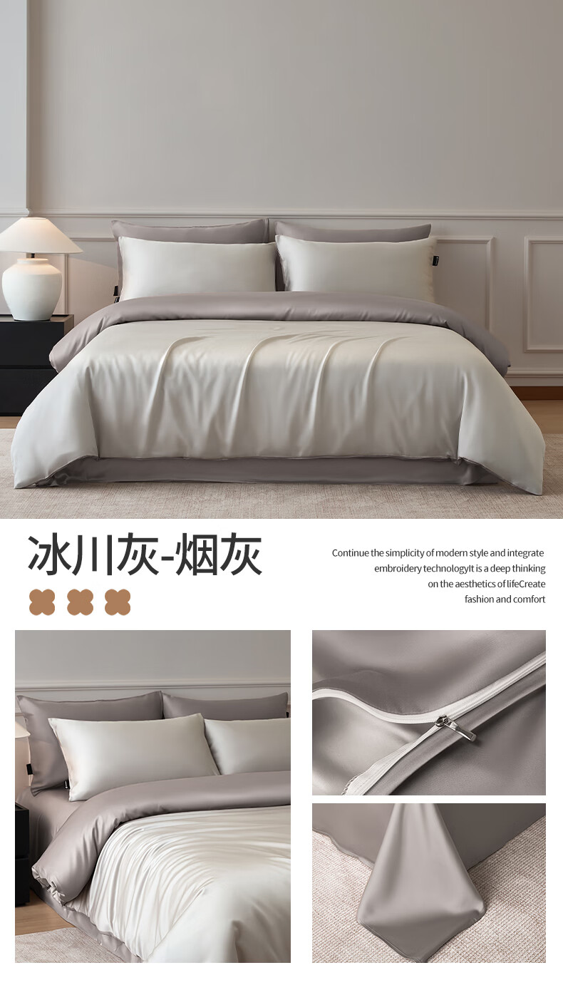 苏萱2026新款热卖水洗冰丝夏被四件套夏季夏凉被空调被可机水洗单双人 亚丁绿+冰川灰 单人夏被-150*200cm